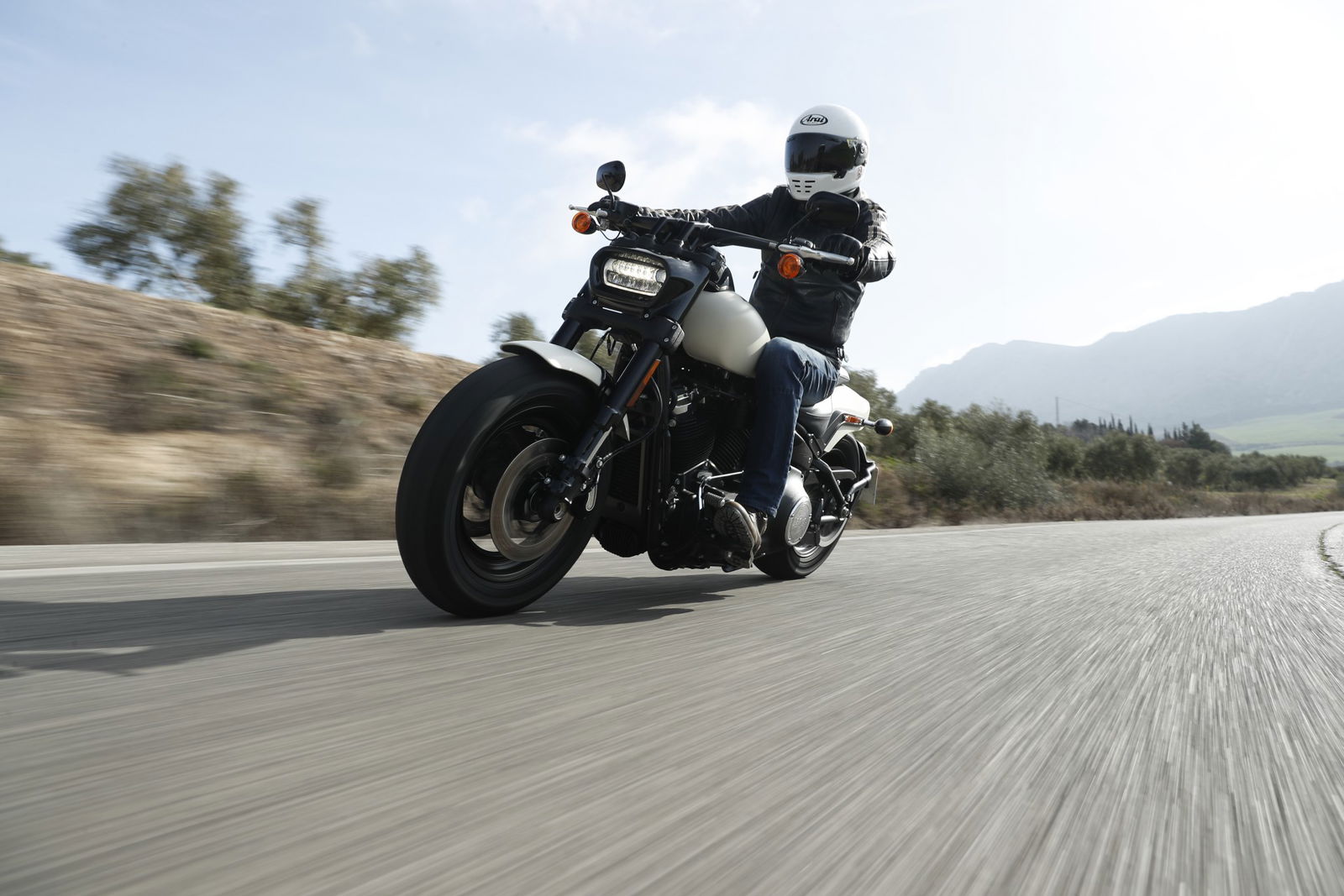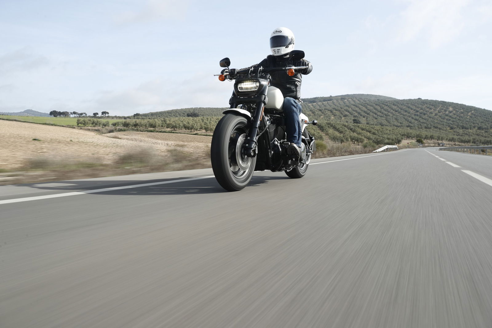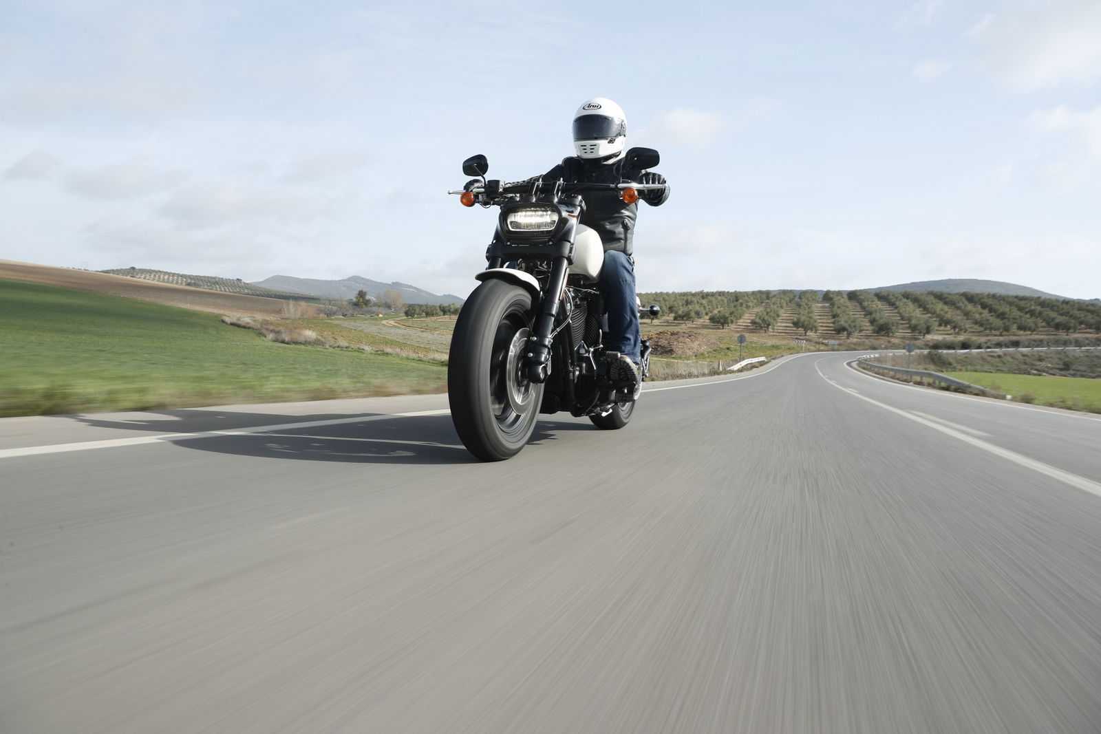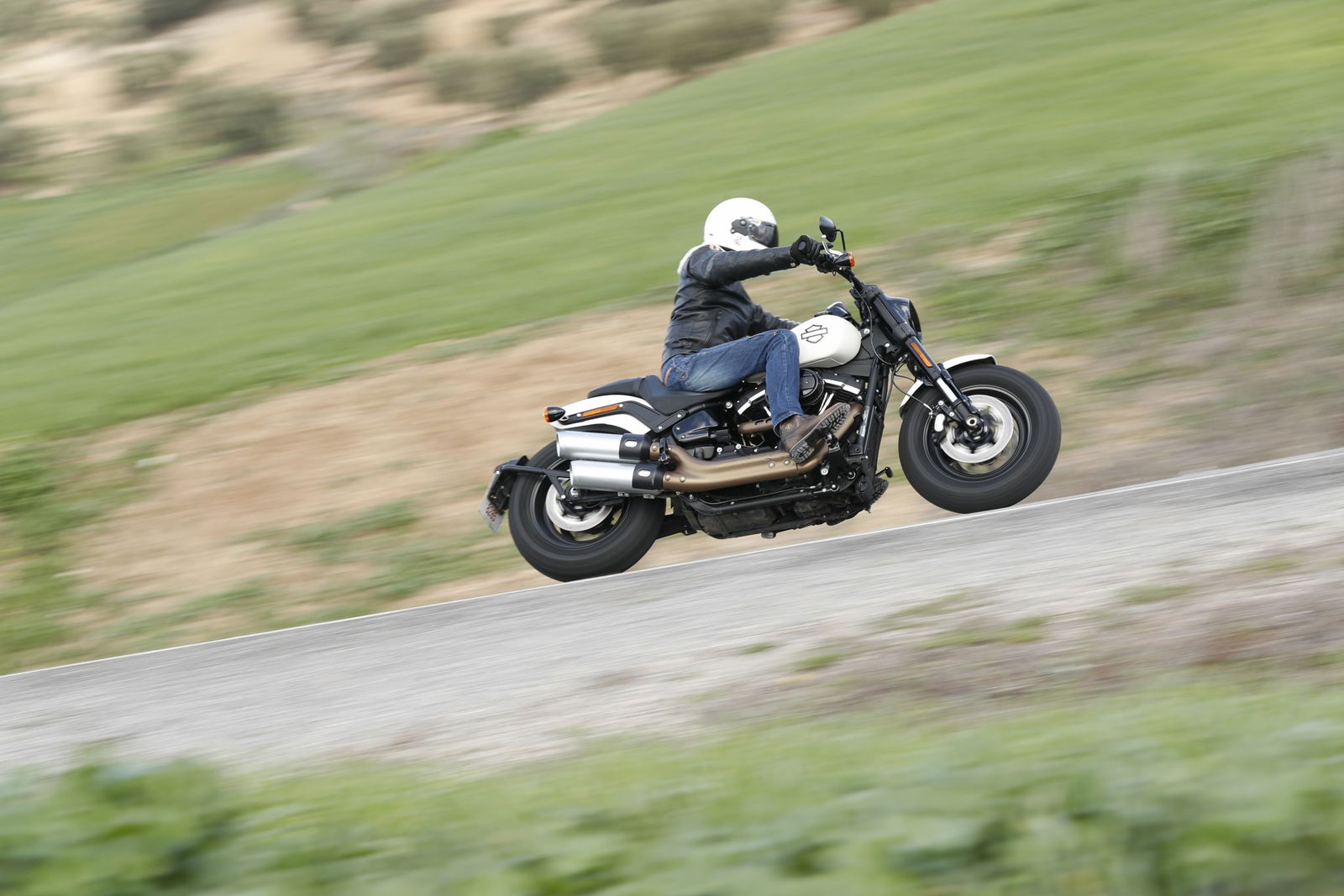 La Softail di rottura. Quella che i puristi guardano con sufficienza, se non con fastidio… Quella che ha invece più personalità. Quella che, pian piano, anche gli harleysti più fondamentalisti impareranno ad apprezzare e, magari, si metteranno in garage accanto alla Road King o all’Electra. L’avantreno è possente, con la forcella a steli rovesciati, il doppio disco e il ruotone da 16″ gommato 150/80, sovrastato dal farone rettangolare. Nella culla del telaio Softail, si può scegliere se alloggiare il V-twin da 107 oppure da 114 ci. La Fat Bob che ho guidato nell’entroterra andaluso era la versione più corposa: 114 ci (1.868 cc) per 155 Nm a 3.000 giri e 306 kg di peso in ordine di marcia. Comincio subito con quello che meno mi è piaciuto, ossia un avantreno non così ubbidiente nel seguire le traiettorie che hai in testa, soprattutto quando l’asfalto diventa più contorto e “guidato”. Niente da dire sulla sua solidità e sul feeling che trasmette, frenata compresa: è una questione di misure della ruota. La Fat Bobo è una vera bobber, di nome e di fatto. La sua indole sportiva viene a galla quando il raggio di curva cresce in ampiezza. La sella è a 710 mm da terra, le pedane sono piuttosto avanzate, ma il manubrio largo e i riser abbastanza corti garantiscono un buon controllo e permettono di godere di tutta la coppia erogata dal nerboruto bicilindrico (occhio che il controllo di trazione non c’è…). Per aiutare la guida sportiva si può intervenire sul precarico del mono. Regolandolo con il pomello posto sotto la fiancatina sinistra, si può ridurre l’affondamento e rendere più stabile il retrotreno quando si guida allegri e accucciati. La Fat Bob equipaggiata con il Milwaukee Eight da 114 costa a partire da 20. 300 euro.