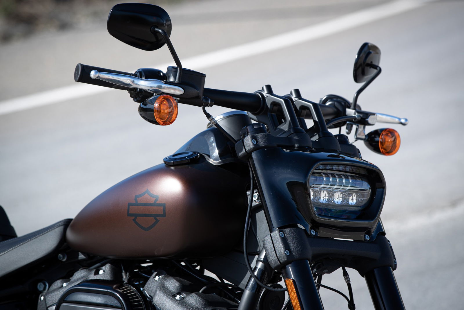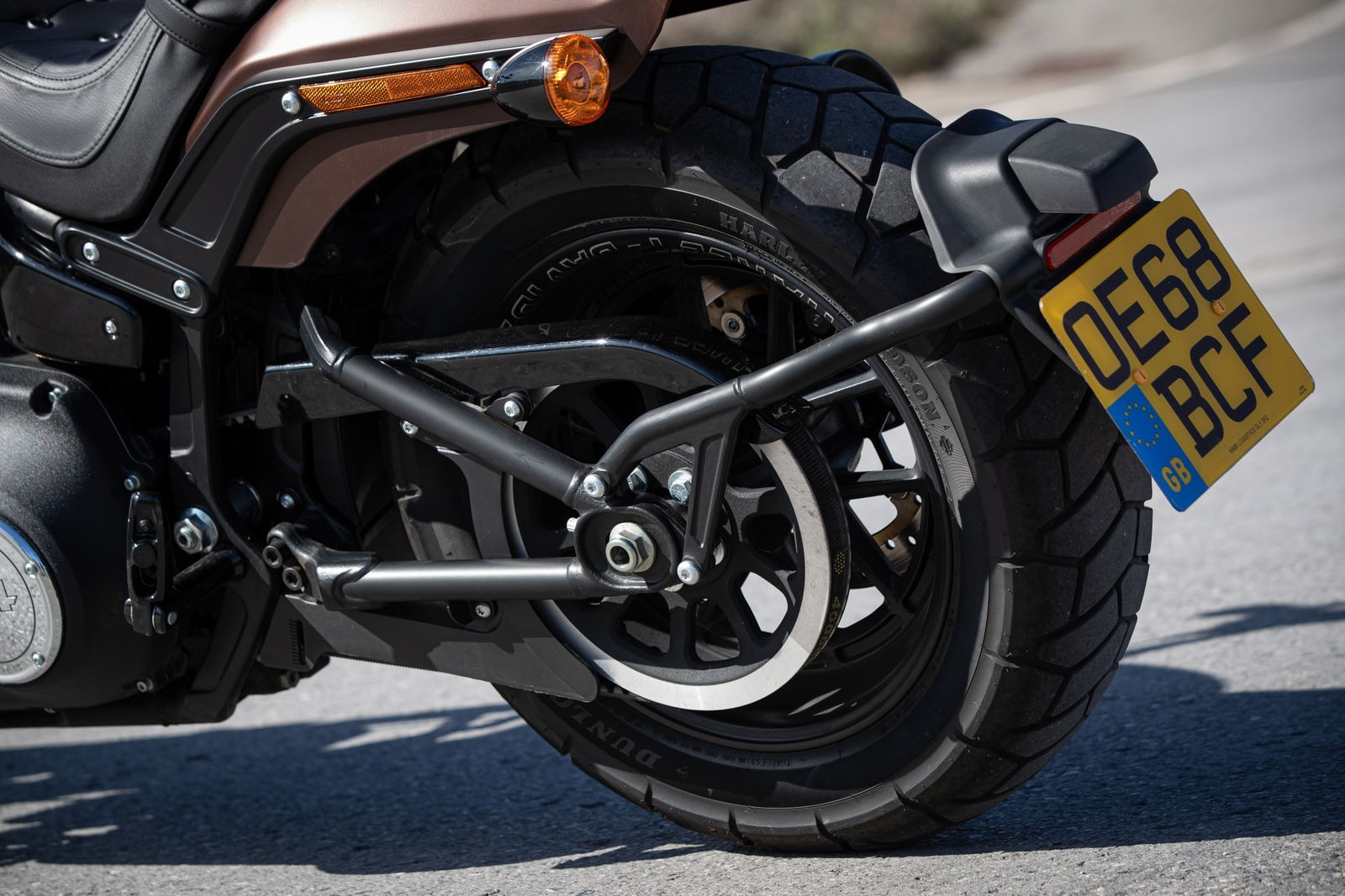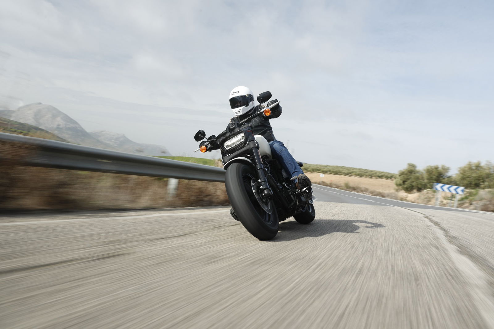 La Softail di rottura. Quella che i puristi guardano con sufficienza, se non con fastidio… Quella che ha invece più personalità. Quella che, pian piano, anche gli harleysti più fondamentalisti impareranno ad apprezzare e, magari, si metteranno in garage accanto alla Road King o all’Electra. L’avantreno è possente, con la forcella a steli rovesciati, il doppio disco e il ruotone da 16″ gommato 150/80, sovrastato dal farone rettangolare. Nella culla del telaio Softail, si può scegliere se alloggiare il V-twin da 107 oppure da 114 ci. La Fat Bob che ho guidato nell’entroterra andaluso era la versione più corposa: 114 ci (1.868 cc) per 155 Nm a 3.000 giri e 306 kg di peso in ordine di marcia. Comincio subito con quello che meno mi è piaciuto, ossia un avantreno non così ubbidiente nel seguire le traiettorie che hai in testa, soprattutto quando l’asfalto diventa più contorto e “guidato”. Niente da dire sulla sua solidità e sul feeling che trasmette, frenata compresa: è una questione di misure della ruota. La Fat Bobo è una vera bobber, di nome e di fatto. La sua indole sportiva viene a galla quando il raggio di curva cresce in ampiezza. La sella è a 710 mm da terra, le pedane sono piuttosto avanzate, ma il manubrio largo e i riser abbastanza corti garantiscono un buon controllo e permettono di godere di tutta la coppia erogata dal nerboruto bicilindrico (occhio che il controllo di trazione non c’è…). Per aiutare la guida sportiva si può intervenire sul precarico del mono. Regolandolo con il pomello posto sotto la fiancatina sinistra, si può ridurre l’affondamento e rendere più stabile il retrotreno quando si guida allegri e accucciati. La Fat Bob equipaggiata con il Milwaukee Eight da 114 costa a partire da 20. 300 euro.
