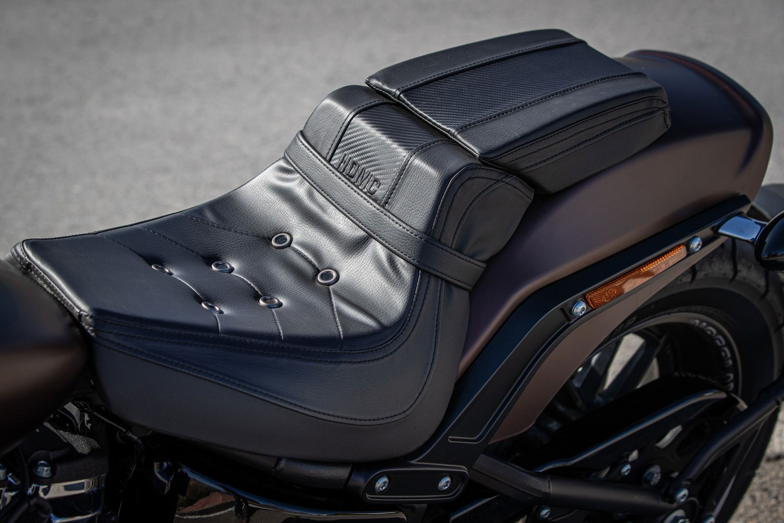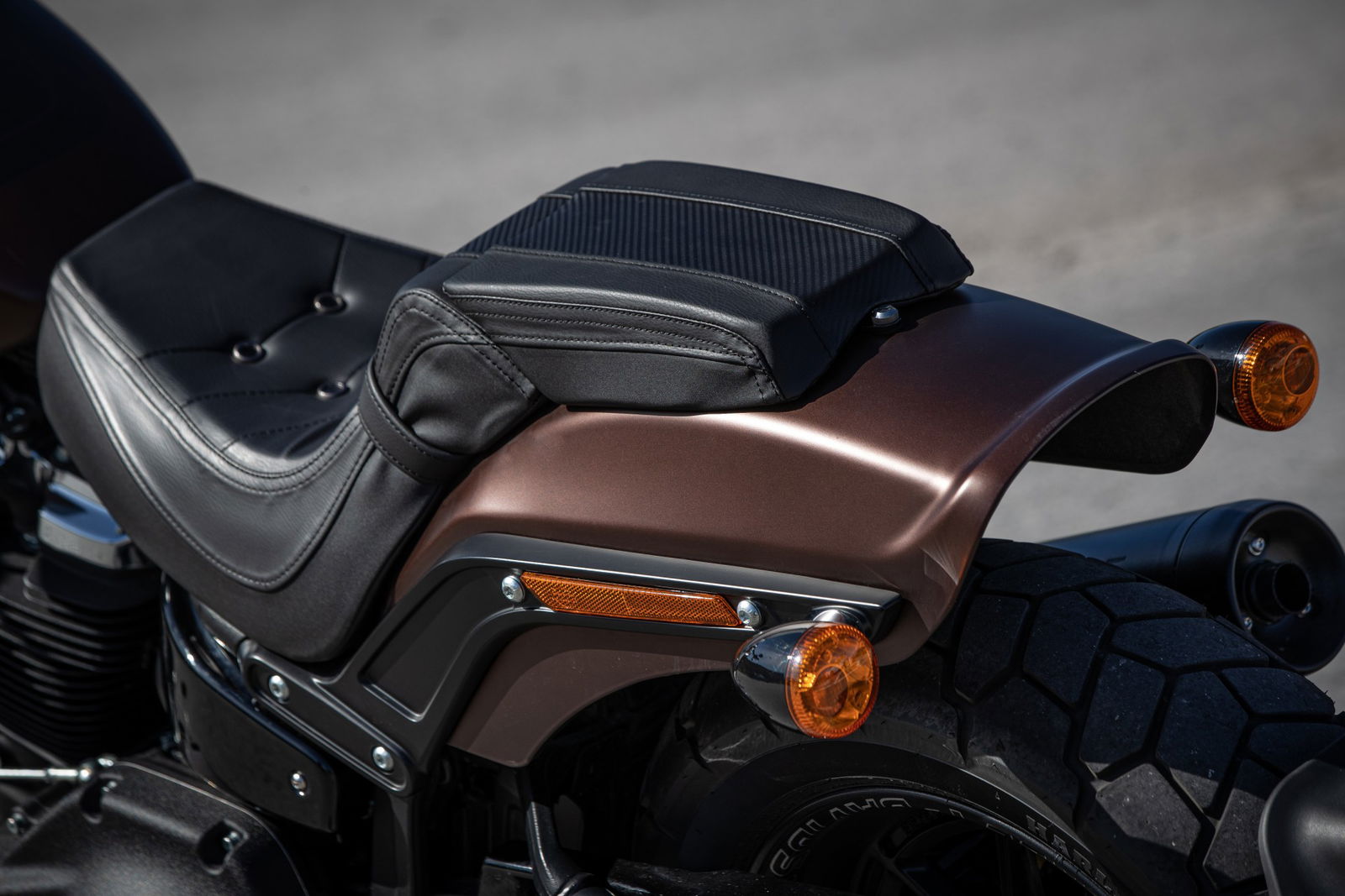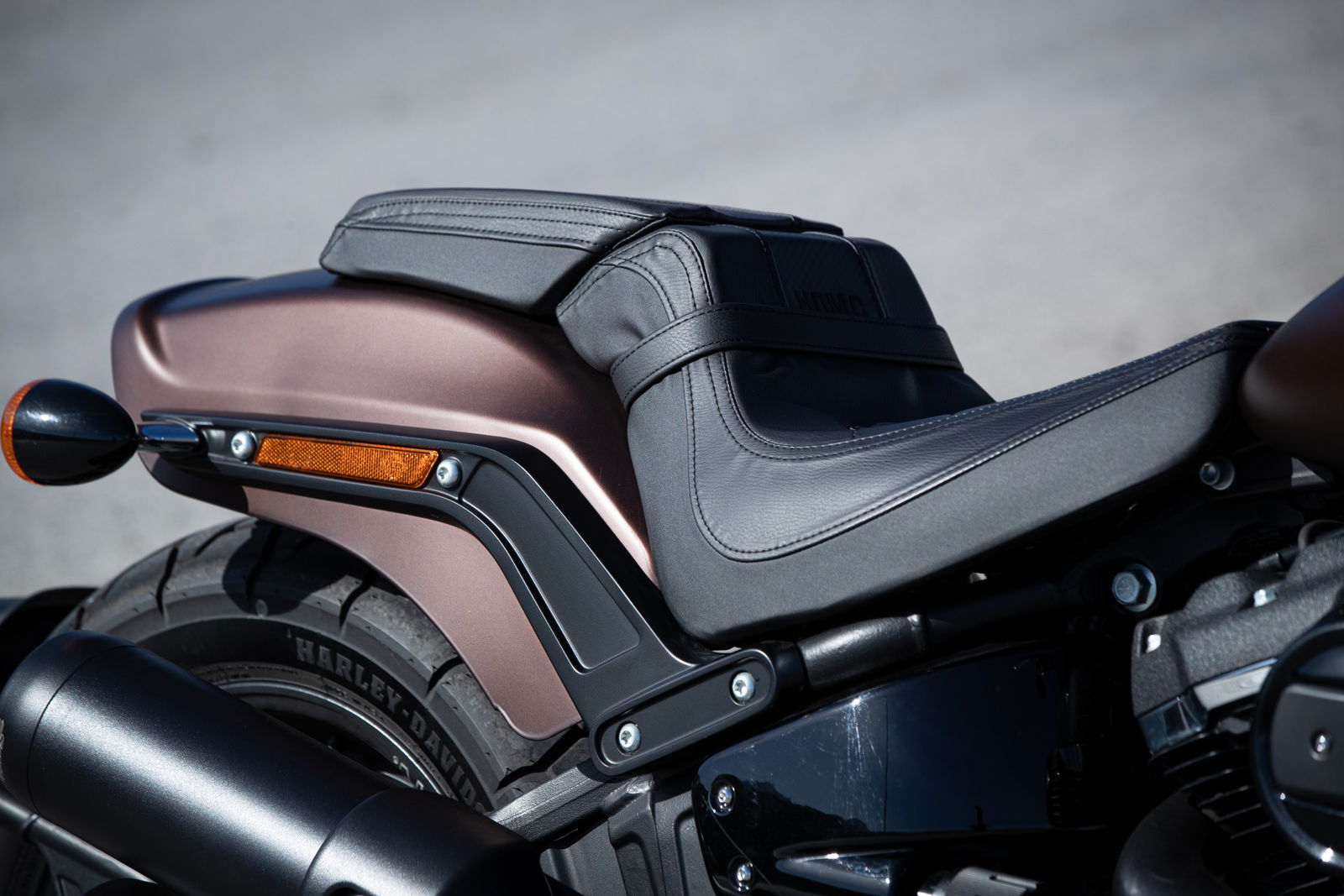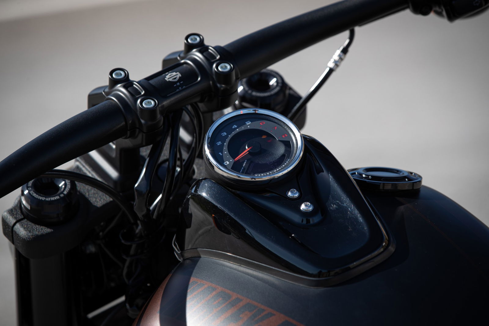 La Softail di rottura. Quella che i puristi guardano con sufficienza, se non con fastidio… Quella che ha invece più personalità. Quella che, pian piano, anche gli harleysti più fondamentalisti impareranno ad apprezzare e, magari, si metteranno in garage accanto alla Road King o all’Electra. L’avantreno è possente, con la forcella a steli rovesciati, il doppio disco e il ruotone da 16″ gommato 150/80, sovrastato dal farone rettangolare. Nella culla del telaio Softail, si può scegliere se alloggiare il V-twin da 107 oppure da 114 ci. La Fat Bob che ho guidato nell’entroterra andaluso era la versione più corposa: 114 ci (1.868 cc) per 155 Nm a 3.000 giri e 306 kg di peso in ordine di marcia. Comincio subito con quello che meno mi è piaciuto, ossia un avantreno non così ubbidiente nel seguire le traiettorie che hai in testa, soprattutto quando l’asfalto diventa più contorto e “guidato”. Niente da dire sulla sua solidità e sul feeling che trasmette, frenata compresa: è una questione di misure della ruota. La Fat Bobo è una vera bobber, di nome e di fatto. La sua indole sportiva viene a galla quando il raggio di curva cresce in ampiezza. La sella è a 710 mm da terra, le pedane sono piuttosto avanzate, ma il manubrio largo e i riser abbastanza corti garantiscono un buon controllo e permettono di godere di tutta la coppia erogata dal nerboruto bicilindrico (occhio che il controllo di trazione non c’è…). Per aiutare la guida sportiva si può intervenire sul precarico del mono. Regolandolo con il pomello posto sotto la fiancatina sinistra, si può ridurre l’affondamento e rendere più stabile il retrotreno quando si guida allegri e accucciati. La Fat Bob equipaggiata con il Milwaukee Eight da 114 costa a partire da 20. 300 euro.
