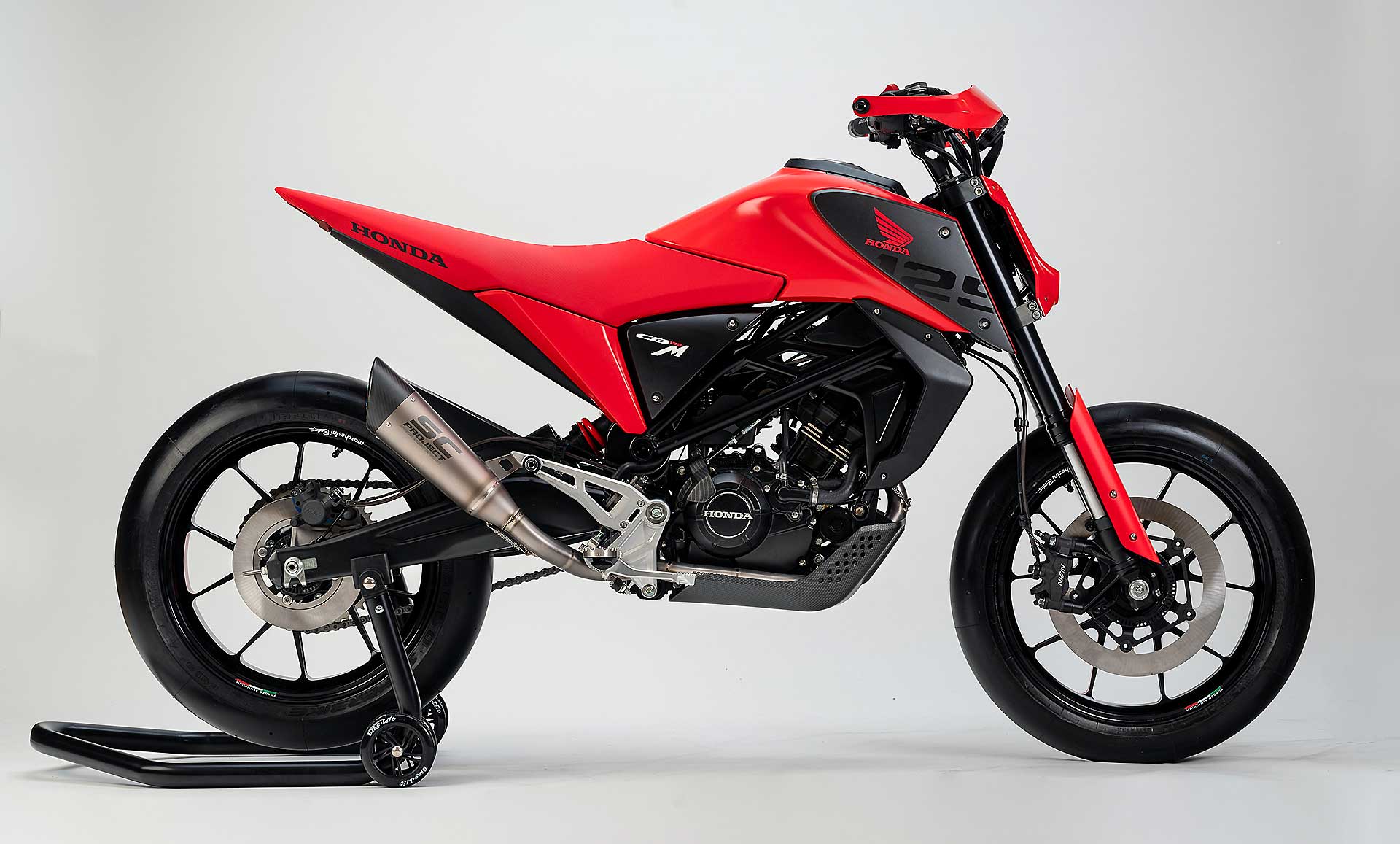 Prendi una base tecnica valida come quella della Honda CB125R (monocilindrico bialbero raffreddato a liquido, telaio a traliccio con motore “appeso”, lascia spazio alla felice matita del centro stile Honda di Roma (lo stesso che si è inventato l’X-ADV per intenderci) ed ecco che il risultato è, a mio avviso, eccezionale.