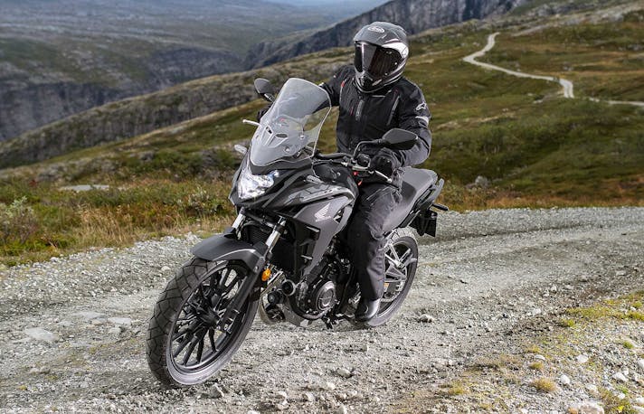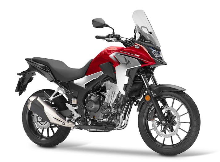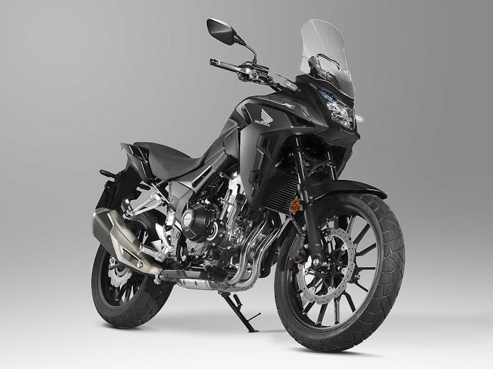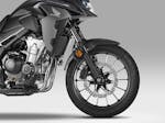 La Honda CB500X  si conferma porta d’accesso al mondo delle crossover evidenziato con il passaggio della ruota anteriore da 17 a 19 pollici. Dettaglio non di poco conto perché questa variazione di fatto rivisita buona parte delle misure vitali della bicilindrica giapponese.UN PASSO IN AVANTIIl confronto con il modello precedente della Honda CB500X vede crescere l’interasse fino a 1.443 mm, + 23 mm, l’inclinazione del cannotto di sterzo guadagna quasi un grado e raggiunge i 27,4°, migliora la luce a terra che cresce fino a 181 mm, al pari della sella che raggiunge quota 830 mm.  Anche il peso cresce di un chilo fino a 197 kg e la capacità del serbatoio di 17,7 litri garantisce un’autonomia superiore ai 500 km.STESSA POTENZA MIGLIORE EROGAZIONEIl motore bicilindrico già Euro4 della CB500X conserva le caratteristiche condivise con gli altri modelli della famiglia e si rivolge ai possessori di patente A2. La potenza di 48 cavalli non cambia ma migliora l’erogazione ai bassi e medi regimi, complice la diversa fasatura e i nuovi condotti di aspirazione e l’introduzione di un nuovo terminale di scarico.L’impianto frenante equipaggiato di ABS non disinseribile prevede un singolo disco da 310 mm davanti che sostituisce il precedente da 320 mm e posteriormente uno da 240 mm.VOCAZIONE TURISTICALa lista delle novità passa dalle sospensioni con corsa maggiorata e regolabili nel precarico della molla, leveraggio progressivo Pro-Link, l’adozione della frizione con sistema anti-saltellamento e nuovi cerchi ruota a sette razze sdoppiate in luogo delle precedenti dodici.Honda con la nuova CB500X ha pensato al guidatore che in sella ha maggiore protezione dall’aria e una conformazione diversa della sella per migliorare il contatto dei piedi a terra. La strumentazione LCD, come sulla Honda CBR500R prevede sia l’indicatore di marcia inserita sia di cambiata regolabile tra i 5.000 e gli 8.750 giri.Tre le varianti cromatiche previste: Grand Prix Red; Matt Gunpowder Black Metallic, Pearl Metalloid White