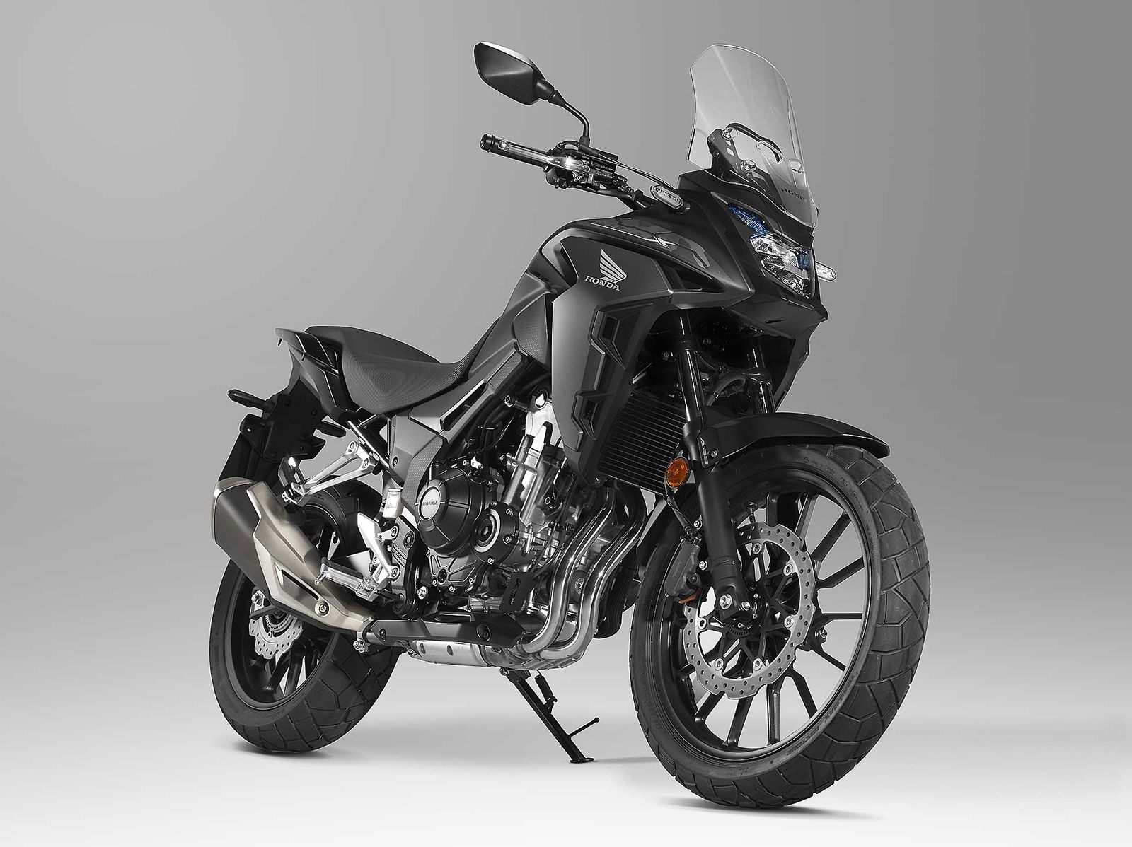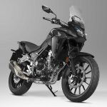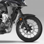 L’impianto frenante equipaggiato di ABS non disinseribile prevede un singolo disco da 310 mm davanti che sostituisce il precedente da 320 mm e posteriormente uno da 240 mm.VOCAZIONE TURISTICALa lista delle novità passa dalle sospensioni con corsa maggiorata e regolabili nel precarico della molla, leveraggio progressivo Pro-Link, l’adozione della frizione con sistema anti-saltellamento e nuovi cerchi ruota a sette razze sdoppiate in luogo delle precedenti dodici.Honda con la nuova CB500X ha pensato al guidatore che in sella ha maggiore protezione dall’aria e una conformazione diversa della sella per migliorare il contatto dei piedi a terra. La strumentazione LCD, come sulla Honda CBR500R prevede sia l’indicatore di marcia inserita sia di cambiata regolabile tra i 5.000 e gli 8.750 giri.