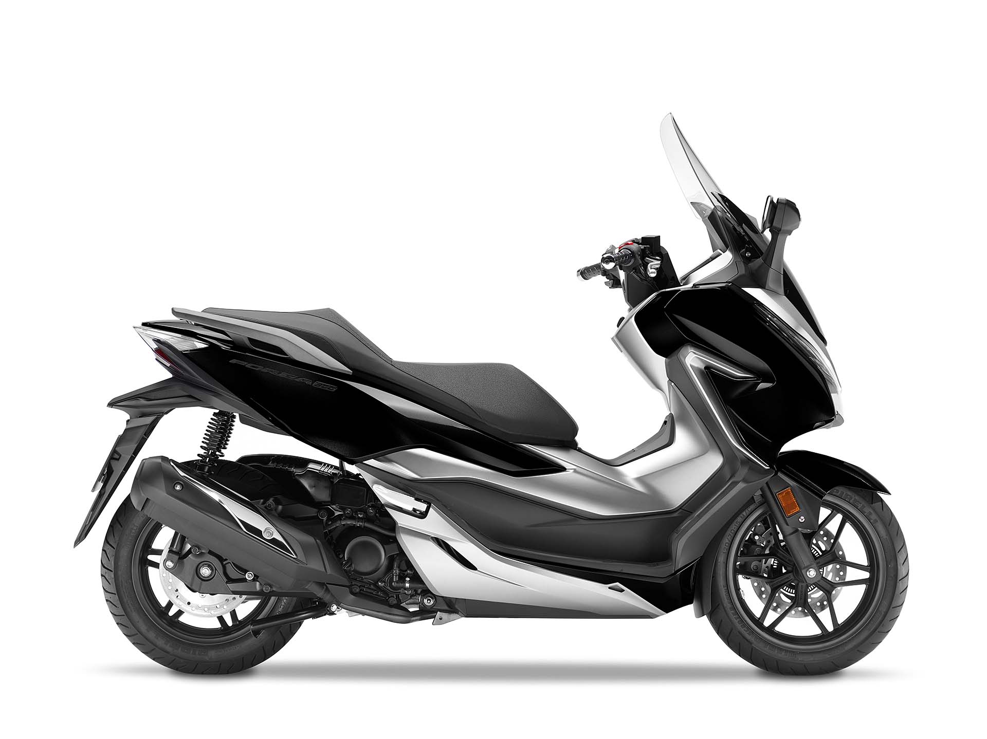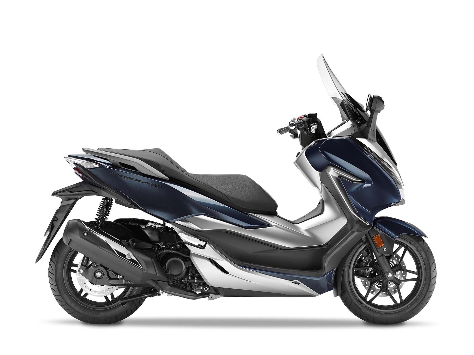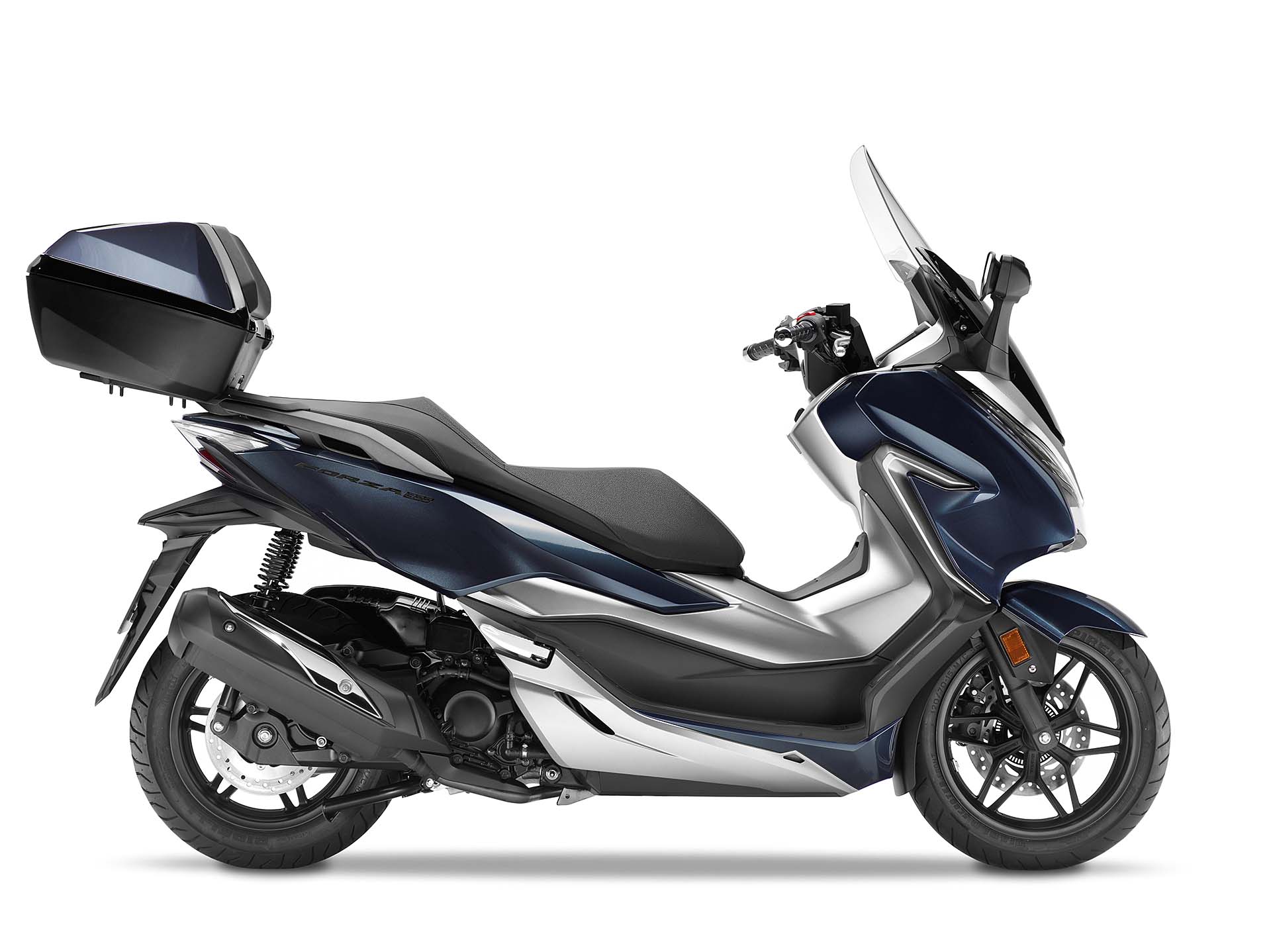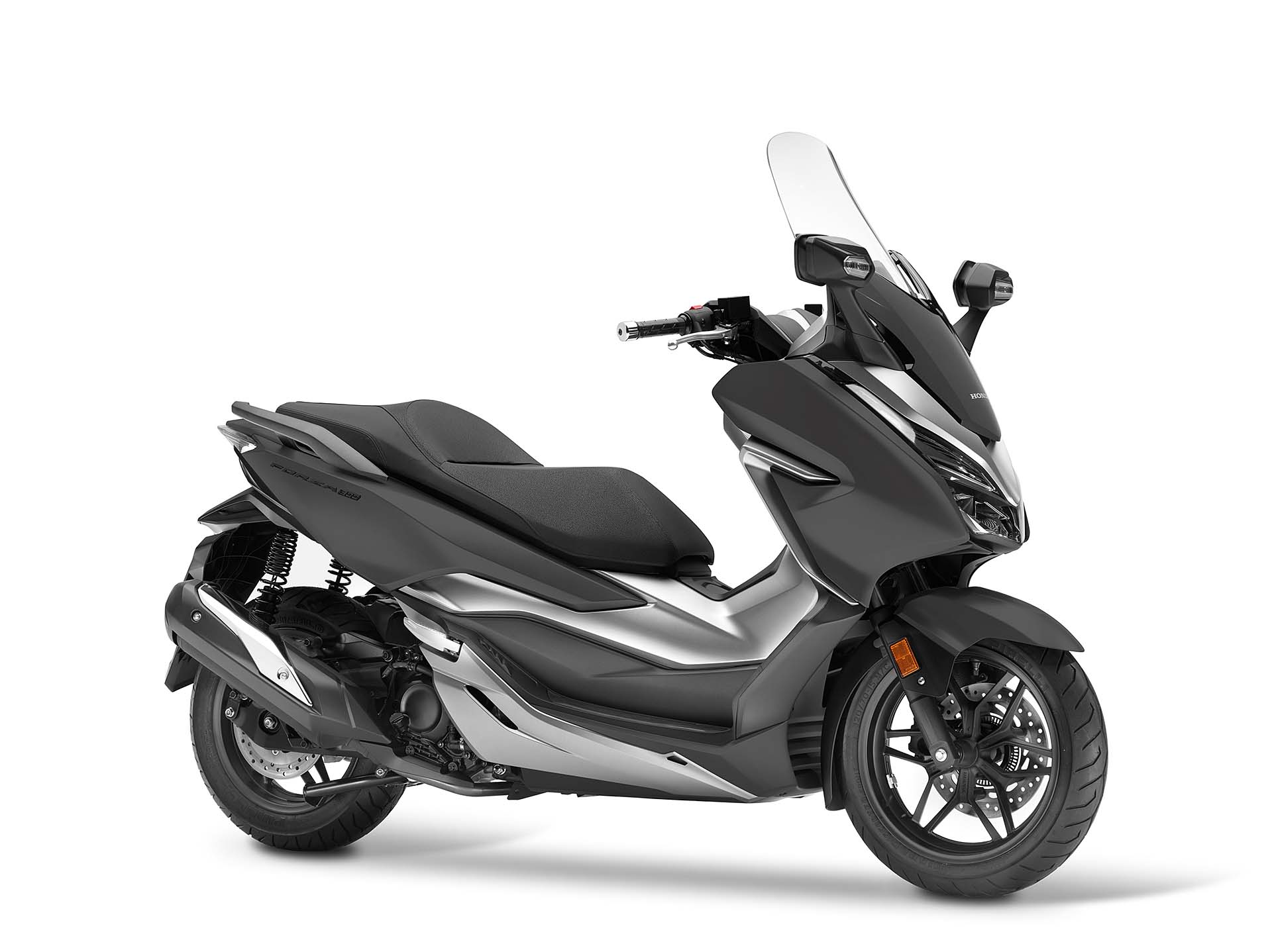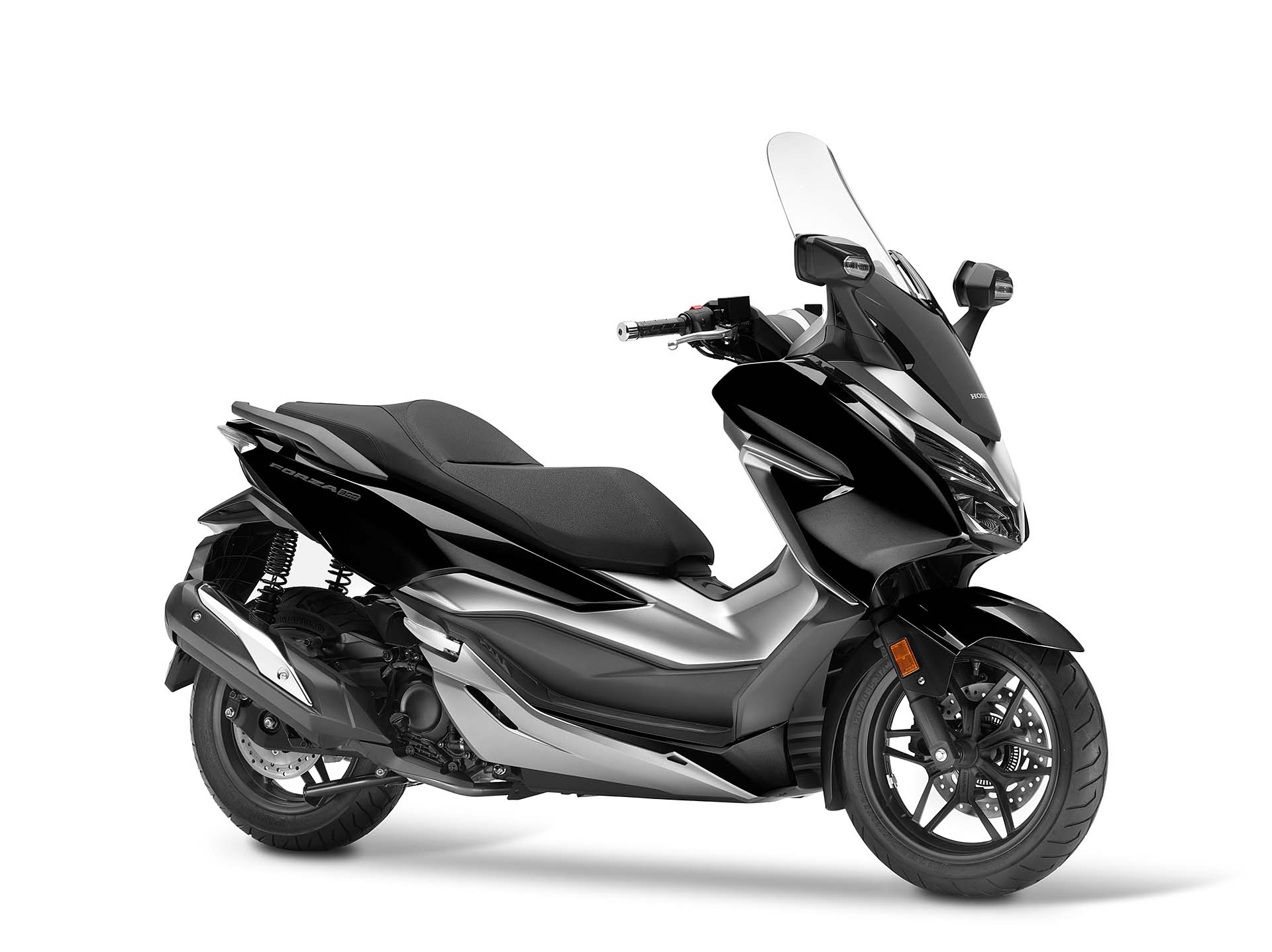 A cambiare non sono solo dettagli, dunque, ma è tutto il concetto alla base del nuovo Honda Forza 300 a essere diverso. Prima c’era uno scooter largo e con una sella simile a una bassa poltrona. Ora c’è uno scooter sportivo e altamente tecnologico. Rispetto al passato è più corto (1.510 mm l’interasse, -36 mm) ma più alto (780 mm, +62 mm) grazie anche al nuovo telaio in acciaio che garantisce una guida più agile e intuitiva, soprattutto nel traffico delle città. Forcella da 33 mm, due ammortizzatori con precarico regolabile su 7 posizioni, ruote con cerchi da 15-14” (prima 14-13”) e gomme Pirelli Diablo Scooter (120/70 e 140/70), 182 kg con il pieno di benzina (-12 kg), un disco anteriore da 256 mm e ABS: queste le sue caratteristiche principali.Qui motoreIl motore del nuovo Honda Forza 300 è lo stesso che equipaggia l’apprezzatissimo SH300, qui con qualche leggera modifica a livello di condotti, distribuzione e accensione per avere un po’ più di tiro ai bassi regimi. Monocilindro da 279 cc, monoalbero a 4 valvole, qui eroga 25,2 cv a 7.000 giri e 27,2 Nm, per soli 31 km/l nel ciclo medio WMTC (in passato 30,8). Grazie al serbatoio da 11,5 litri, l’autonomia dichiarata è di circa 350 km. Una primizia per l’Honda Forza 300 è il controllo di trazione HSTC (Honda Selectable Torque Control), presente per la prima volta su uno scooter Honda. Il sistema rileva la differenza di velocità tra la ruota anteriore e posteriore e gestisce la coppia motrice tramite l’iniezione. È disattivabile.Non manca nulla