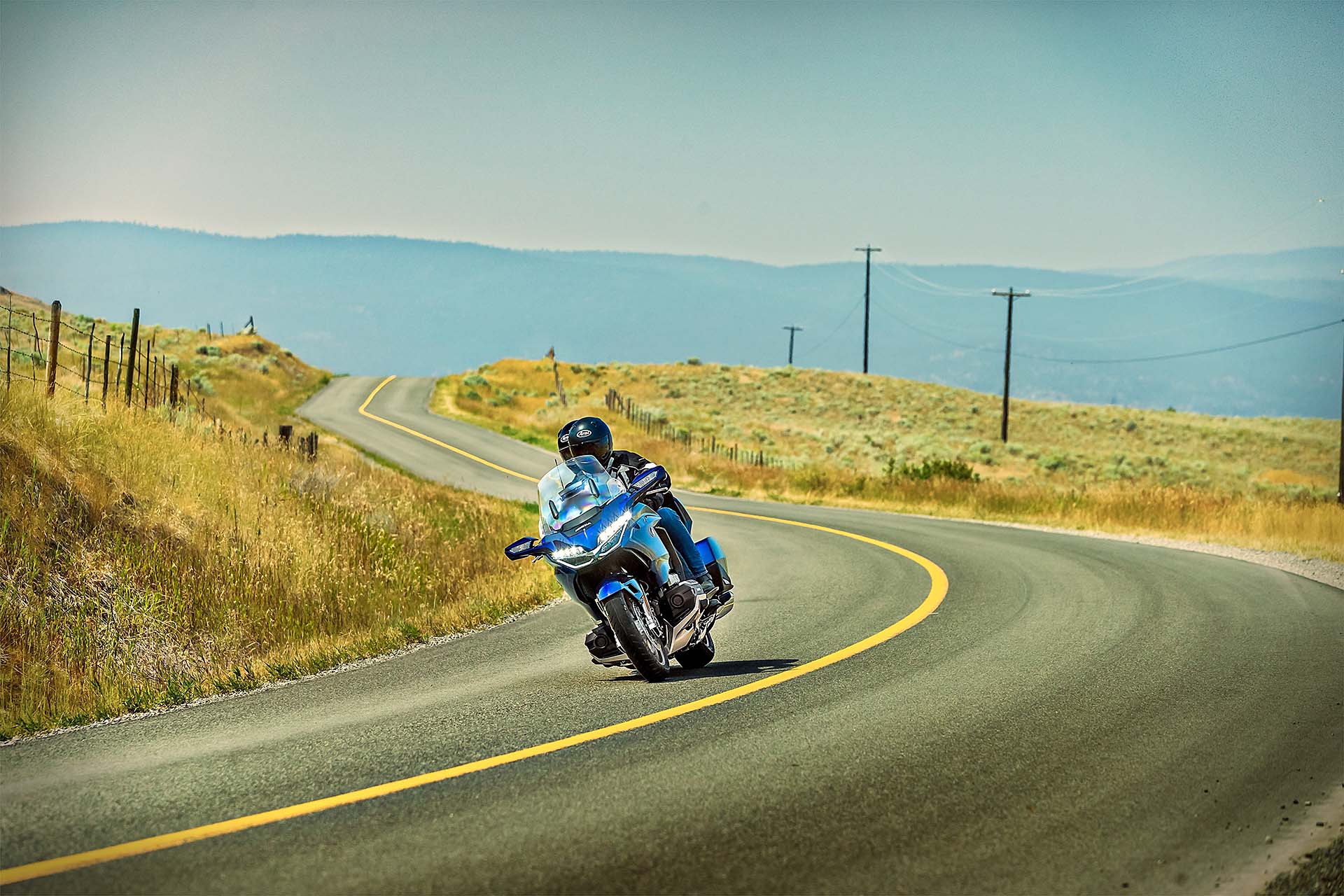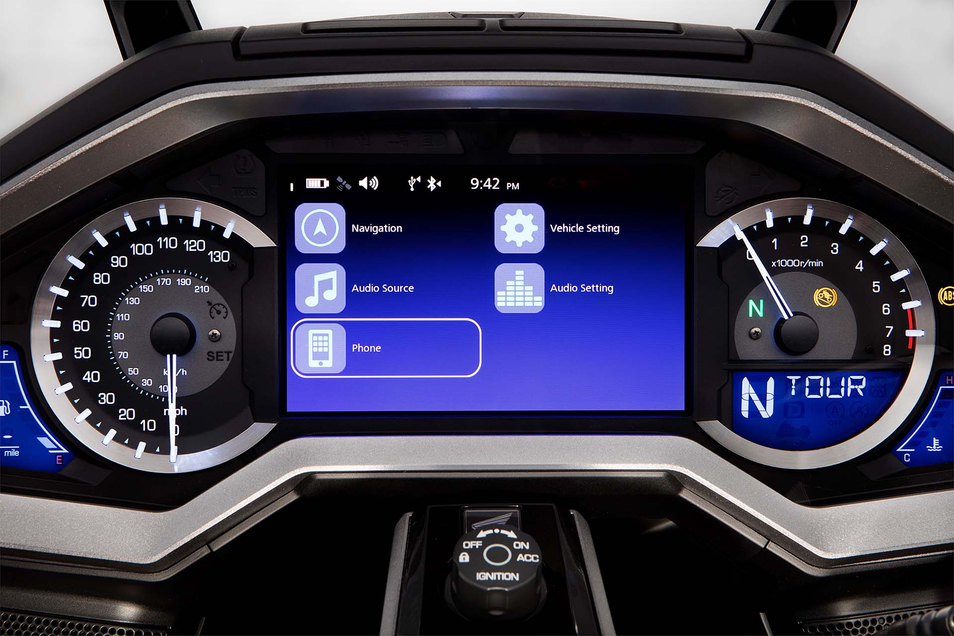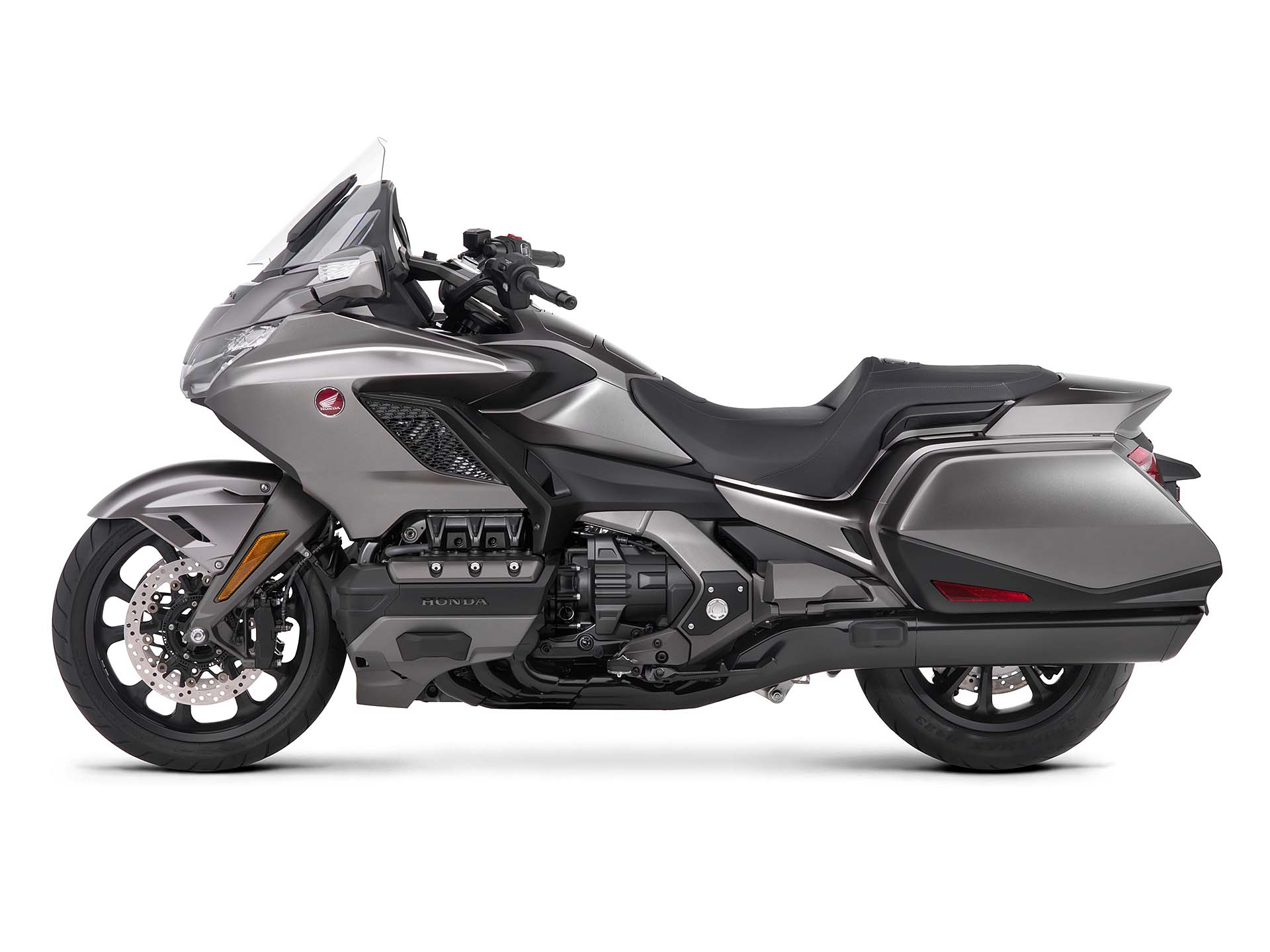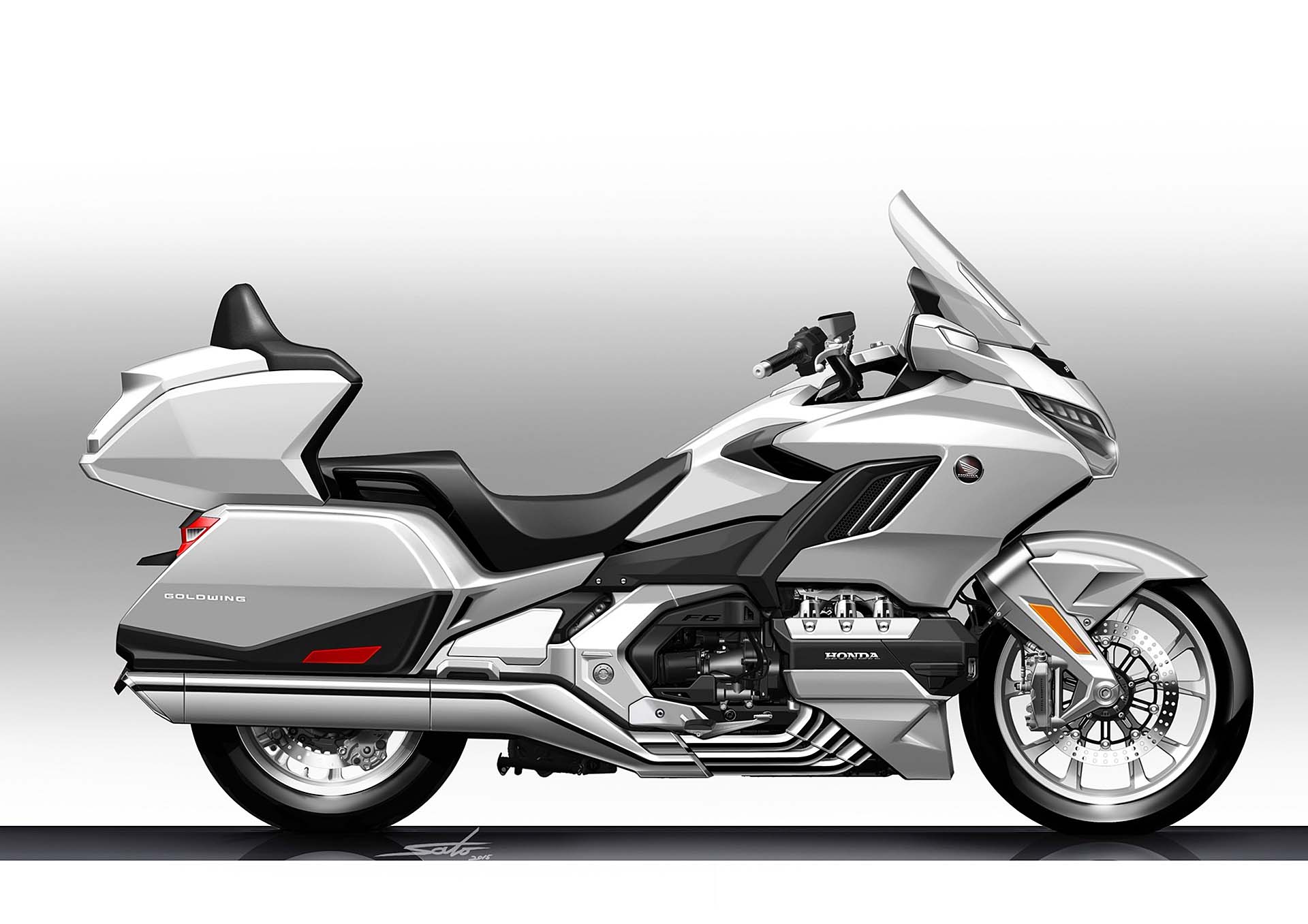 ALL INCLUSIVEOvviamente la lista di sistemi accessori alla guida offerta di serie è lunghissima. L’impianto luci è full Led, il cruise control è del tipo elettronico (grazie al TBW), la strumentazione è composta da tre display LCD e uno schermo TFT a colori da 7” ed è consultabile per mezzo dei pulsanti sopra al manubrio. Garantita la connettività Apple CarPlay, per collegare l’iPhone alla moto. La chiave è del tipo Smart Key mentre la capacità di carico è stata leggermente ridotta: secondo un’indagine tra i clienti Honda, non era indispensabile tutto lo spazio disponibile sul vecchio modello. E comunque, la versione Tour (sia DCT/Airbag sia manuale) prevede un top box capace di contenere due caschi integrali, portando così la capacità totale a 110 litri. La Gold Wing “base” sarà disponibile solamente in grigio metalizzato, la Tour rossa o bianca e la Tour DCT/Airbag rossa/nera oppure nero notte.
