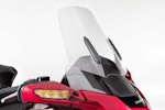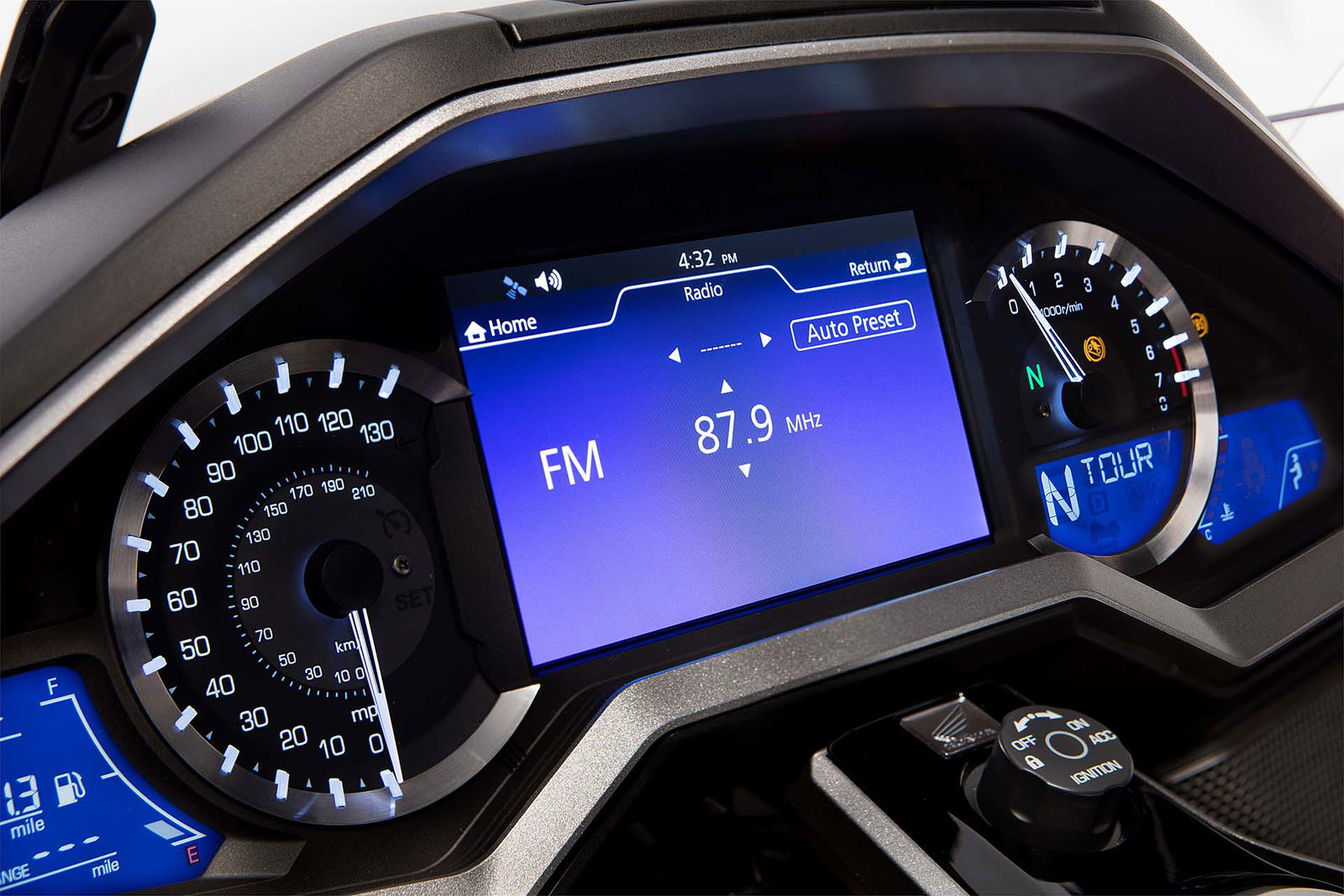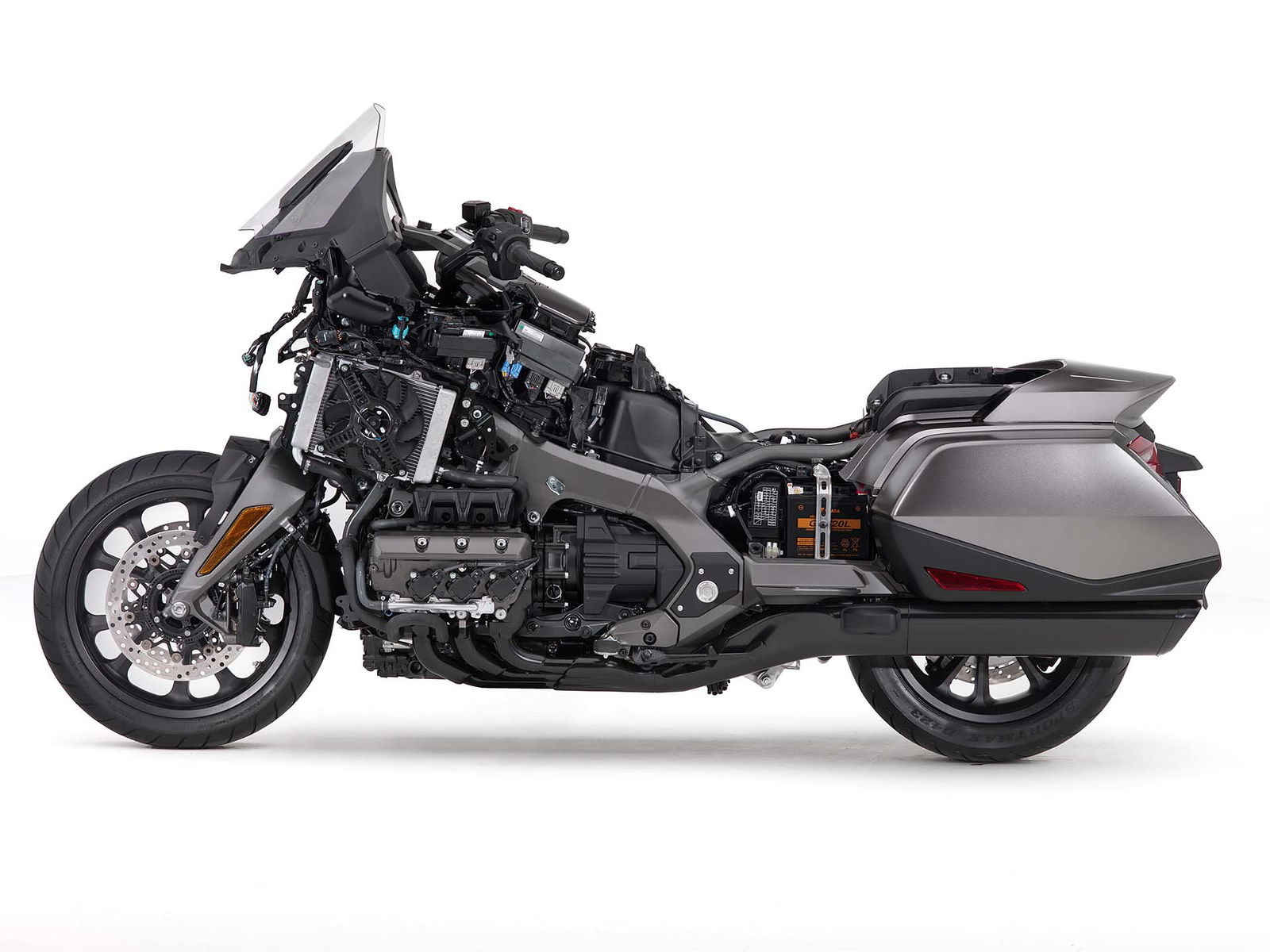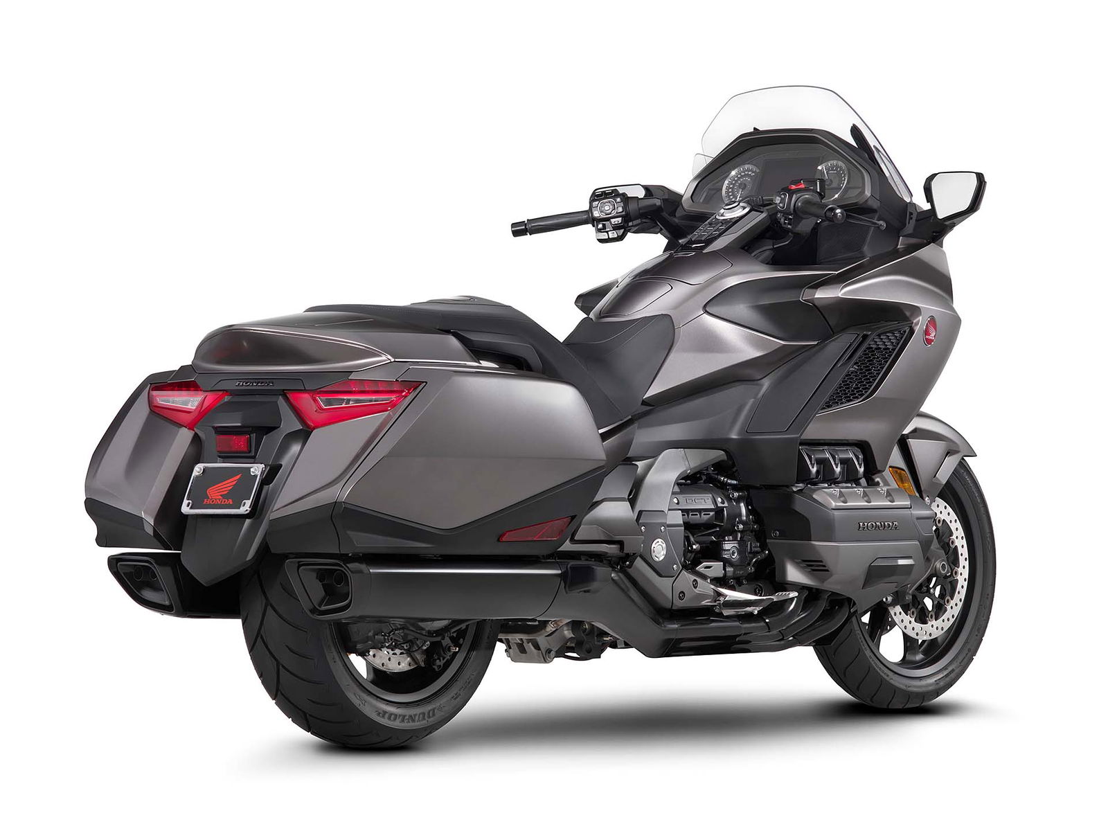 ALL INCLUSIVEOvviamente la lista di sistemi accessori alla guida offerta di serie è lunghissima. L’impianto luci è full Led, il cruise control è del tipo elettronico (grazie al TBW), la strumentazione è composta da tre display LCD e uno schermo TFT a colori da 7” ed è consultabile per mezzo dei pulsanti sopra al manubrio. Garantita la connettività Apple CarPlay, per collegare l’iPhone alla moto. La chiave è del tipo Smart Key mentre la capacità di carico è stata leggermente ridotta: secondo un’indagine tra i clienti Honda, non era indispensabile tutto lo spazio disponibile sul vecchio modello. E comunque, la versione Tour (sia DCT/Airbag sia manuale) prevede un top box capace di contenere due caschi integrali, portando così la capacità totale a 110 litri. La Gold Wing “base” sarà disponibile solamente in grigio metalizzato, la Tour rossa o bianca e la Tour DCT/Airbag rossa/nera oppure nero notte.