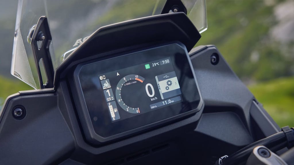 La nuova strumentazione prevede ora un display TFT a colori da 5 pollici in grado di ridurre i riflessi sotto la luce diretta. L’interfaccia si gestisce completamente mediante il nuovo blocchetto comandi di sinistra a quattro vie. Il sistema Honda RoadSync incorporato permette di collegare via Bluetooth lo smartphone al cruscotto e, tramite interfono nel casco e i comandi al manubrio, consente al pilota di gestire le chiamate vocali, i messaggi, la musica e il navigatore. Il sistema, naturalmente, funziona sia con dispositivi mobili Android che iOS.