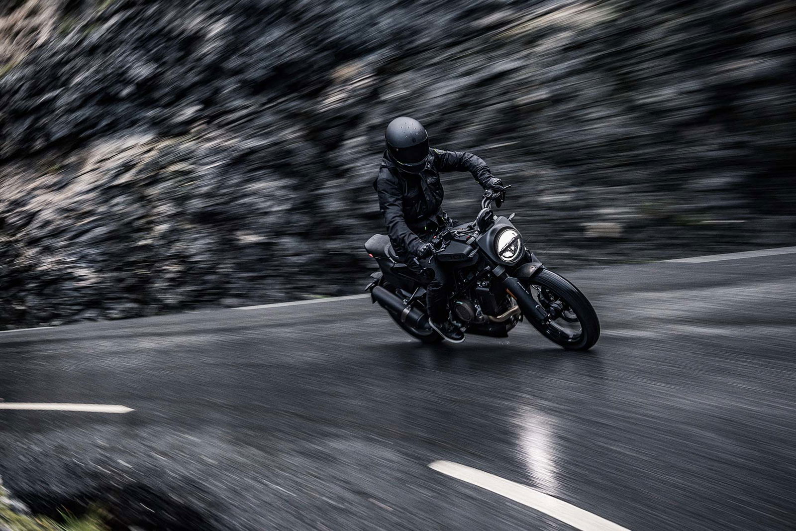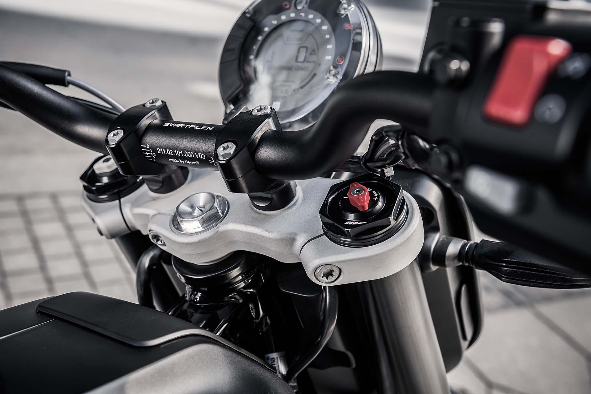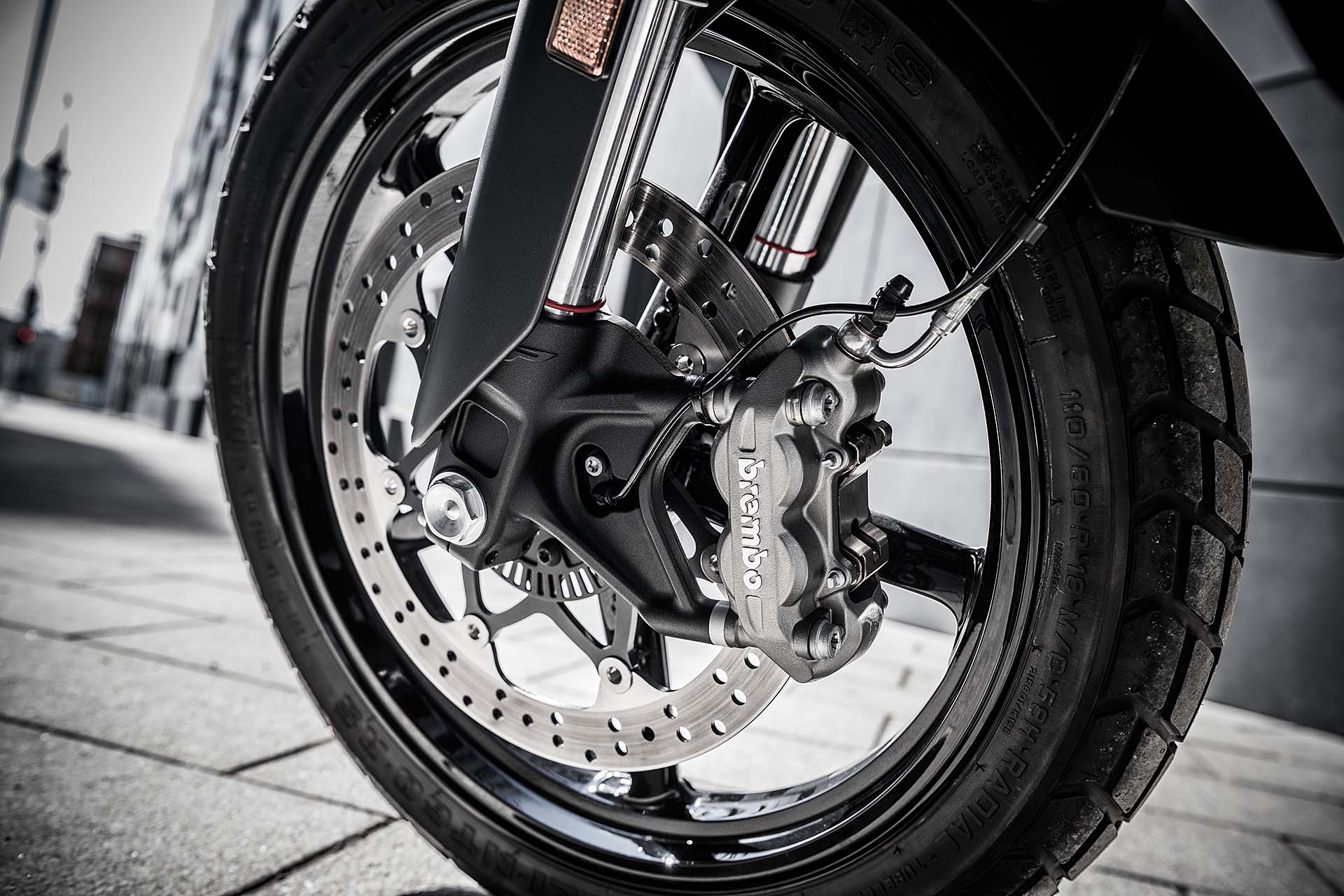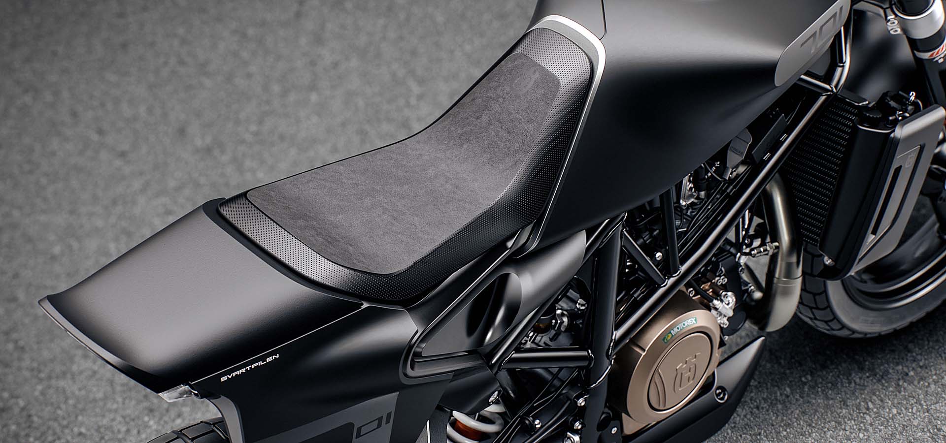 È una flat trackSi continua con il telaio: la Husqvarna Svartpilen 701 adotta un traliccio in acciaio ad alta resistenza, il forcellone invece è in alluminio e ha nervature a vista (ormai un marchio di fabbrica per tutte le moto del gruppo) e le sospensioni sono WP. Per il resto, a cambiare in maniera importante sono alcune sovrastrutture, soprattutto nella parte posteriore (il codino ha un design piuttosto elaborato) e le gomme, semi-tassellate (Pirelli MT60 RS) e da 18-17”. Il manubrio ha la classica piega da moto off-road, l’impianto frenante è marchiato Brembo.Le altre