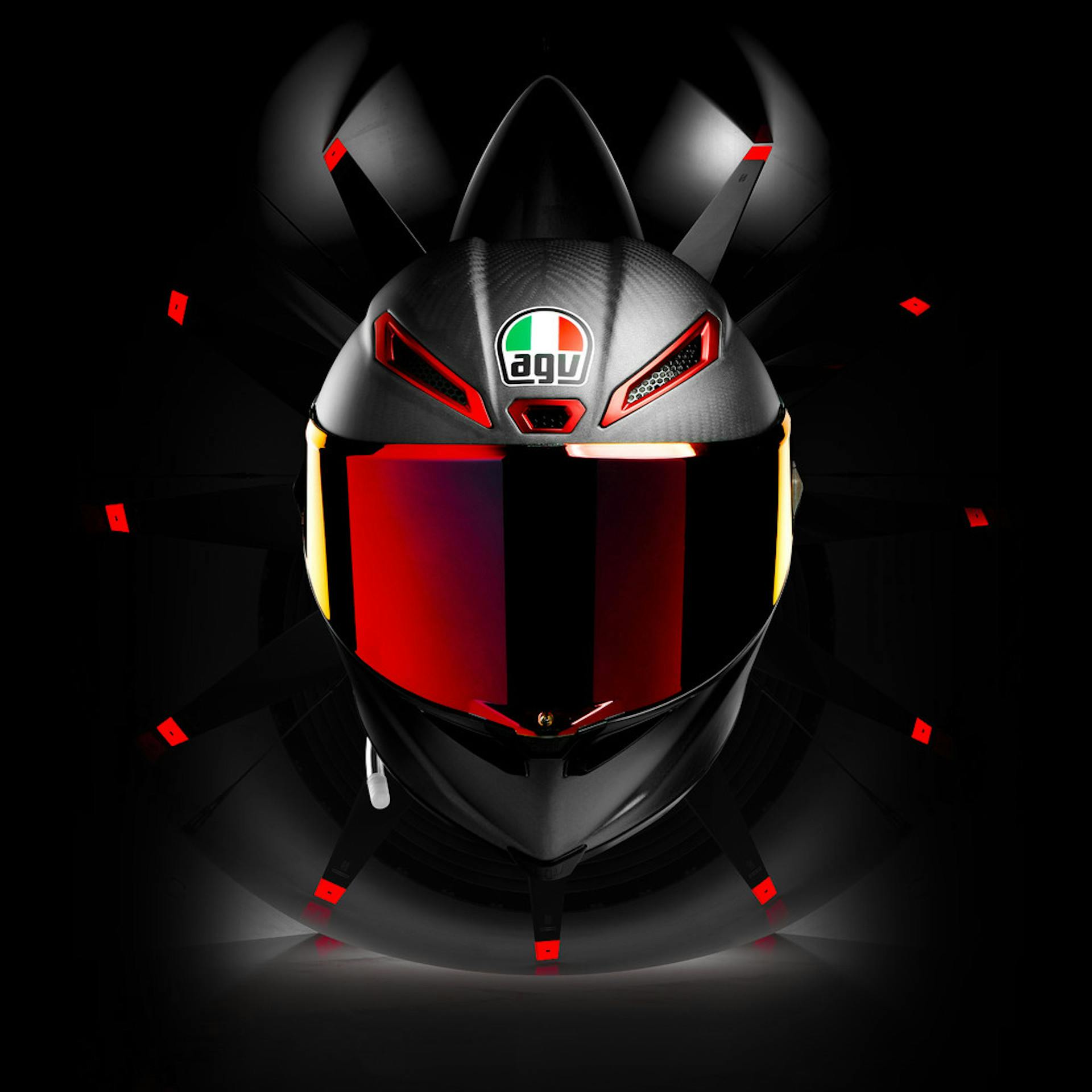 AGV, marchio del gruppo Dainese, per tantissimi anni sponsor del Vale nazionale, propone diversi caschi sportivi. Tra i top di gamma c’è il Pista GP RR, che per l’azienda veneta rappresenta lo stato dell’arte per la guida tra i cordoli. Ha una calotta interamente in fibra di carbonio 100%, prese d’aria in lega metallica con profilo alare e mentoniera a cuneo.