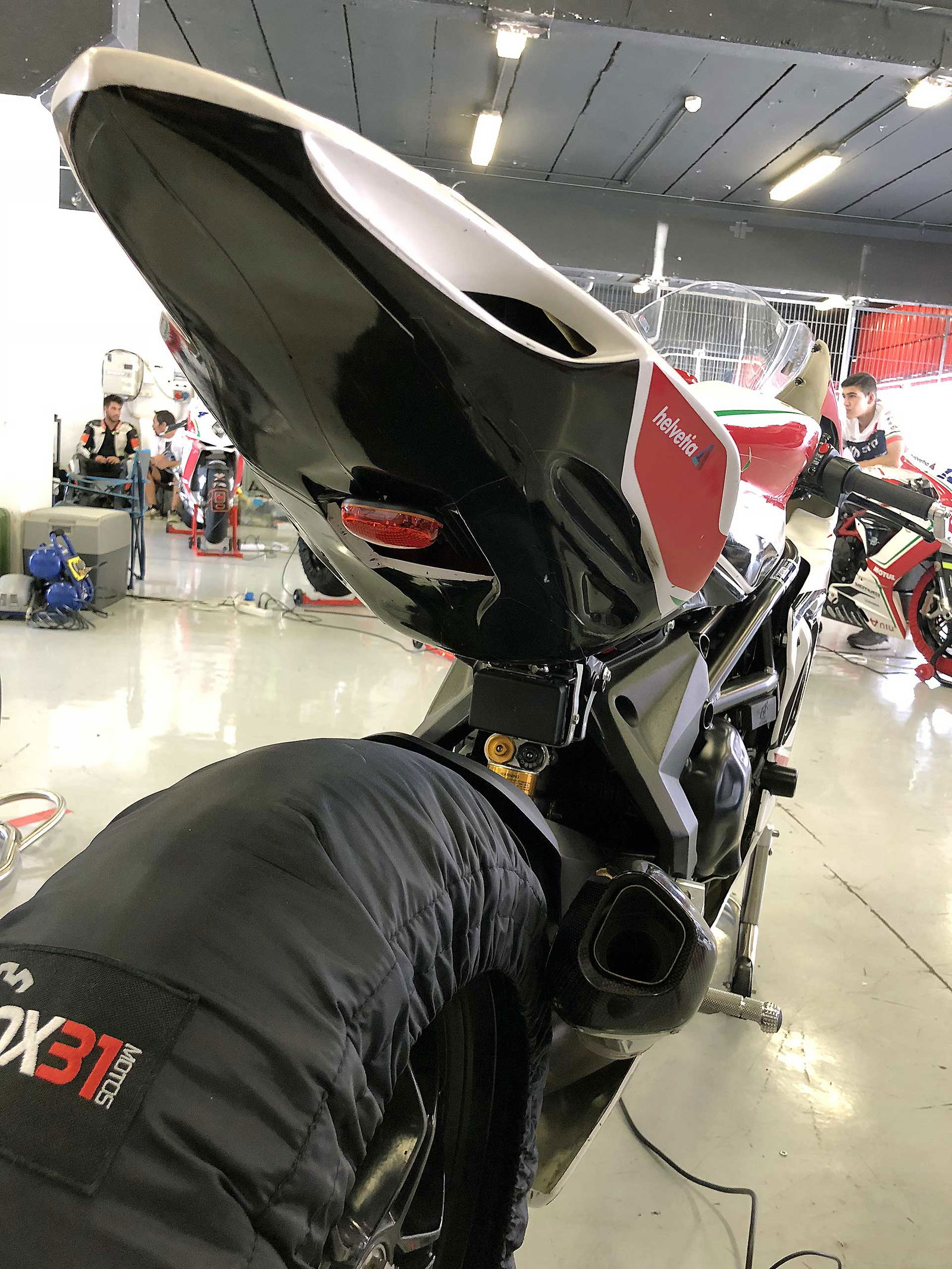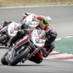 Per le QP2 parto più agguerrito e convinto, gomme nuove, che “spingono” molto di più aiutano. Filo proprio dietro alla Herrera e nel mio giro migliore scendo ancora di un secondo, 1.53.3 la prima fila è mia fino a un minuto dalla fine quando Israel Lopez uno con cui avrò a che fare per tutto il week end mi frega per due decimi. Anche perché io al secondo Run mi rimbambisco e vado piano. Quando esco Max non mi dice niente, ma so già quello che mi vorrebbe dire “che cacchio facevi in pista a consumare benzina e gomme per andare così piano?”In ogni caso siamo soddisfatti, abbiamo sfiorato la prima fila, ogni modifica che abbiamo effettuato all’assetto (solo qualche click e qualche giro di molla in verità) ha dato i risultati sperati e sono confidente per la gara, che però potrebbe esser bagnata. È da una settimana infatti che spulcio le app del meteo per vedere se quel maledetto simbolo del temporale sparisce ma niente da fare. Proprio nelle ore centrali della giornata, quelle della gara le pioggie “consistenti” imperversano. La gara potrebbe essere bagnata.DOMENICA GRIGIAIl cielo è carico di nubi il warm up è fresco ed essendo in coabitazione con la categoria Supersport 600 mi metto alle calcagna di un infiammato con una R6 riesco perfino ad essere veloce (incredibile per me che nel warm up dormo sempre) strappando il terzo tempo assoluto. Sto bene in moto, sono carico. Talmente sicuro che dico a Max di cambiare solo la gomma posteriore (rimetto la Soft e sbaglio perché i più veloci montano l’ultimate che rende almeno un secondino) “tanto l’anteriore è buona”.Ma lui, il tarlo bastardo del pilota insicuro inizia a lavorare dentro di me. Giro per il box e noto che tutti quelli veloci cambiano entrambe le gomme. Resisto, resistoooo. Ma niente. Il tarlo vince.S. “Max per piacere cambiamo anche l’anteriore”.Mi guarda e rideM. “lo sapevo che andava a finire così, sei proprio un pilota”. (detto non proprio in modo elogiativo)Già.La gara finisce per essere una bellissima battaglia tra me e l’ormai amico Israel. Parto bene, nonostante la frizione della F3 non aiuti molto. Va accompagnata poco, altrimenti strappa. Meglio quindi partire tranquilli per evitare di fare il canguro. Alla prima curva sono terzo, la Herrera e Aleix Gonzalez allungano e io cerco di seguirli. Sono veloce ma mi sento meno a mio agio sulla moto rispetto al warm up, è uscito il sole e fa un caldo infernale e la gomma posteriore scivola un po’. Ma mi difendo: 6 giri in terza posizione prima di essere infilato dal solito Israel che mi passa in staccata alla curva 1. Mi accodo lo tengo giriamo forte, più forte che in tutto il week end. Sono più incisivo di lui in almeno un paio di punti della pista, ma nei curvoni non riesco ad aprire altrettanto presto e facciamo un po’ l’elastico.PODIO CENTRATO