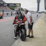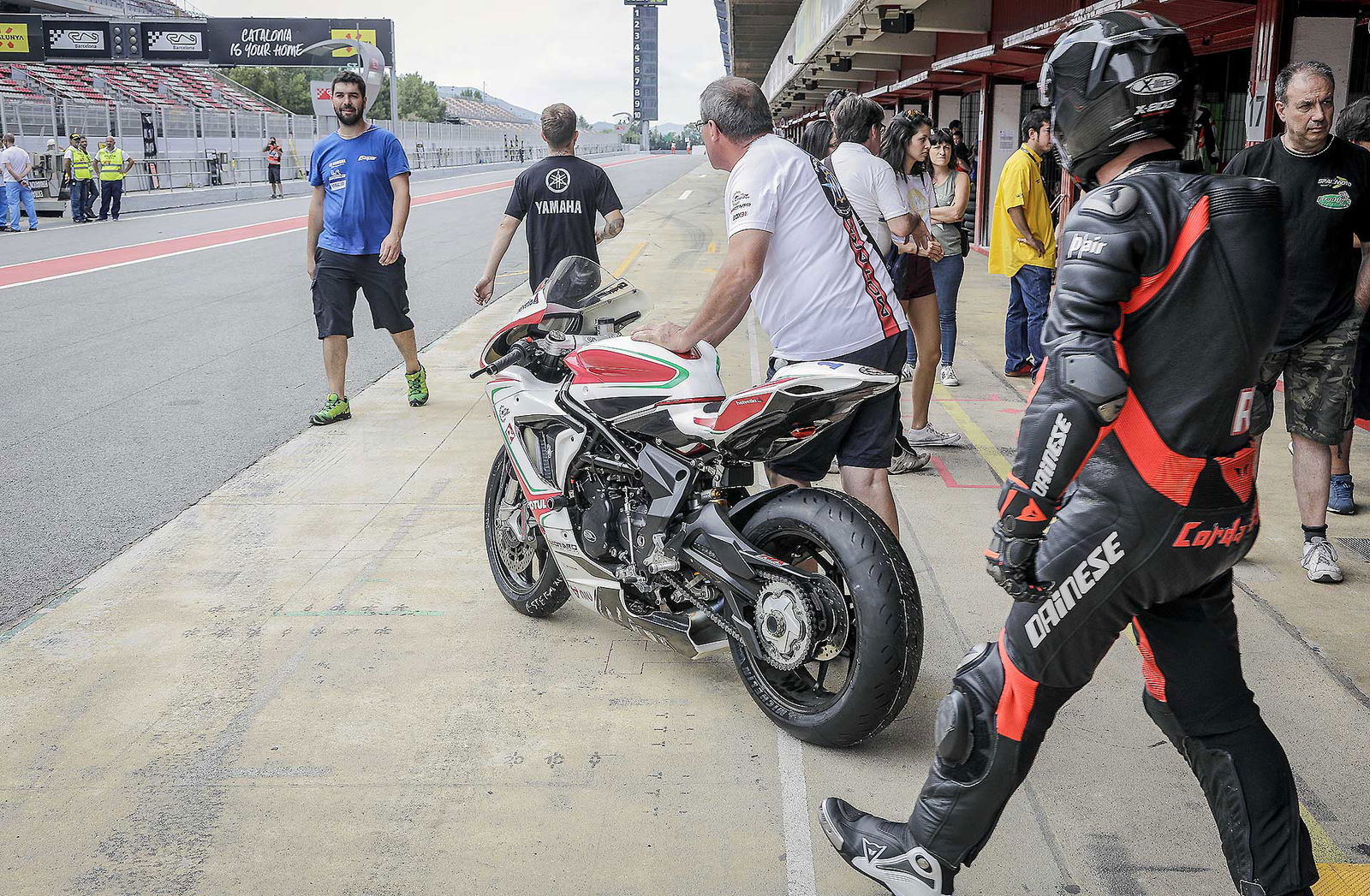 Nel più puro spirito dei trofei monomarca anche la Coppa F3 è monogomma, si corre con le Michelin Power Cup, disponibili in versione Soft o Ultimate (supermorbide che richiedono determinate prestazioni per rendere al meglio). Volendo è anche possibile noleggiare una moto per una sola gara con una serie di step di assistenza che vanno dal “basico” (1.560 euro) al completo (2.295 euro) che comprende il meccanico dedicato e 5 pneumatici (tre posteriori e due anteriori). Sono cifre davvero interessanti, soprattutto se si considera che la moto è una MV Agusta.ITAGNOLOProprio una di quelle moto a noleggio è finita nelle mie mani per questo week end di gara. La scelta cade su Barcellona, circuito con cui in fondo ho un conto aperto visto che ci ho corso ben due 24 ore senza però mai finirne una. Per due giorni, quindi, mi sono trovato immerso in una festosa atmosfera catalana (gli organizzatori sono davvero fantastici), forse un po’ ruspante ma decisamente rilassata e mi sono trovato a parlare di “embrague”, “desarollo”, “neumatico” e “gasolina”, alternando italiano e spagnolo in un esperanto che solo chi va in moto può capire. Un ambiente bellissimo.ME AND MAX