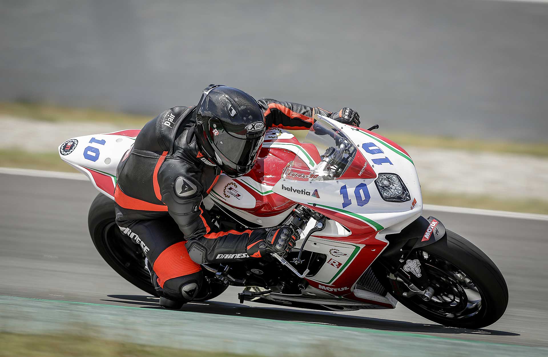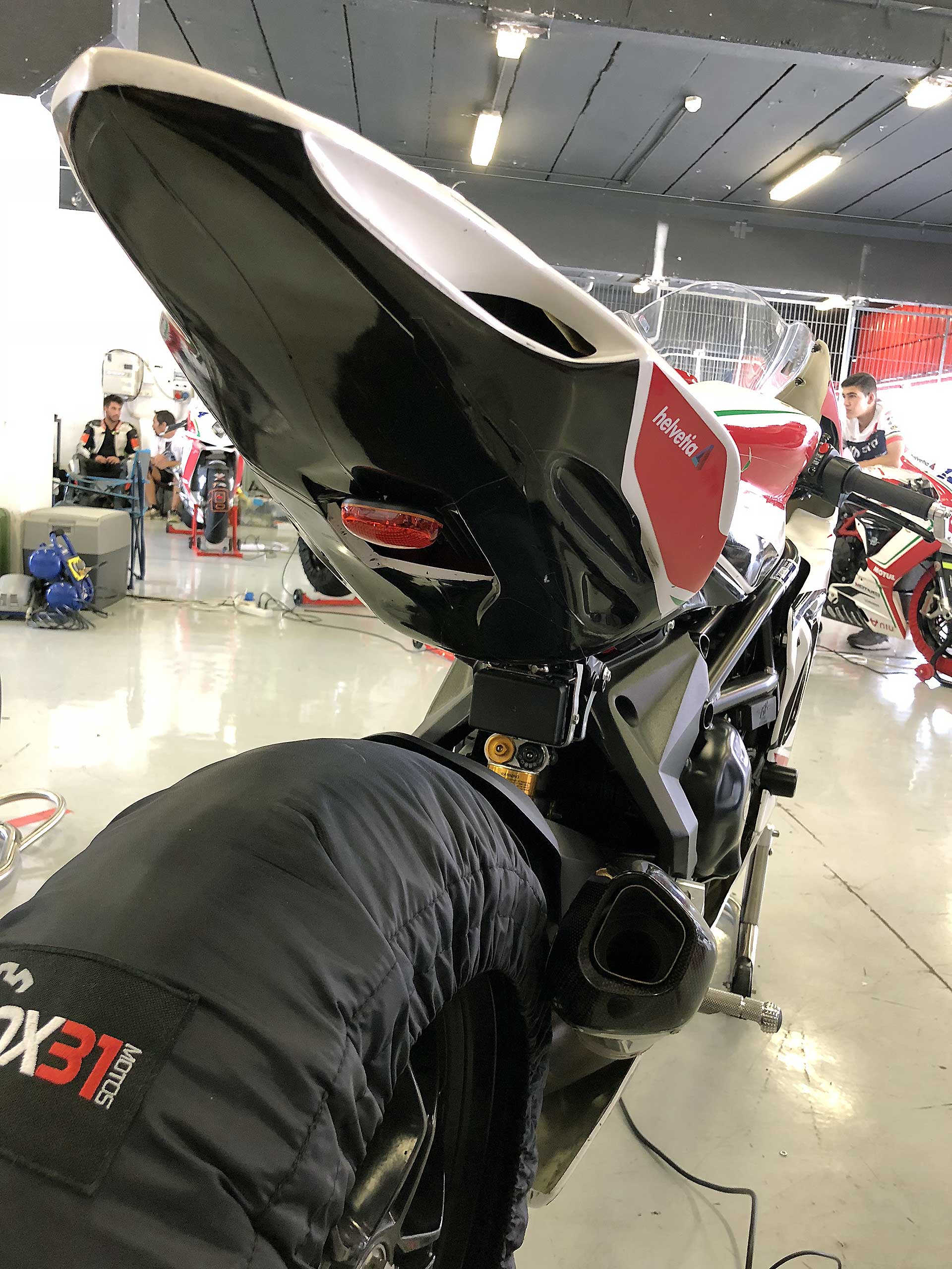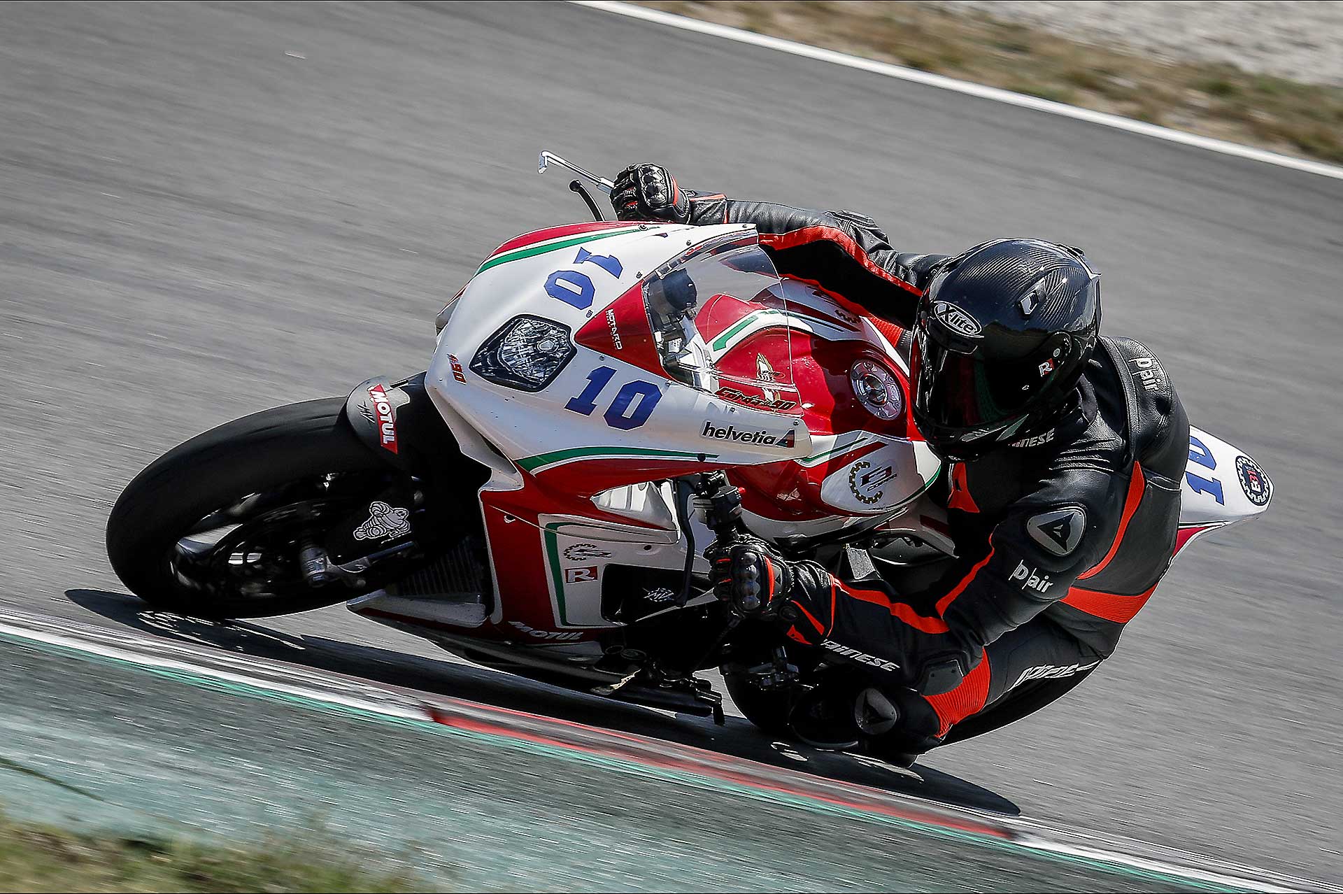 La formula della Coppa F3 (organizzata dal promoter Box 31 Motos) è semplice: le moto hanno una preparazione minima, la mappa del motore (preparata espressamente da MV) è conservativa (limitatore abbassato di 600 giri) per permettere di correre a lungo senza problemi (in due anni di trofeo nessun motore rotto), cartuccia forcella e monoammortizzatore TTX sono marchiati Ohlins, rimane montato sulla moto addirittura il modulatore dell’ABS (comunque bypassato, ma non si può togliere per non mandare in protezione l’elettronica) e compare uno scarico Termignoni con una voce che pare Bocelli. https://youtu.be/4b2I3inyOmg Tutto il resto è assolutamente di serie. La formula è studiata per rendere i costi accettabili. Con 17.500 euro, infatti, si entra in possesso di una fiammante MV Agusta F3 675, di tutto il kit, di un treno di gomme e si è pronti per correre su sei circuiti top della spagna (Jerez – Aragon – Albacete – Barcellona – Valencia e il nuovo circuito di Andalucia che ha così tante curve da sembrare un intesino). Il premio per il vincitore è una Brutale 800 RR. Direi appetibile.MONOGOMMA COL BIBENDUM