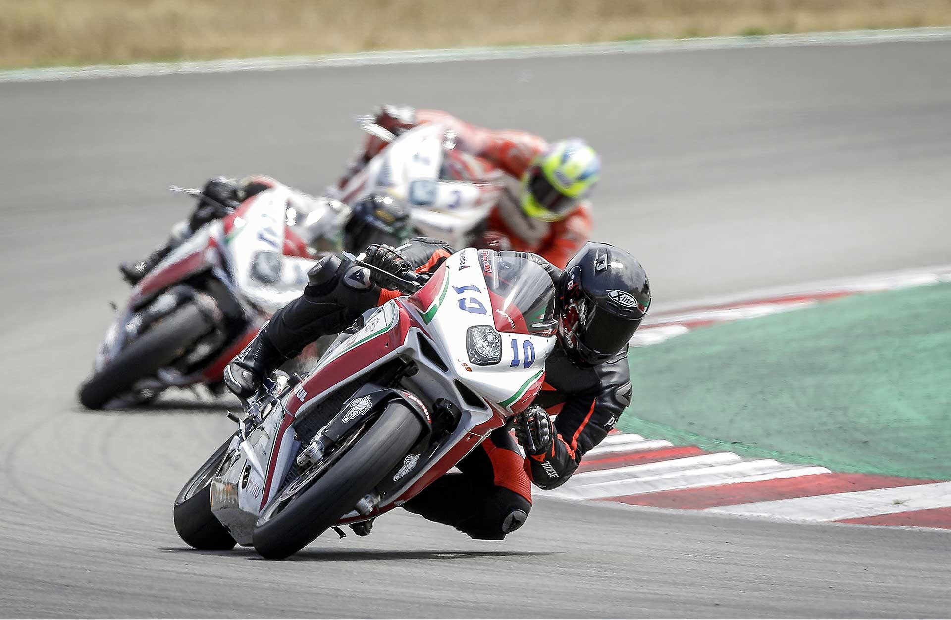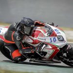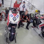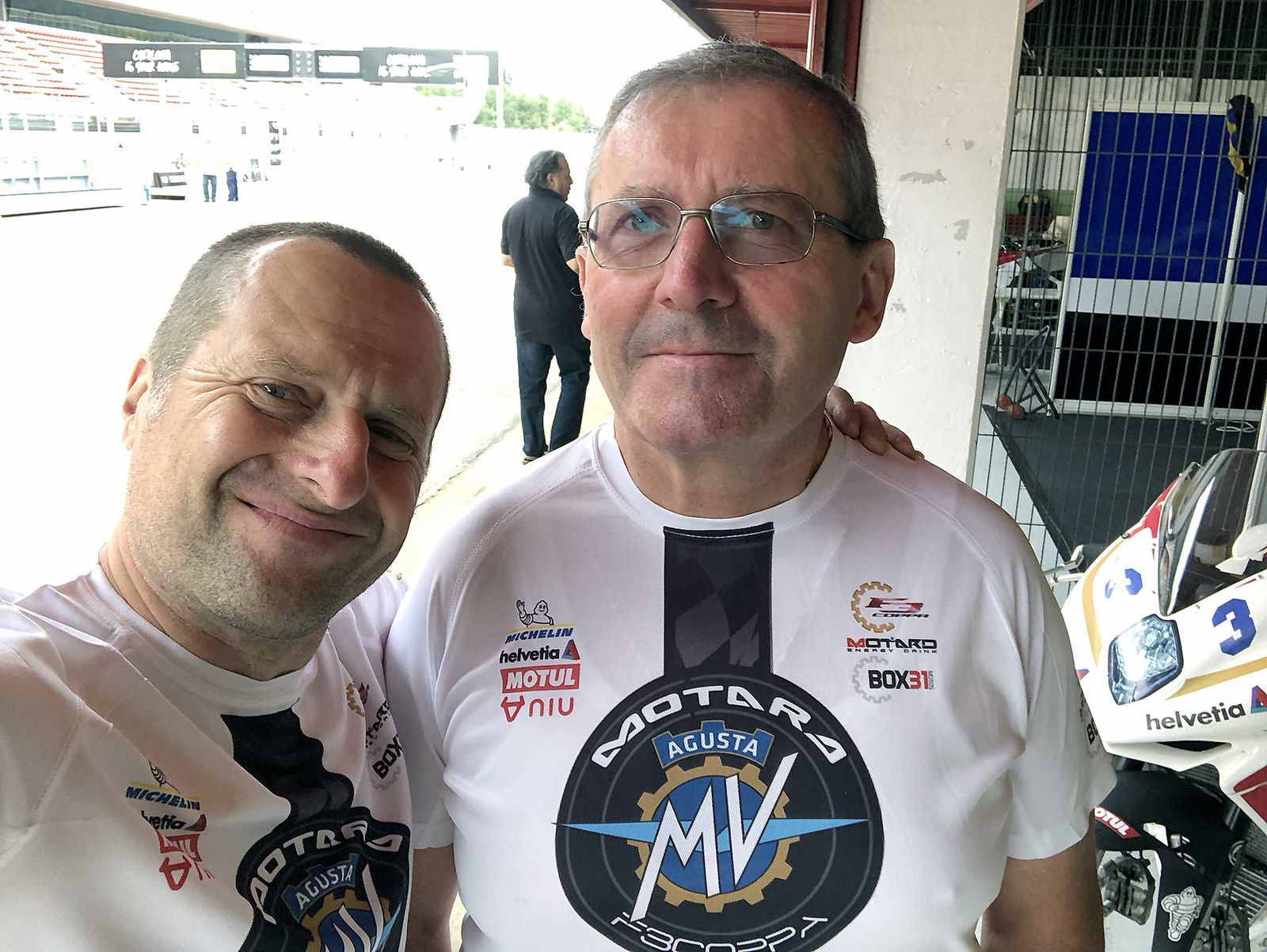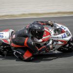 Per le QP2 parto più agguerrito e convinto, gomme nuove, che “spingono” molto di più aiutano. Filo proprio dietro alla Herrera e nel mio giro migliore scendo ancora di un secondo, 1.53.3 la prima fila è mia fino a un minuto dalla fine quando Israel Lopez uno con cui avrò a che fare per tutto il week end mi frega per due decimi. Anche perché io al secondo Run mi rimbambisco e vado piano. Quando esco Max non mi dice niente, ma so già quello che mi vorrebbe dire “che cacchio facevi in pista a consumare benzina e gomme per andare così piano?”In ogni caso siamo soddisfatti, abbiamo sfiorato la prima fila, ogni modifica che abbiamo effettuato all’assetto (solo qualche click e qualche giro di molla in verità) ha dato i risultati sperati e sono confidente per la gara, che però potrebbe esser bagnata. È da una settimana infatti che spulcio le app del meteo per vedere se quel maledetto simbolo del temporale sparisce ma niente da fare. Proprio nelle ore centrali della giornata, quelle della gara le pioggie “consistenti” imperversano. La gara potrebbe essere bagnata.DOMENICA GRIGIAIl cielo è carico di nubi il warm up è fresco ed essendo in coabitazione con la categoria Supersport 600 mi metto alle calcagna di un infiammato con una R6 riesco perfino ad essere veloce (incredibile per me che nel warm up dormo sempre) strappando il terzo tempo assoluto. Sto bene in moto, sono carico. Talmente sicuro che dico a Max di cambiare solo la gomma posteriore (rimetto la Soft e sbaglio perché i più veloci montano l’ultimate che rende almeno un secondino) “tanto l’anteriore è buona”.Ma lui, il tarlo bastardo del pilota insicuro inizia a lavorare dentro di me. Giro per il box e noto che tutti quelli veloci cambiano entrambe le gomme. Resisto, resistoooo. Ma niente. Il tarlo vince.S. “Max per piacere cambiamo anche l’anteriore”.Mi guarda e rideM. “lo sapevo che andava a finire così, sei proprio un pilota”. (detto non proprio in modo elogiativo)Già.La gara finisce per essere una bellissima battaglia tra me e l’ormai amico Israel. Parto bene, nonostante la frizione della F3 non aiuti molto. Va accompagnata poco, altrimenti strappa. Meglio quindi partire tranquilli per evitare di fare il canguro. Alla prima curva sono terzo, la Herrera e Aleix Gonzalez allungano e io cerco di seguirli. Sono veloce ma mi sento meno a mio agio sulla moto rispetto al warm up, è uscito il sole e fa un caldo infernale e la gomma posteriore scivola un po’. Ma mi difendo: 6 giri in terza posizione prima di essere infilato dal solito Israel che mi passa in staccata alla curva 1. Mi accodo lo tengo giriamo forte, più forte che in tutto il week end. Sono più incisivo di lui in almeno un paio di punti della pista, ma nei curvoni non riesco ad aprire altrettanto presto e facciamo un po’ l’elastico.PODIO CENTRATO