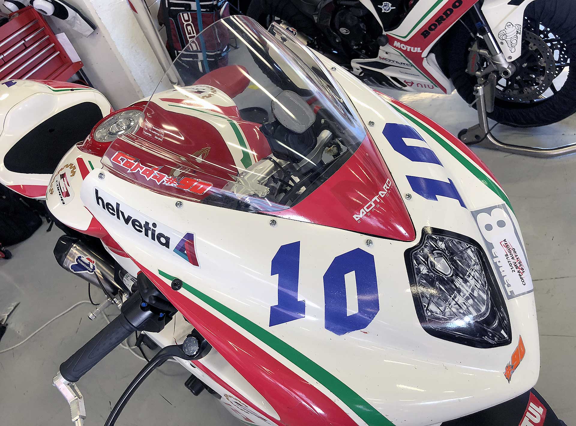 Con un padre ex maratoneta e malato delle prove di resistenza fisica, un fratello alpinista è evidente che nei geni dei Cordara ci deve essere qualcosa di strano. Capita così che l’invito a partecipare come guest alla Coppa F3, il trofeo monomarca dedicato alle MV Agusta F3 675, che si disputa in Spagna, sia un buon pretesto per capire se dopo un po’ di anni di fermo agonistico e la scorsa stagione passata a sviluppare la piccola RC 390 KTM, sono ancora all’altezza di scendere in pista sul serio con una moto più “consistente”. La Coppa F3 mi ha dato lo spunto per farlo e per me è stato un po’ come tornare al passato, a quei bellissimi anni in cui l’Italia pullulava di trofei monomarca -ogni casa ne aveva uno- le 600 erano le moto più usate per correre. Oggi che questa categoria è ridotta al lumicino, vedere che qualcuno ha ancora coraggio di organizzare un monomarca con una 675 (cilindrata voluta anche se MV ha anche l’800 perché con la 675 si possono correre anche gare supersport) mi mette di buon umore.POCA SPESA TANTA RESA