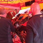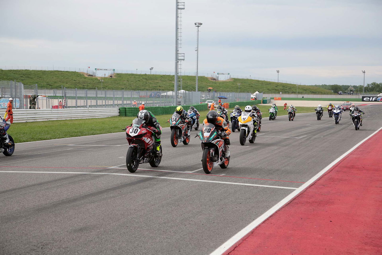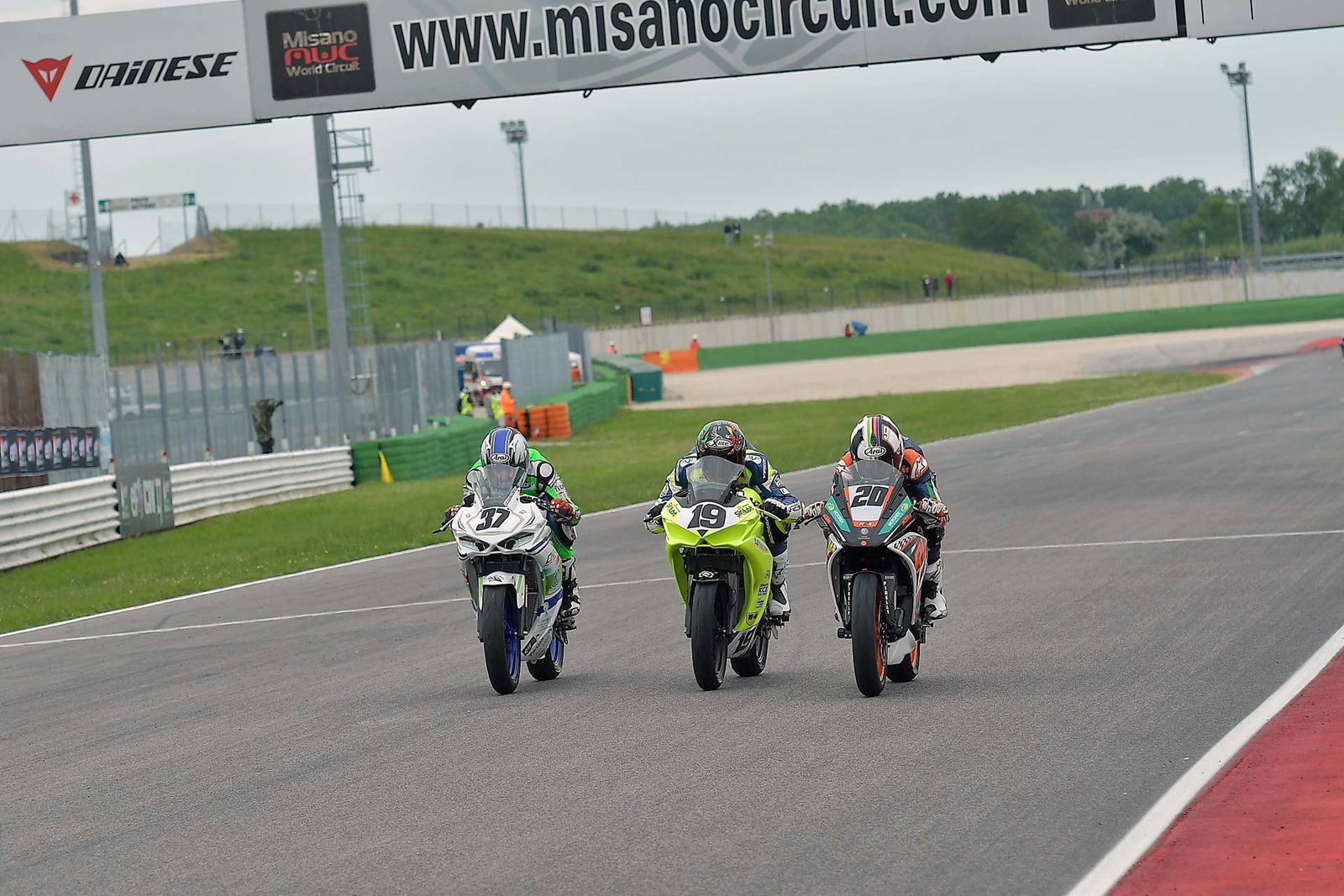 Già, lo stesso entusiasmo di questo qui al mio fianco che mi sta passando in staccata per la ventesima volta dopo che a mia volta l’ho passato per altrettante volte al curvone. Perché questa categoria è così. Riduci la cilindrata, aumenti la bagarre. Come con la Moto3 ci si gioca il tutto per tutto a ogni frenata di ogni curva, di ogni giro. Se ti è riuscita una curva particolarmente bene e credi di andar via, stai tranquillo, le scie riportano tutto alla pari. E alla curva dopo ricominci tutto da capo. Tutto bellissimo per lo spettacolo, ma non è modo migliore per rimettersi in pista dopo qualche anno di inattività. Standing ovation per la Federazione Motociclistica Italiana la prima a credere in questa formula (poi replicata a livello mondiale) che porta in pista moto “economiche”, quelle della patente A2 per intenderci, con una preparazione limitata. In pista trovi Yamaha R3, Kawasaki Ninja 300, Honda CBR500 e KTM RC390 ma non è detto che in futuro non ne arrivino altre. Il campionato è ambìto, gli iscritti pullulano, la griglia è in overbooking e c’è chi dopo le prove ufficiali va a casa perché non si qualifica. Sembra di essere tornati ai tempi della Sport Production.Apprezzabile anche l’idea del CIV con la doppia gara. Si corre il sabato e la domenica, e questo se qualcosa va storto ti concede la possibilità di rifarti subito.CONTINUA A LEGGERE –> VAI A PAGINA 3TEAM RUNNER BIKE IS BACKEccoci qui, quindi, in gara con Max Tresoldi al mio fianco e poi tutti gli altri, Danilo Bonetti, Danilo Tomassoni, Stefano Venturi, Maurizio Alari, Giulio Giudici, Flavio Amigoni. Mi pare di ringiovanire di 10 anni, sono amici ancora prima che meccanici/piloti o colleghi.