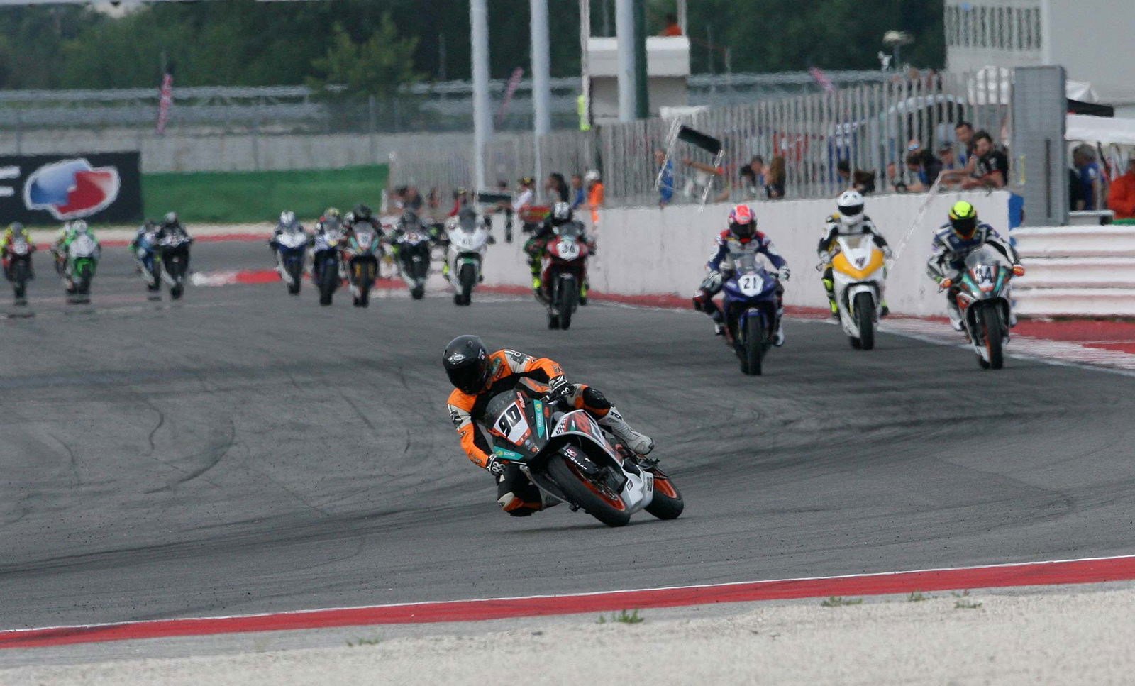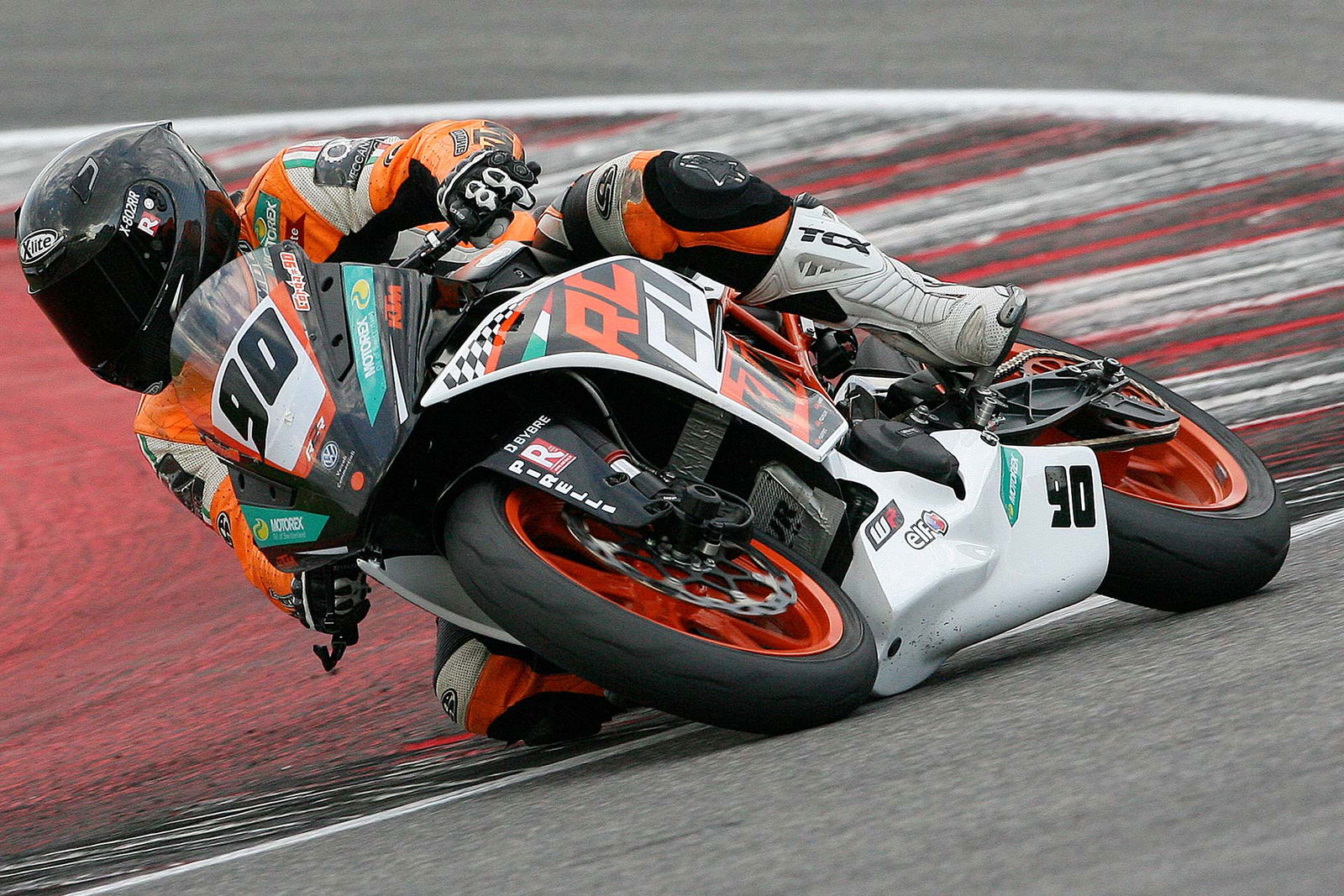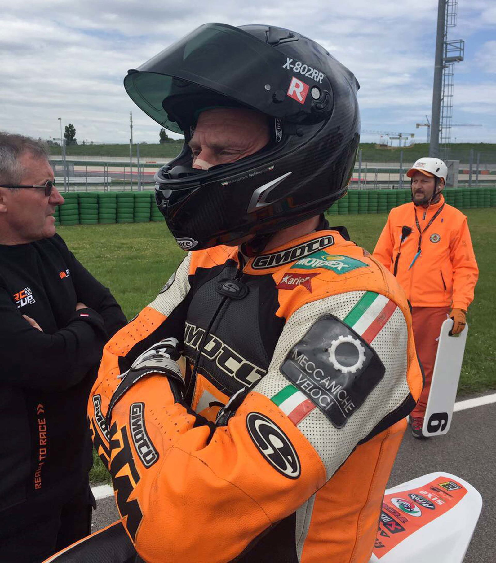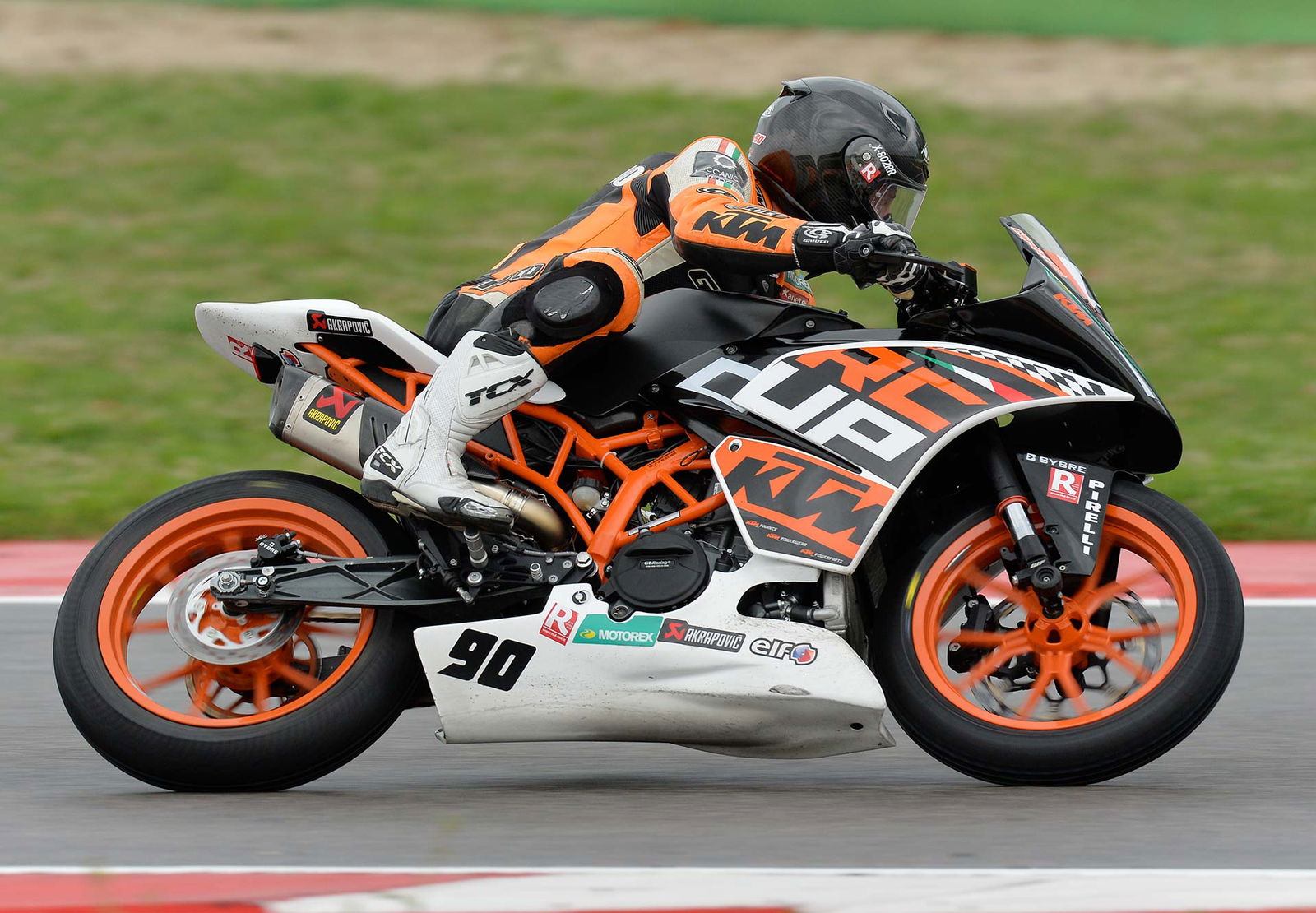 Motori al minimo. Guardo a sinistra, mi rendo conto che se sommo l’età dei due piloti che mi affiancano sulla griglia di partenza il risultato supera di poco la metà dei miei anni. C’è davvero da chiedersi cosa diavolo ci faccio qui io in mezzo a questa masnada di mocciosi dal polso molto (troppo) snodato. In griglia al CIV, nel 2017. Quando ho chiesto di fare la licenza credevo mi concedessero al massimo la carta argento delle FS, invece incredibilmente i medici mi hanno detto che sono molto “fit” ed eccomi qui… Ok ok. Lo so. Avevo promesso che dopo l’esperienza con la BMW ufficiale di Badovini al CIV nel 2012 avrei smesso. Infatti, ho smesso. Da li in poi basta gare, solo test. Nella vita c’è un tempo per tutto, ho pensato…TU CHIAMALE SE VUOI, EMOZIONI…Però… Però “quella roba li” che ti prende nei minuti prima del via, quel misto di adrenalina, concentrazione, pathos che provi solo quando sei, con la frizione in mano, in attesa che si spenga il semaforo non è una cosa che riesci a scrollarti di dosso facilmente. Si, sono ancora qui, in pista, in gara. Sapete com’è: dicono che quando si diventa anziani si ritorna anche un po’ bambini. Quindi ho ricominciato dal basso. Tradotto: 45 cv e 140 kg di una monocilindrica da 375 cc. Già, la griglia è quella della Supersport 300. So già quello a cui starete pensando: “questo si è bevuto il cervello”, “il classico colpo di coda del cinquantenne che vuole ancora sentirsi giovane”. Ma dietro a questa piccola pazzia c’è dell’altro, c’è un progetto, un lavoro di sviluppo. È questo che mi ha convinto a rimettere tuta, casco e licenza nel borsone e prendere la strada per Misano Adriatico. Quando ero giovane avevo tanti sogni: molti li ho realizzati, uno invece, quello tipicamente ingegneristico di poter lavorare allo sviluppo di un prodotto, mi mancava. Beh anche questo in parte lo potrò coronare. In futuro se chi correrà nella SSP300 potrà contare su una KTM RC390 competitiva in piccolissima parte sarà anche frutto del mio lavoro. Questo mi rende particolarmente orgoglioso.CONTINUA A LEGGERE –> VAI A PAGINA 2Perché la RC390? Perché il campionato Supersport 300? I motivi sono vari, questa moto mi ha fatto assaporare il gusto di correre con una piccola cilindrata durante l’evento un po’ pazzo che KTM organizzò all’autodromo di Modena per farci conoscere meglio la RC390 in versione trofeo.UN CAMPIONATO GIOIELLO