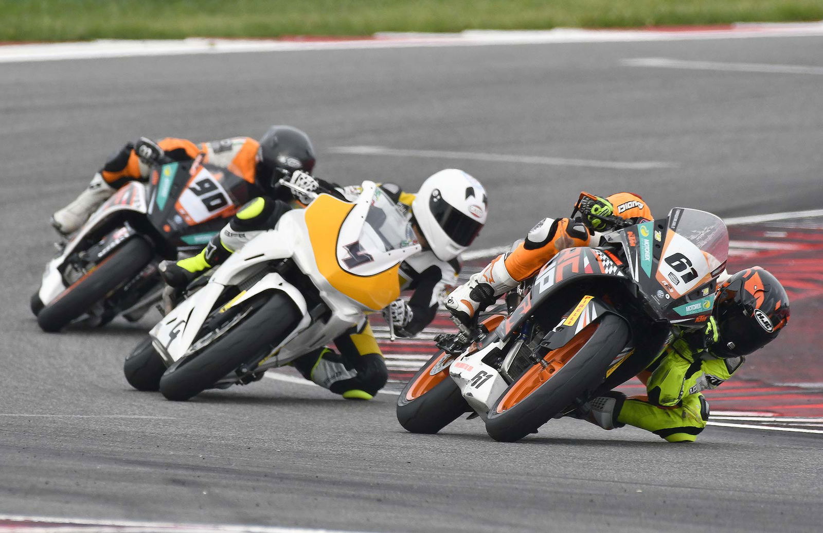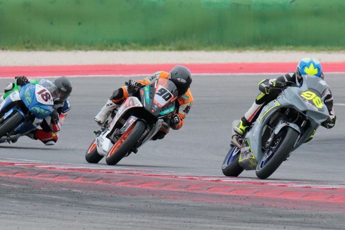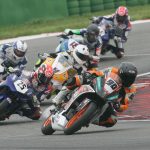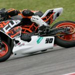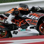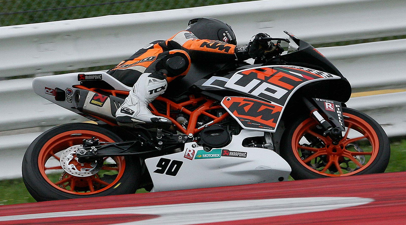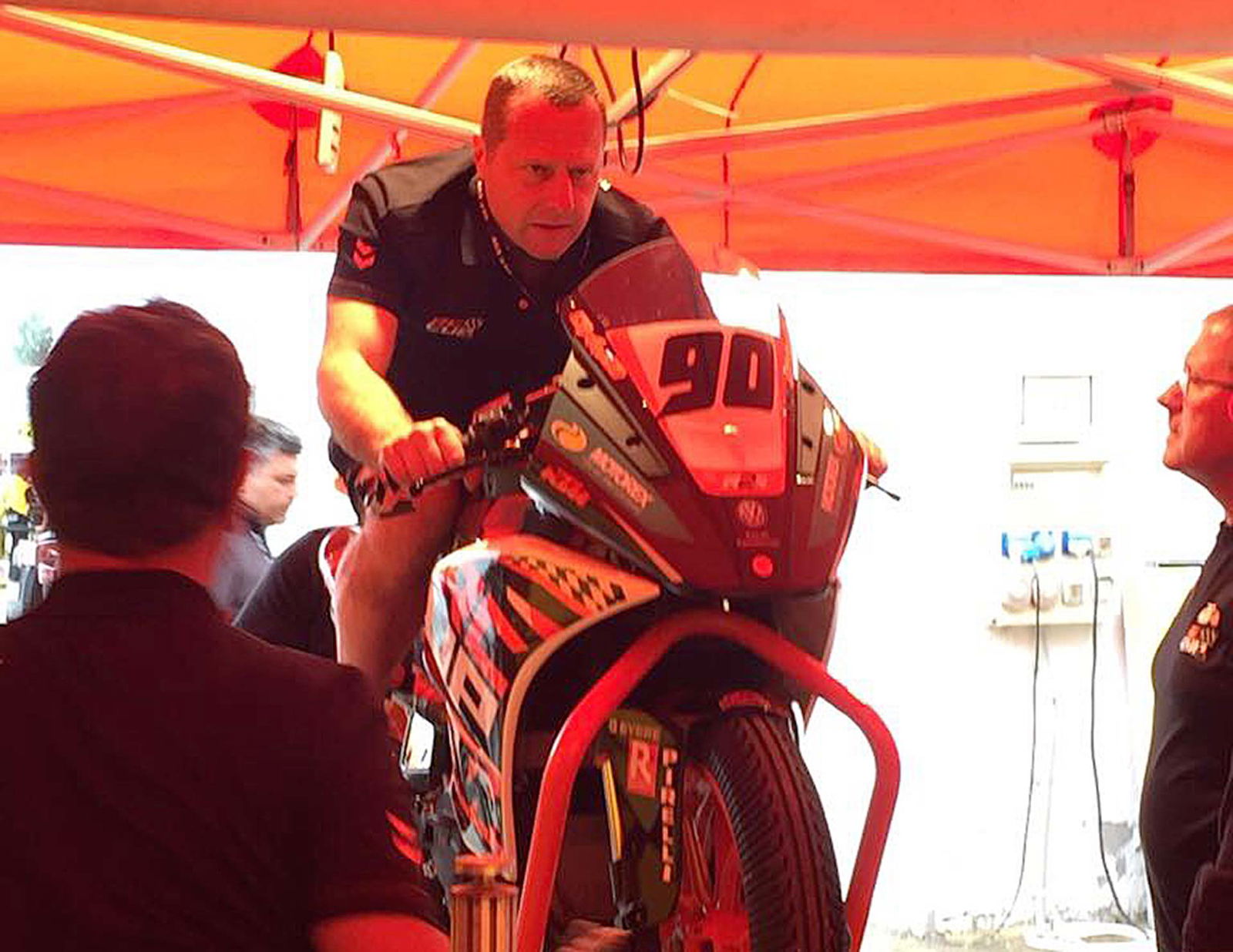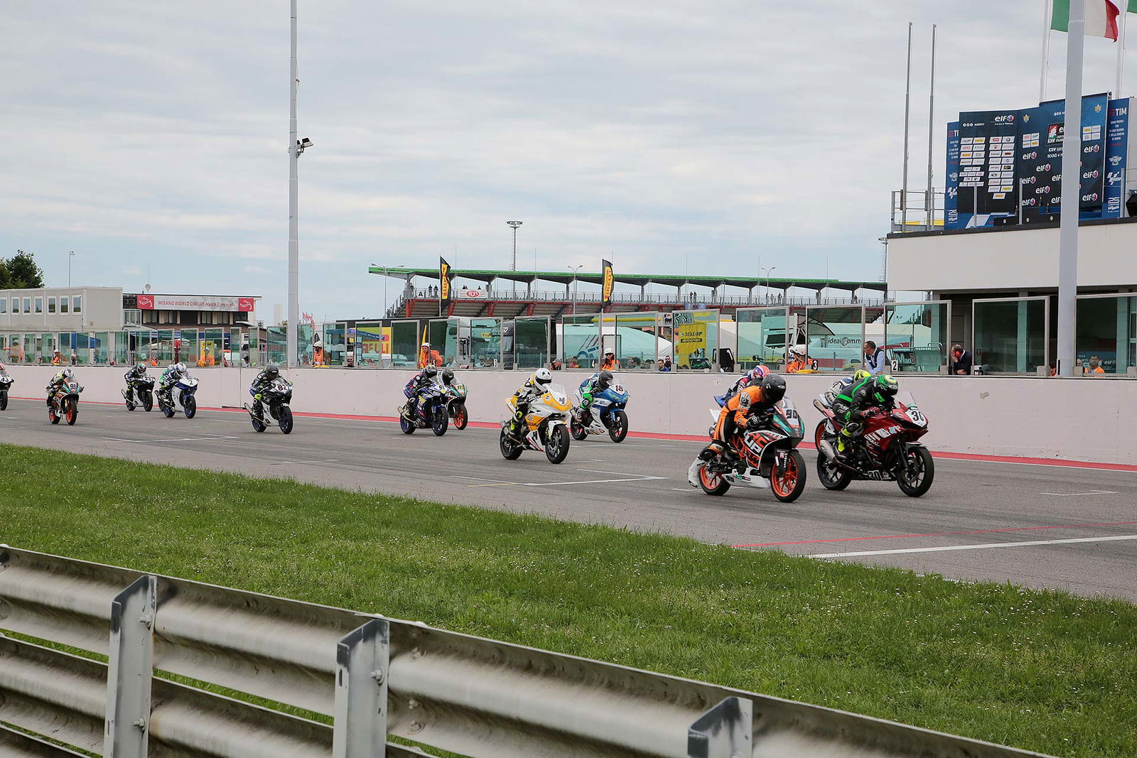 Motori al minimo. Guardo a sinistra, mi rendo conto che se sommo l’età dei due piloti che mi affiancano sulla griglia di partenza il risultato supera di poco la metà dei miei anni. C’è davvero da chiedersi cosa diavolo ci faccio qui io in mezzo a questa masnada di mocciosi dal polso molto (troppo) snodato. In griglia al CIV, nel 2017. Quando ho chiesto di fare la licenza credevo mi concedessero al massimo la carta argento delle FS, invece incredibilmente i medici mi hanno detto che sono molto “fit” ed eccomi qui… Ok ok. Lo so. Avevo promesso che dopo l’esperienza con la BMW ufficiale di Badovini al CIV nel 2012 avrei smesso. Infatti, ho smesso. Da li in poi basta gare, solo test. Nella vita c’è un tempo per tutto, ho pensato…TU CHIAMALE SE VUOI, EMOZIONI…Però… Però “quella roba li” che ti prende nei minuti prima del via, quel misto di adrenalina, concentrazione, pathos che provi solo quando sei, con la frizione in mano, in attesa che si spenga il semaforo non è una cosa che riesci a scrollarti di dosso facilmente. Si, sono ancora qui, in pista, in gara. Sapete com’è: dicono che quando si diventa anziani si ritorna anche un po’ bambini. Quindi ho ricominciato dal basso. Tradotto: 45 cv e 140 kg di una monocilindrica da 375 cc. Già, la griglia è quella della Supersport 300. So già quello a cui starete pensando: “questo si è bevuto il cervello”, “il classico colpo di coda del cinquantenne che vuole ancora sentirsi giovane”. Ma dietro a questa piccola pazzia c’è dell’altro, c’è un progetto, un lavoro di sviluppo. È questo che mi ha convinto a rimettere tuta, casco e licenza nel borsone e prendere la strada per Misano Adriatico. Quando ero giovane avevo tanti sogni: molti li ho realizzati, uno invece, quello tipicamente ingegneristico di poter lavorare allo sviluppo di un prodotto, mi mancava. Beh anche questo in parte lo potrò coronare. In futuro se chi correrà nella SSP300 potrà contare su una KTM RC390 competitiva in piccolissima parte sarà anche frutto del mio lavoro. Questo mi rende particolarmente orgoglioso.CONTINUA A LEGGERE –> VAI A PAGINA 2Perché la RC390? Perché il campionato Supersport 300? I motivi sono vari, questa moto mi ha fatto assaporare il gusto di correre con una piccola cilindrata durante l’evento un po’ pazzo che KTM organizzò all’autodromo di Modena per farci conoscere meglio la RC390 in versione trofeo.UN CAMPIONATO GIOIELLO