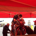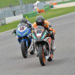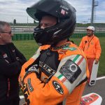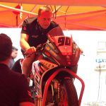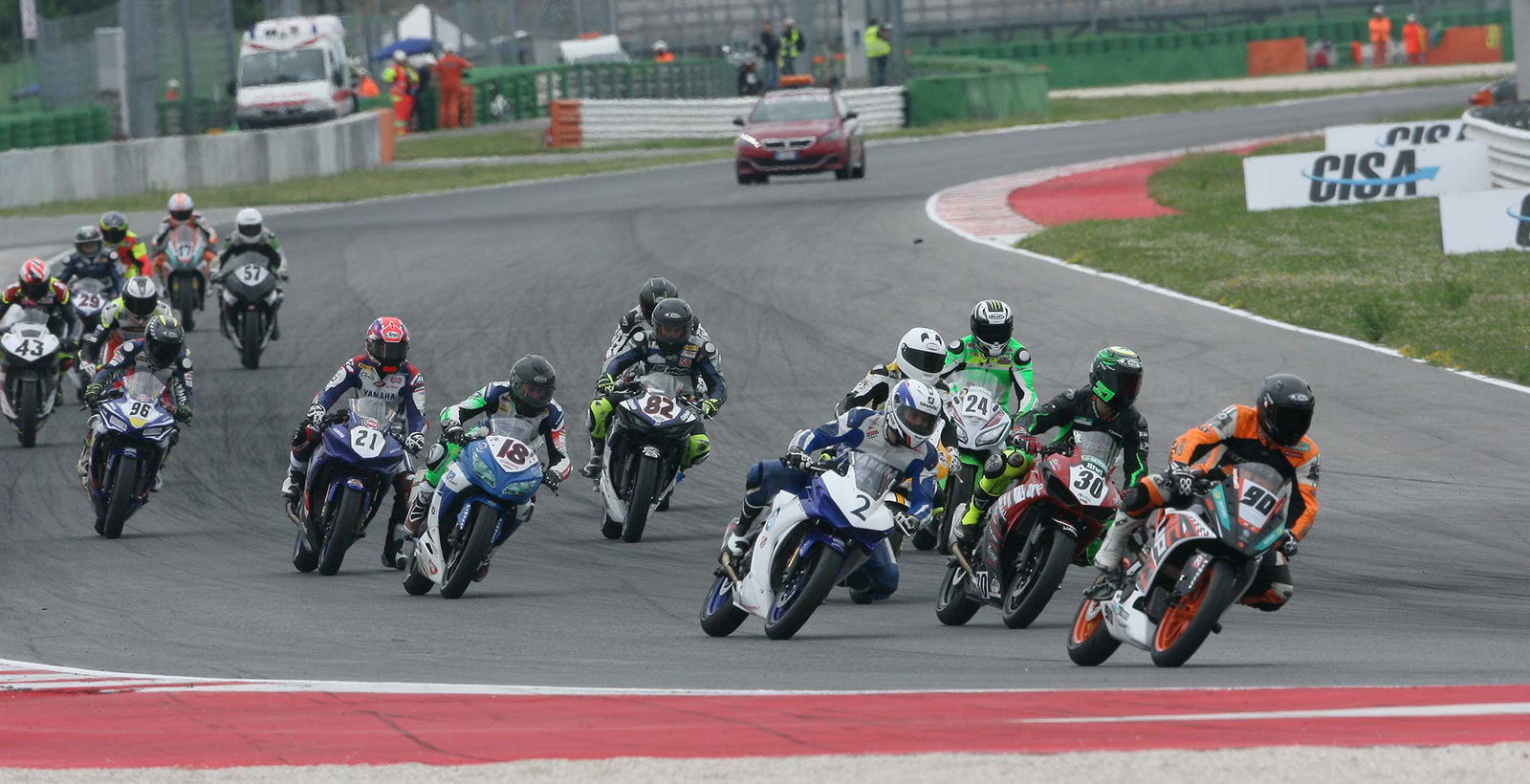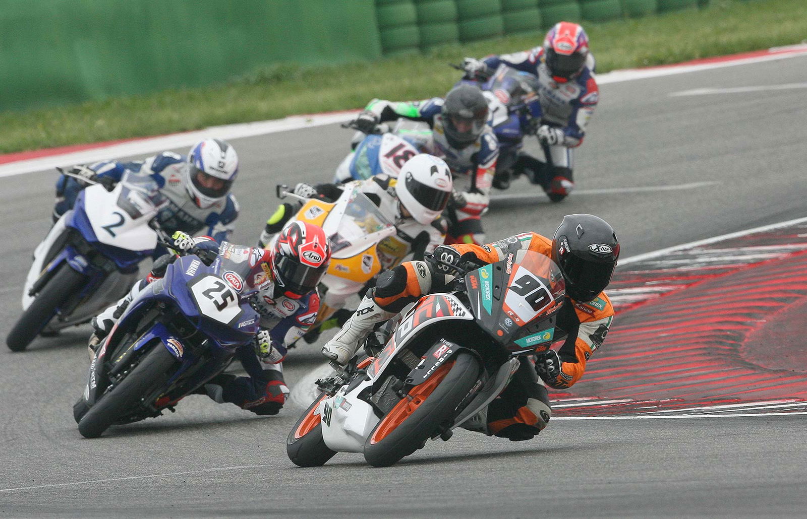 Stesso copione in gara due dove la bagarre assume toni epici stile Moto3. I primi vanno, imprendibili, ma dal decimo al diciottesimo si crea un mucchio selvaggio che cambia continuamente conformazione come quei banchi di pesci che si alleano per spaventare i predatori. Ogni curva puoi essere primo come ultimo del gruppo, oppure puoi essere nella ghiaia. L’adrenalina che provi a essere qui in mezzo e la concentrazione che devi tenere non hanno uguali nemmeno quando corri con le 1.000. Perché in quel caso di linea ne hai una, qui invece vai “a braccio” puoi inventare, passare all’interno, all’esterno, ovunque. Davanti volano, sfortuna nera per Omar che in Gara1 non riesce a partire a causa della rottura dell’astina del cambio difettosa che lo lascia frustrato in pit lane. Ma in gara due il baby talento del Team Runner Bike dà vita a una battaglia con il gruppo dei primi che perderà solo per 8 millesimi arrivando secondo.Quindicesimo posto per il sottoscritto in gara 1 e diciasettesimo in gara 2, girando come in prova nonostante la pista umida e riducendo il distacco nel tempo sul giro a 3 secondi e spicci. E’ sempre una vita, ma le orecchie sono un po’ meno basse e la dieta forzata è già iniziata. Ho già voglia di andare al Mugello.Chiudo rivolgendo un pensiero a Simone Mazzola, vittima di un brutto incidente nelle prove libere di venerdì, e a tutta la sua famiglia. Il nostro bellissimo sport sa essere anche tremendamente crudele. Forza Simone, siamo tutti con te!!