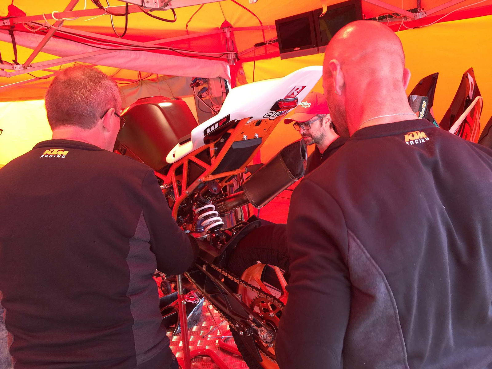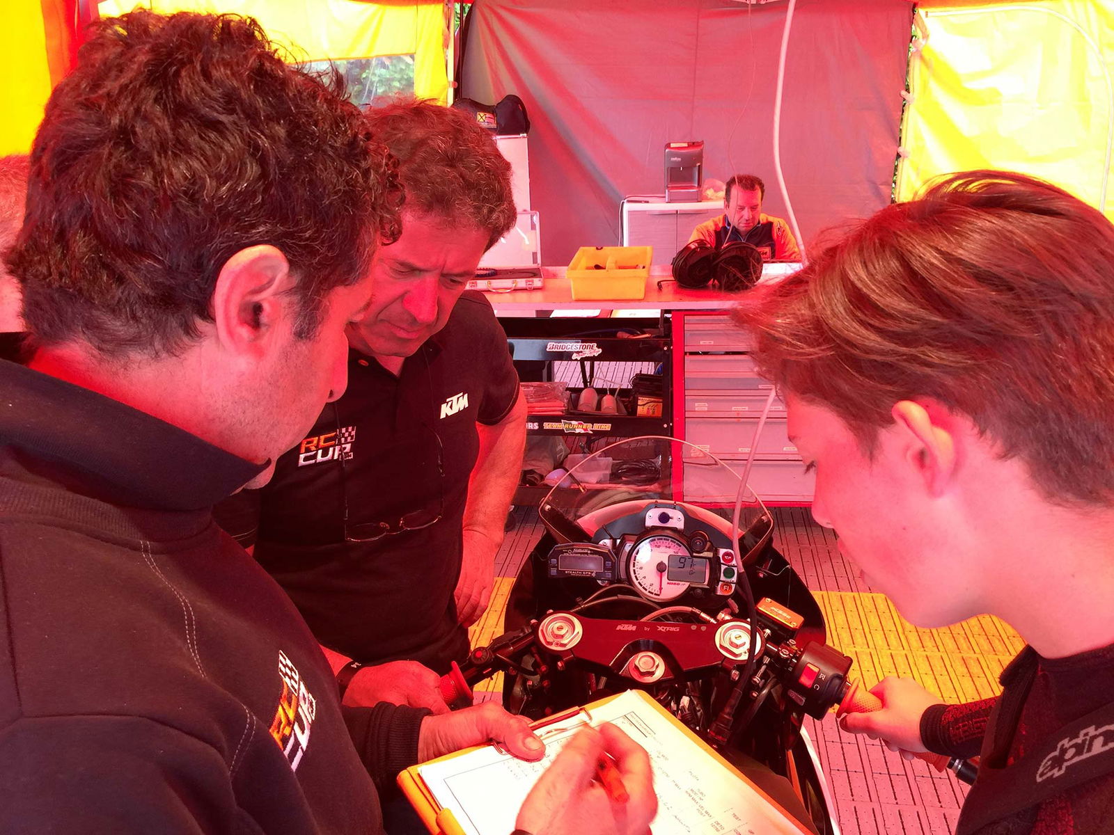 L’altro motivo è che questo campionato ancora agli albori (il mondiale è partito quest’anno) è potenzialmente una bomba perché con le stesse moto e gli stessi regolamenti puoi correre in tutto il mondo: dall’Italia alla Germania passando per Francia, USA (dove già si corre) per finire nei Paesi emergenti come Brasile, Tailandia eccetera. Le piccole cilindrate poi sono quelle giuste per forgiare i piloti; provate a chiedere ai vari Valentino Rossi, Andrea Dovizioso e compagnia se ricordano le battaglie con le loro 125 derivate dalla serie… in quei campionati si creavano i talenti e oggi che le 125 2T non esistono più le 300 4T possono prenderne il posto.E poi mi è sempre piaciuta moltissimo l’idea di correre spendendo il meno possibile. Le moto costano più o meno 6.000 euro, con altrettanti soldi le prepari per la pista, non mangiano gomme come patatine, non consumano ettolitri di benzina. Divertono e non costano e se vuoi andarci forte sul serio… beh, provateci.Il progetto, quindi, è quello portare avanti lo sviluppo di un kit che renda la KTM RC390 una moto pronta per correre e possibilmente competitiva nei campionati che si corrono in tutto il mondo, mondiale compreso. Non so voi cosa avreste fatto, io avendo capito l’opportunità e adorando testare per sviluppare, ho rimesso in piedi la vecchia squadra (che in realtà non si è mai sciolta continuando a lavorare sugli autodromi italiani) e sono partito con l’entusiasmo di un ragazzino.ENTUSIASMO, ANCHE MENO