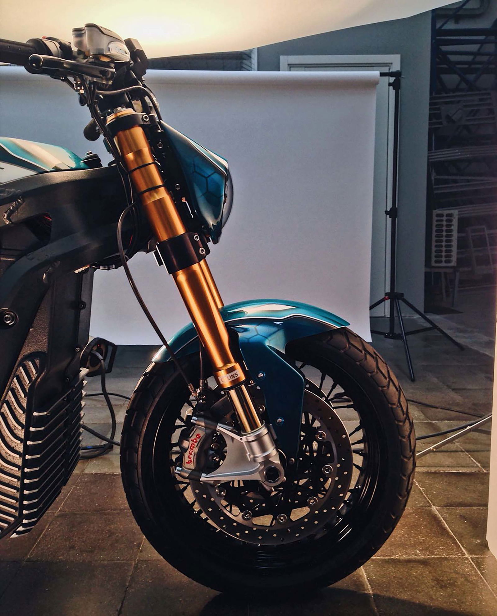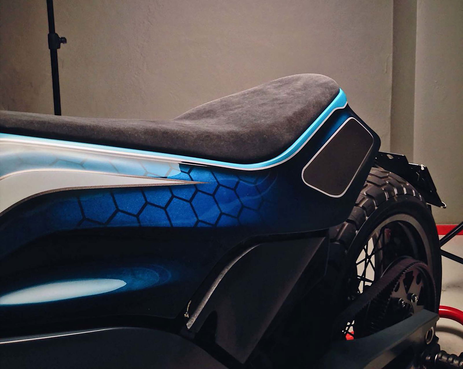 Tra le tante special con motore a scoppio, esposte alla “The Reunion” dell’Autodromo di Monza, c’era anche una anteprima assoluta, per di più elettrica. Si chiama “Lacama for The Reunion” ed è stata ideata da una start-up tutta italiana, Italian Volt. Lo stile riprende quello delle cosiddette “tracker”, le moto utilizzate per la guida di traverso: gomme con tassello leggero e masse spostate sul retrotreno.