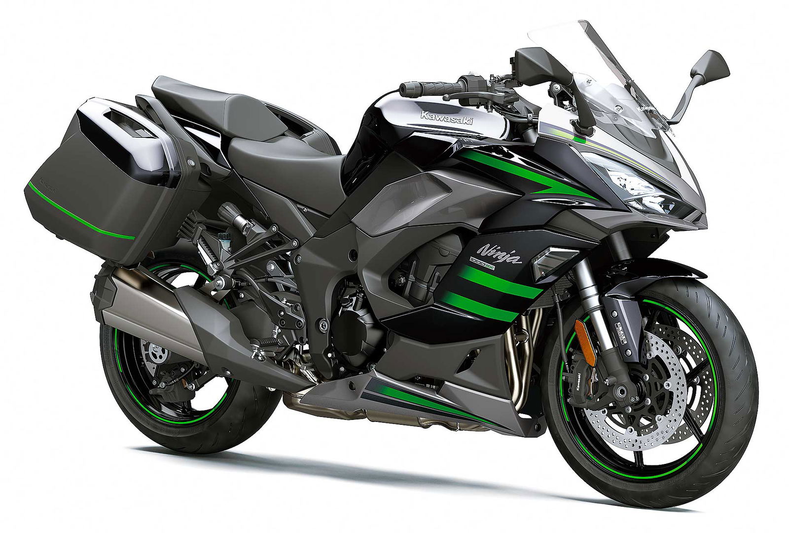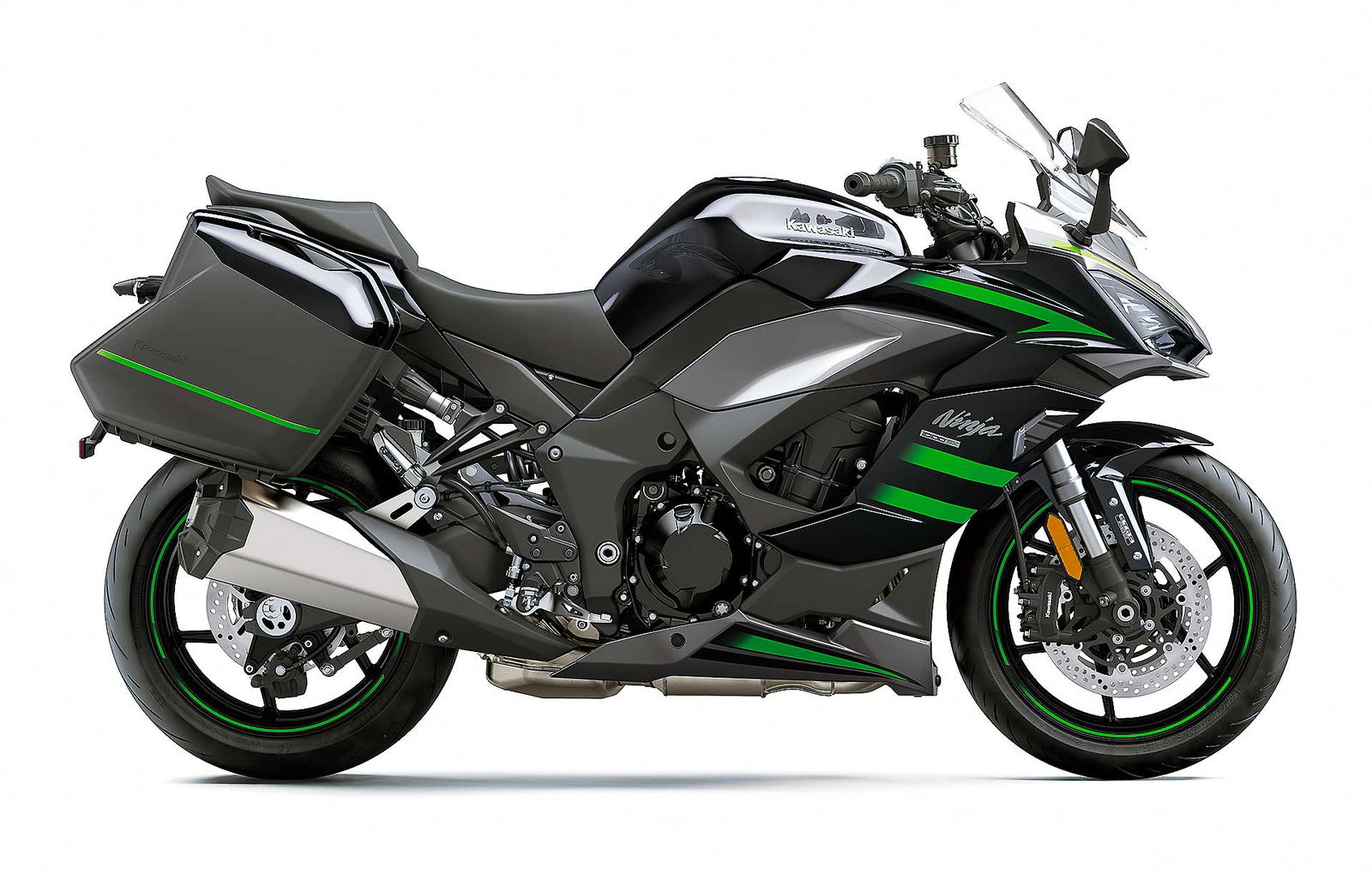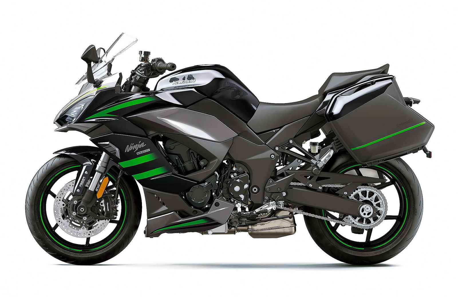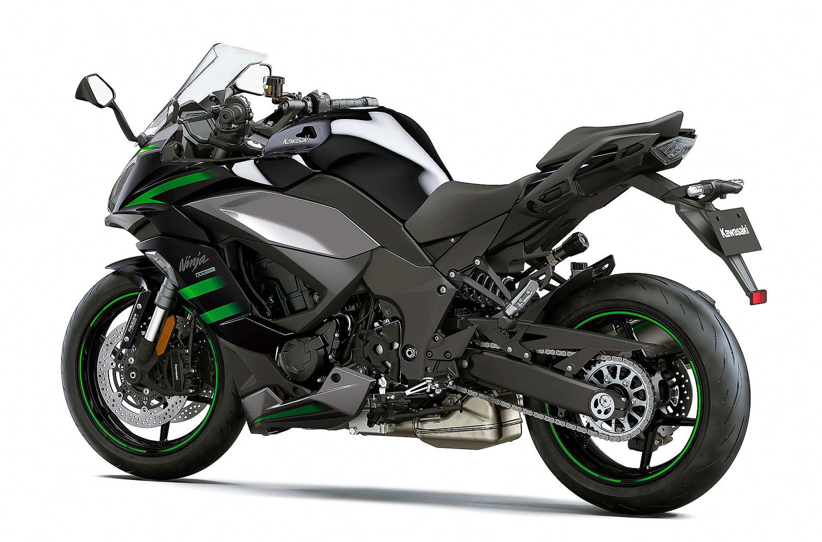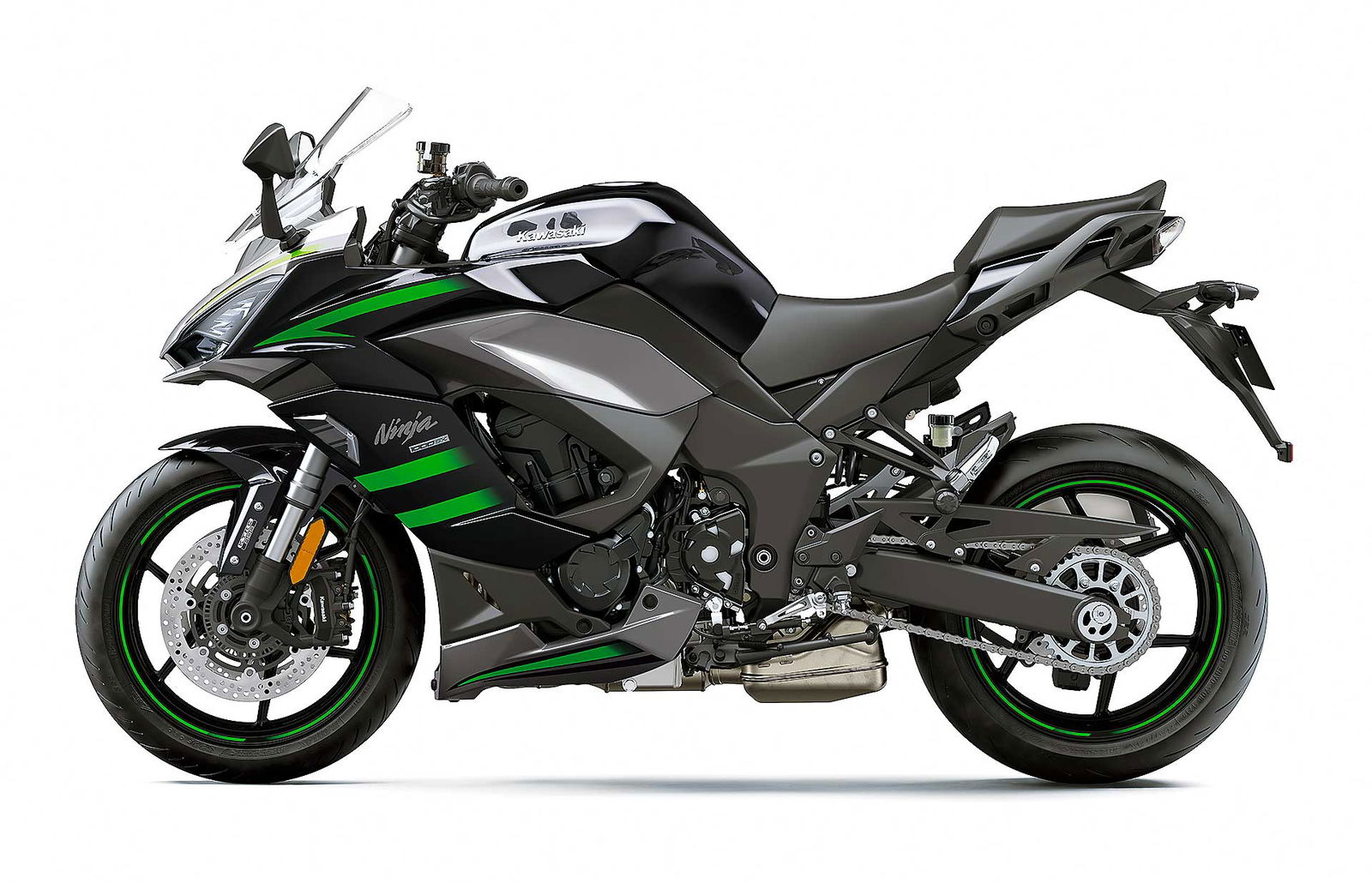 Detto delle nuove tarature delle sospensioni, per la Ninja 1000SX la forcella a steli rovesciati è confermata, così come il forcellone posteriore Horizontal Back-link. Di nuovo ci sono però le gomme Bridgestone Battlex Hypersport S22, progettate per una maggiore agilità nei cambi di direzione e un grip più elevato sia sull’asciutto sia sul bagnato, rispetto alle gomme di primo equipaggiamento della Z1000SX.