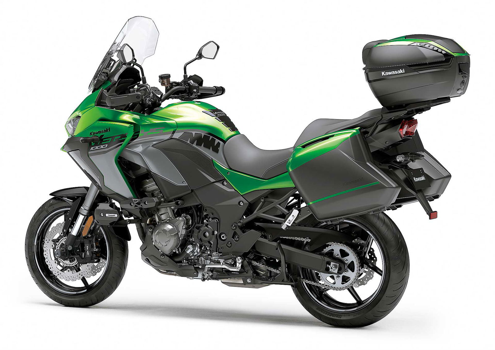 Il percorso evolutivo della Kawasaki Versys 1000 è quanto meno curioso: ha debuttato come crossover per poi spostarsi verso il mondo del granturismo. Non è cambiata la sua missione: affrontare viaggi anche impegnativi offrendo comfort e gusto – la ciclistica è realmente azzeccata -, anche sulla versione 2019, che si carica di tecnologia.PIÙ ELETTRONICAIn cosa cambia la versione 2019? Motore, ciclistica e dotazione. Se il 4 cilindri da 1.043 cc è rimasto invariato nella sostanza, cambia il “contorno”, partendo dall’acceleratore elettronico Ride by Wire, che ha consentito di adottare di serie il Cruise Control. Debutta la piattaforma inerziale IMU per gestire meglio diverse situazioni di guida, oltre alle cornering lights nella neonata versione SE. A proposito, è proprio la SE a essere la Versys più completa di sempre, con un equipaggiamento sontuoso.