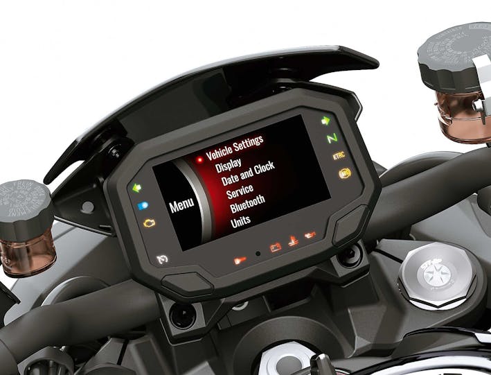 La battaglia delle Hypernaked trova quindi una nuova protagonista assoluta nella nuda Kawasaki che non si fa mancare nulla anche dal punto di vista della dotazione. Brembo firma le pinze, Showa le sospensioni (la forcella è una SFF-BP Separate Function Fork Big Piston) e l’elettronica è da prima della classe con la piattaforma inerziale IMU a 6 assi, che sovrintende controllo di trazione, anti wheeling e cornering ABS (che Kawasaki ha ribattezzato KEMCS). Non mancano nemmeno Cruise Control, Launch Control e quickshifter bidirezionale, mentre il cruscotto TFT gestisce i tre Riding Mode (Sport, Road, Rain) e si può connettere via Bluetooth allo smartphone.CHE NUMERI AVRÀ Peso di 239 kg in ordine di marcia e un interasse non esageratamente lungo (1445 mm) raccontano di una moto relativamente compatta con una sella piazzata a 830 mm da terra. In Italia il prezzo parte da 17.590 euro. La moto è omologata Euro4.