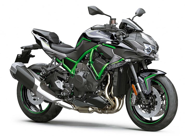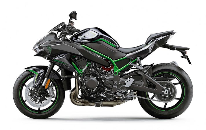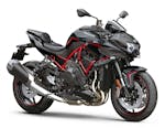 Kawasaki sta quindi lentamente allargando la gamma delle sue moto “Supercharged”. Ovvio che la Z  condivida la base tecnica con le altre H2 (Ninja ed Ninja SX); una base che ha come cuore il quattro cilindri in linea da 998 cc e può contare su un telaio tubolare in acciaio, che non si può considerare un traliccio “tradizionale” visto l’andamento del tutto particolare, diverso comunque anche da quello dalle altre due H2. Se le Ninja H2 e Ninja H2 SX spiccano per il monobraccio, la naked invece sfrutta un più prosaico forcellone “tradizionale”.DOTAZIONE La battaglia delle Hypernaked trova quindi una nuova protagonista assoluta nella nuda Kawasaki che non si fa mancare nulla anche dal punto di vista della dotazione. Brembo firma le pinze, Showa le sospensioni (la forcella è una SFF-BP Separate Function Fork Big Piston) e l’elettronica è da prima della classe con la piattaforma inerziale IMU a 6 assi, che sovrintende controllo di trazione, anti wheeling e cornering ABS (che Kawasaki ha ribattezzato KEMCS). Non mancano nemmeno Cruise Control, Launch Control e quickshifter bidirezionale, mentre il cruscotto TFT gestisce i tre Riding Mode (Sport, Road, Rain) e si può connettere via Bluetooth allo smartphone.CHE NUMERI AVRÀ