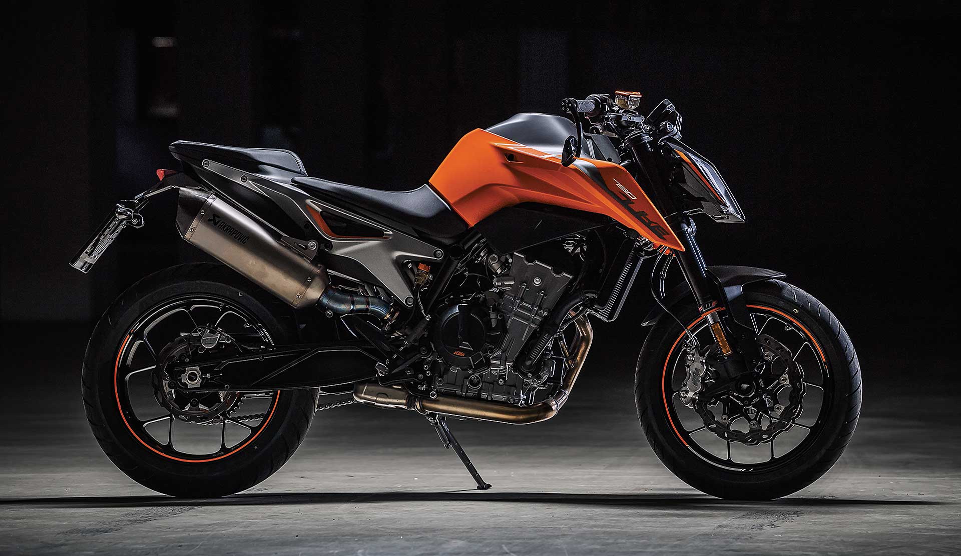 L’arrivo del prototipo della KTM 790 Duke lo scorso anno aveva scoperto le carte. KTM stava lavorando a un motore bicilindrico in linea, con cilindrata attorno agli 800 cc, da cui creare una nuova “piattaforma”. Motore fondamentale per la Casa di Mattighofen questo, perché chiude il buco tra il monocilindrico LC4 della Duke 690 e il LC8 da 1301 cc che equipaggia tutta la gamma “grossa” delle KTM. Fondamentale perché attorno al range di cilindrata 800/1000 sta nascendo il “cuore” del mercato delle moto.NON RESTERÀ SOLAPiattaforma, dicevamo: conoscendo KTM è scontato pensare che da questo motore nasceranno molti modelli (il prossimo lo vedete direttamente sullo stand KTM, ed è l’Adventure), ma a Mattighofen hanno voluto iniziare con una naked, tipologia di moto a cui sono molto affezionati. Andiamo nel dettaglio. Il Twin KTM ha cilindrata di 799 cc, l’ormai onnipresente fasatura a 270° per offrire il “pulse”, ma non le vibrazioni annullate da due contralberi di bilanciamento. La testa con bilancieri a dito è ormai classica per KTM, che utilizza questa raffinata soluzione anche sulla piccola 125. Il risultato sono 105 cv a 9000 giri con una coppia (consistente) di 86 Nm a 8.000 giri, potenza gestita dal cambio a sei marce con Quickshifter + (up & down) e dalla frizione assistita con antisaltellamento PASC.