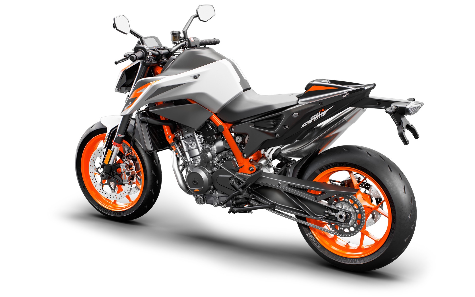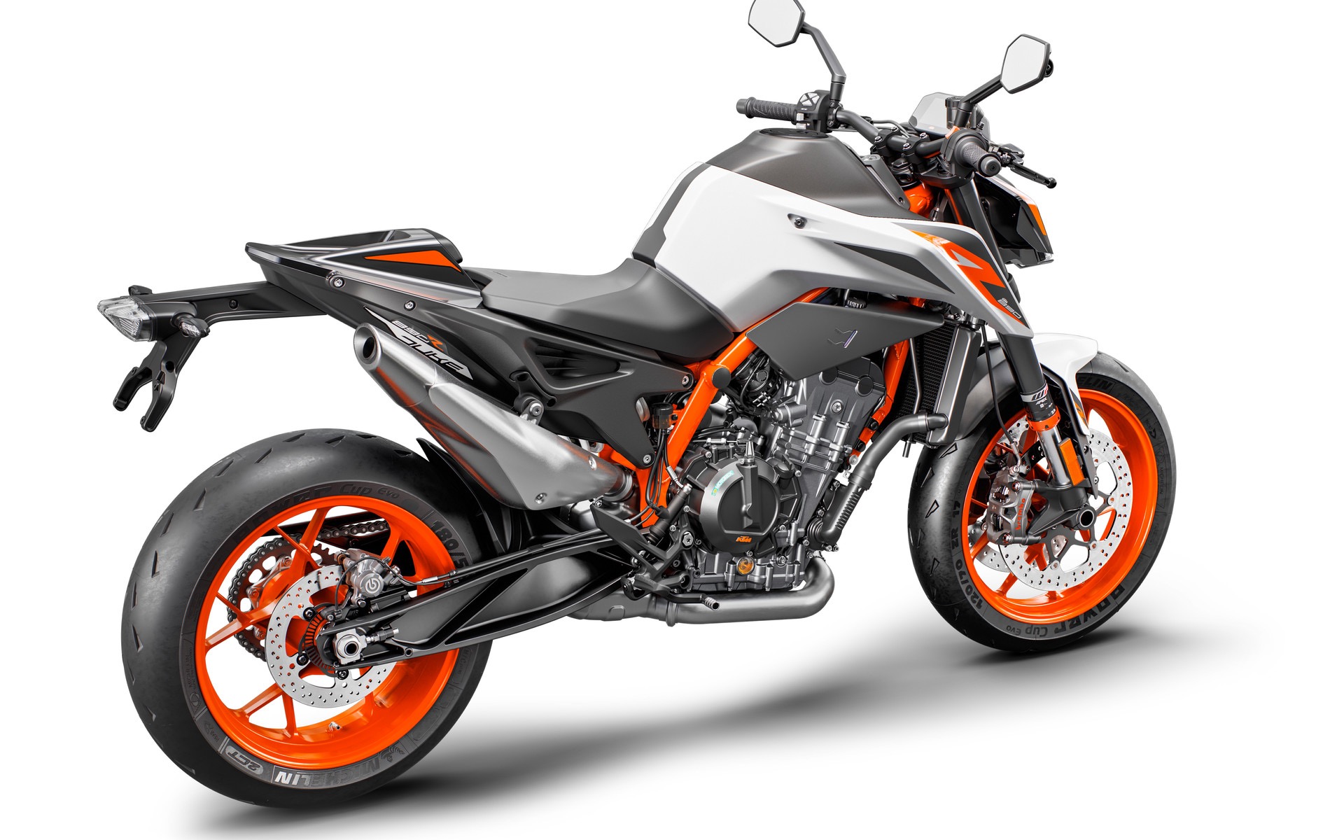 Si perché con la cilindrata cresce anche la dotazione con nuove sospensioni WP Apex completamente regolabili, figlie delle conoscenze maturate in MotoGP e freni che utilizzano dischi più grandi (320 mm) e le pinze Brembo Stylema comandate da una pompa radiale Brembo MCS. Insomma con la Duke 890 R KTM torna alle antiche (e buone) abitudini di accoppiarsi a partner eccellenti. E la cosa non può che farci piacere. La lista di cose interessanti prosegue con l’adozione di una piattaforma inerziale a 6 assi che sovrintende al controllo di trazione più evoluto e all’ABS Cornering, e a una posizione di guida più sportiva con sella più alta (834 mm) e manubrio più basso. La ciliegina sulla torta? Il peso cala di 3,3 kg rispetto alla 790 Duke, ora siamo a 166 kg a secco.