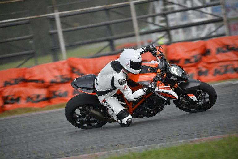 Guida anglosassone: sul lato sinistro della carreggiata. Condizione di parziale difficoltà se non fosse che la corsia d’emergenza è percorsa in entrambi i sensi da ciclomotori e bici. Dunque occhi spalancati e cervello sempre collegato per non incappare nei classici quanto pericolosi errori da turista: rotonde contromano e svolte osservando dalla parte sbagliata il traffico che sopraggiunge. Ma c’è Jeremy Mc Williams che fa da chioccia che ci accompagna in questo viaggio dalla piccola alla maxi cilindrata.L’epilogo dell’esperienza Duke ha il suo culmine con la Super Duke 1290. Rientro in circuito e una intensa, unica e purtroppo singola, sessione in sella al mostro. Un’esperienza sapida di soli 15 minuti prima dell’arrivo dei Monsoni e lo scatenarsi di un temporale estivo.Beast di nome e di fatto. Trionfo di accessori. Trionfo di prestazioni con il manubrio alto. Questa Superduke è mistica. Il cambio marcia da terza a quarta spara il muso dritto al cielo: benedetta elettronica che tira giù la ruota anteriore a terra. Più di 190 cavalli domabili grazie a un traction control che non castra la potenza ma ne mussa gli spigoli: quando lavora non ti senti tirare indietro dal taglio di corrente ma ti accorgi che c’è perché la lucina gialla brilla nel cruscotto. E poi frena anche con l’ABS, pure in pista, (merita di essere provato) e infine volta. Sì proprio così. Baricentro alto il giusto e manubrio largo: la leva giusta per arrivare a toccare gli slider e il punto di corda, proprio lì sul cordolo facendo lavorare il pensiero e poco più. Un turno non basta non sazia. Torneremo presto a parlare di lei e non solo…