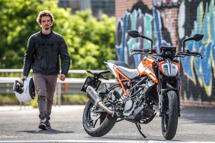 Amatissma, richiestissima. Al nostro Ride 125 eXperience day era una delle star. La piccola best seller 125 Duke diventa ora un sogno possibile grazie al finanziamento KTM Start Now. Per averla basta versare un anticipo di 130 euro, cui seguiranno 35 rate mensili di 90 euro e una maxirata finale di 2.142,75 euro. Diverse le alternative al termine del periodo di rateizzazione: il cliente sarà libero di restituire la moto oppure tenerla versando l’importo del Valore Futuro Garantito, chiedere un nuovo finanziamento o, infine, sostituirla con un altro modello KTM.