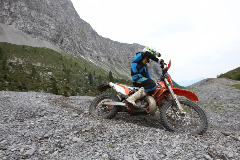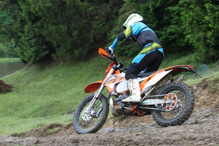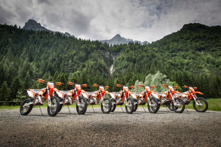 KTM è leader di mercato e campione del mondo in due categorie su tre dell’enduro. Con queste premesse sarebbe facile immaginare che il marchio austriaco possa adagiarsi sugli allori e godere dei successi raggiunti. Invece a Mattighofen, dove nascono le moto arancioni, non ci si rilassa mai, tutti viaggiano a gas spalancato. E così succede che anche per il 2016 il mondo EXC, sigla che definisce la famiglia dei modelli da enduro professionale, riceve piccole evoluzioni tecniche che garantiscono un evidente miglioramento nella guida.LIVELa gamma composta da otto modelli parte dalla 125 EXC due tempi per arrivare alla mostruosa 500 EXC destinata ai Maciste del Nord Europa. Nel mezzo duecento, duecentocinquanta due e quattro tempi, 300 e infine 350 e 450 quattro tempi. Insomma, pescando nel cesto delle meraviglie di sicuro è possibile trovare il modello che più si addice al proprio stile di guida e al livello di allenamento.KTMEnduroExc2016001Il 2016 porta con sé poche modifiche, concentrate prevalentemente sull’avantreno. La forcella riceve una nuova regolazione dell’idraulica che permette di avere più sostegno e minor affondamento; c’è un nuovo piedino ma soprattutto un ridotto offset che garantisce maggiore agilità, oltre al perno ruota che passa da 26 a 22 mm di diametro. Dalla serie speciale Six Days arrivano le piastre forcella lavorate CNC in luogo delle classiche forgiate e il nuovo setting del PDS, l’ammortizzatore senza leveraggio progressivo. Con queste modifiche la ciclistica, completata dal telaio in tubi d’acciaio al cromo molibdeno, risulta ben accordata e in grado di adattarsi meglio alle asperità del terreno di gara.Estetica rinnovata ma non troppo. Nuove grafiche vestono i convogliatori dell’aria e le fiancatine; i parasteli della forcella sono “aperti” ed è quindi più facile fare manutenzione e pulizia nella zona di contatto tra i paraolio e gli steli stessi. Infine arrivano dettagli racing come il paramotore, la sella con il nuovo logo SDV, la corona arancione e non ultima una nuova strumentazione e un impianto illuminante a norma con un vero anabbagliante!Prezzi125 EXC 7.700 euro; 200 EXC 8.250 euro; 250 EXC-E 8.600 euro; 300 EXC-E 8.890 euro.250 EXC-F 9.300 euro; 350 EXC 9.300 euro; 450 EXC 9.950 euro; 500 EXC 10.150 euro.Le versioni Six Days costano mediamente 700 euro in più di quelle standard 2016.RIDEBerghem Land of Enduro. Ardesio (Bergamo), casa natale di Arnaldo Nicoli, è il luogo scelto per scoprire e provare le novità 2016. Strade e sentieri che negli anni di militanza nel Mondiale proprio il Vichingo Nicoli ha esplorato nei suoi estenuanti allenamenti e che conosce meglio delle sue tasche. Sarà proprio Arnaldo a guidare il gruppo.KTMEnduroExc2016043Dimmi che KTM guidi e ti dirò chi sei! Al cospetto dell’intera gamma è naturale che ciascuno scelga il modello che a sensazione più gli si addice. Negli attimi che precedono la prova durante la presentazione nazionale si capisce chi ha più esperienza, fisico e consapevolezza dei propri limiti.E allora si parte. Punto deciso a una vecchia conoscenza, la 350, il giusto compromesso per chi ha muscoli guizzanti e allenati e può farla correre veloce come la 450, ma adatta anche a chi dopo due facili mulattiere è in debito di ossigeno e si affida alla coppia e alla trazione del tassello guidato dal PDS per arrivare integro al ristoro.350 EXC. 107 chili di enduro pronto gara con scarico in alluminio di serie e impianto frenante con dischi da 260 mm davanti e 220 dietro condivisi dall’intera gamma. La 350 conferma la filosofia della cilindrata di mezzo proposta da KTM perché non mostra il fianco in nessuna condizione. Cavalli e coppia ce ne sono da sfibrare i muscoli delle braccia e della schiena e allo stesso tempo le caratteristiche tecniche non affaticano girando stretti al paletto. Il pistone da 88 mm di diametro non “pistona” e non spinge avanti in staccata quando si cerca il punto di svolta e i 4 kg in meno rispetto alla 450 valgono come acqua fresca nel deserto quando in piedi sulle pedane si cerca la miglior traiettoria facendo muovere la moto tra le gambe.KTMEnduroExc2016083L’agilità è il cardine e l’esito del rinnovamento della gamma 2016. Le migliorie alla forcella, condivise tra tutti i modelli, si sentono soprattutto sulle quattro tempi, le F four stroke. Se in passato l’approccio all’ostacolo con i motori a quattro valvole consigliava di affrontare di petto la difficoltà con il gas puntato, la sospensione caricata e le braccia pronte ad ammortizzare lo scossone, oggi al pari delle due tempi si può pensare addirittura di scartare con decisione, evitando l’impatto del tassello anteriore. Un’evoluzione destinata a fare scuola. Il quattro tempi non è più un carro armato che spiana sentieri, ma si avvicina alla leggiadria che contraddistingue i motori a miscela nei terreni più difficili e nelle prove estreme.250 EXC. Sono fermamente convinto che questo modello sia la migliore espressione dell’enduro moderno, nonostante il quattro tempi abbia fatto passi da gigante, abbia di serie l’avviamento elettrico e i tempi di manutenzione siano stati allungati. La 2 tempi è un’altra cosa. Basta accenderla. Tutti i sensi si allertano. Il tintinnio dello scarico, l’odore raffinato dell’olio bruciato e l’esperienza di guida non hanno pari. Quei 7/10 kg in meno si sentono tutti, e si sente già dai primi metri come l’avantreno abbiamo voglia di tuffarsi a divorare il paletto per poi far risalire la moto, senza rinunciare alla trazione della ruota posteriore. Il motore è in grado di girare a regime di spegnimento anche quando c’è da aggrappare il tassello al più piccolo e viscido sasso in mulattiera. Tutto vero. Tutto verificato con l’acceleratore saldamente in mano e due dita pronte a pizzicare la frizione. In salita uno skilift e in discesa una bici da down-hill professionale. Leggera, rapida, meno affaticante dei 