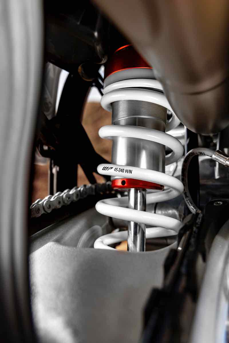 Al telaio è abbinato un pacchetto sospensioni WP XACT completamente regolabile, che promette un feedback eccezionale, un eccellente assorbimento degli impatti e grande stabilità alle alte velocità. Per i MY24 sia la forcella sia il mono WP sono stati aggiornati, così da migliorare l’equilibrio, l’agilità e il comfort in tutte le condizioni di guida, dalle sezioni più ritmiche e veloci a quelle più tortuose e bucate.