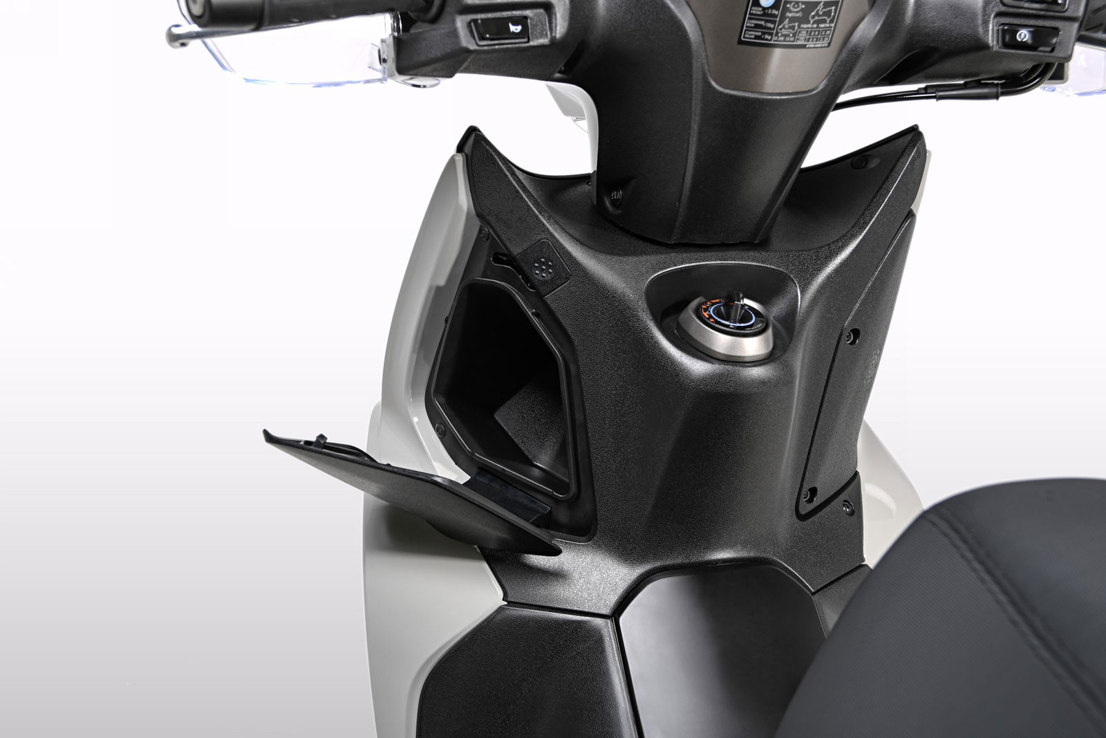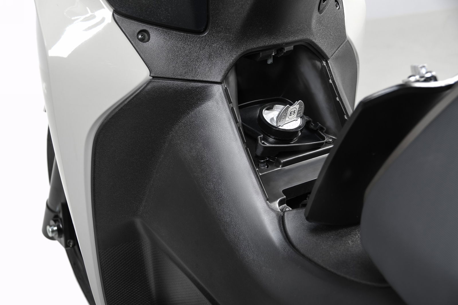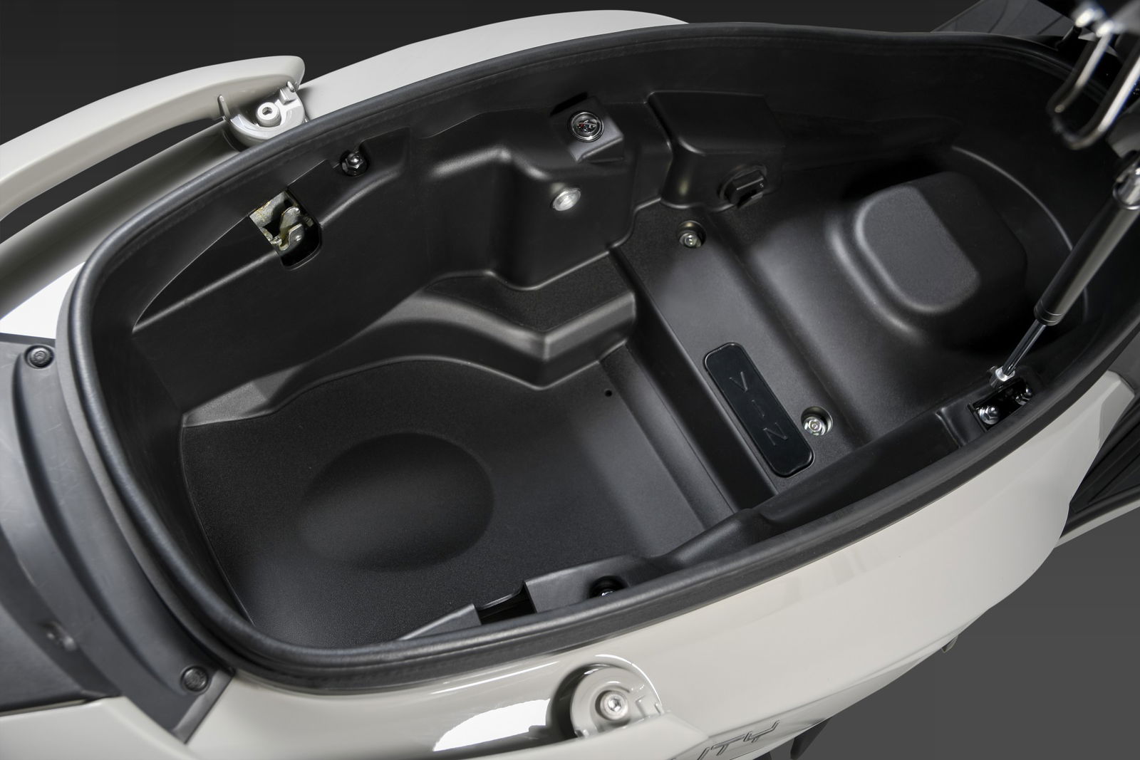 Il sottosella, apribile dal rotore di accensione, è dotato di luce di cortesia a LED e