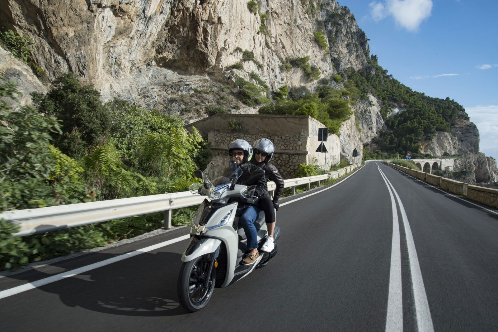 comfort grazie alla pedana, con tunnel, che offre un ampio e comodo spazio per i piedi; il passeggero può contare su pedane estraibili così come
