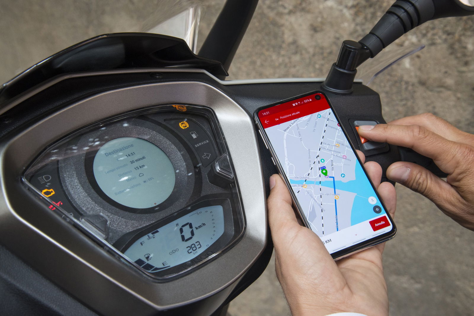 illuminazione “full LED” che, oltre a garantire la massima visibilità, rappresenta una sorta di firma luminosa sia con la luce del giorno, sia al buio della sera. A bordo c’è ovviamente Noodoe: il futuristico