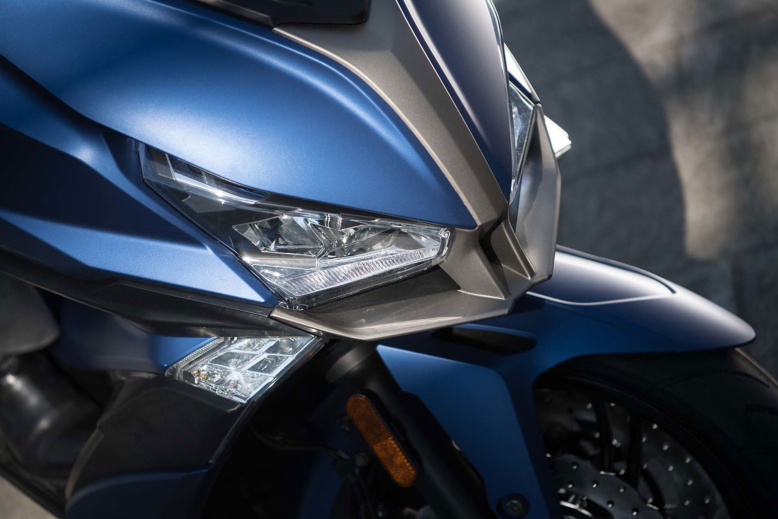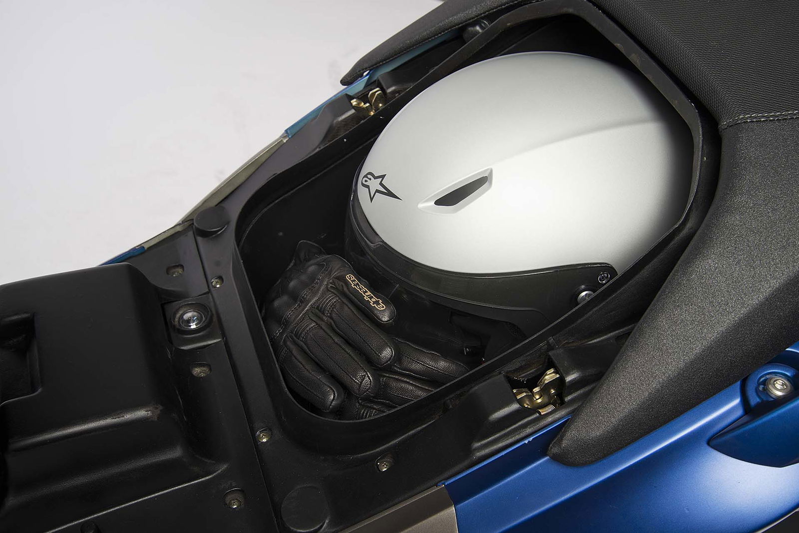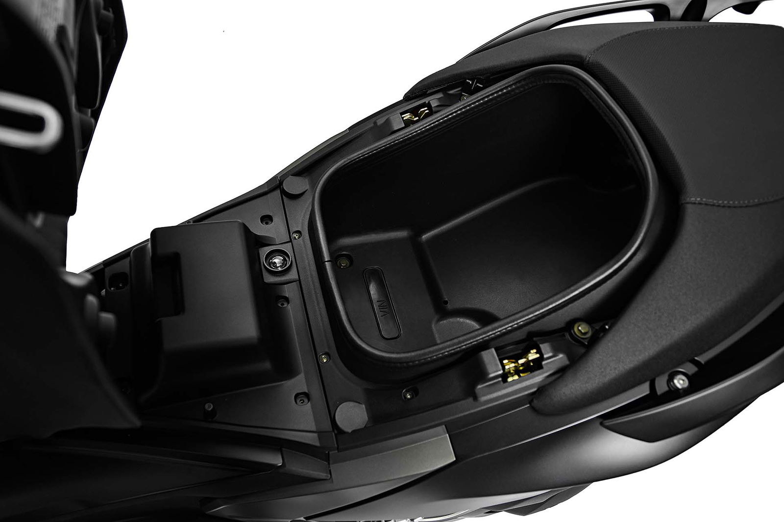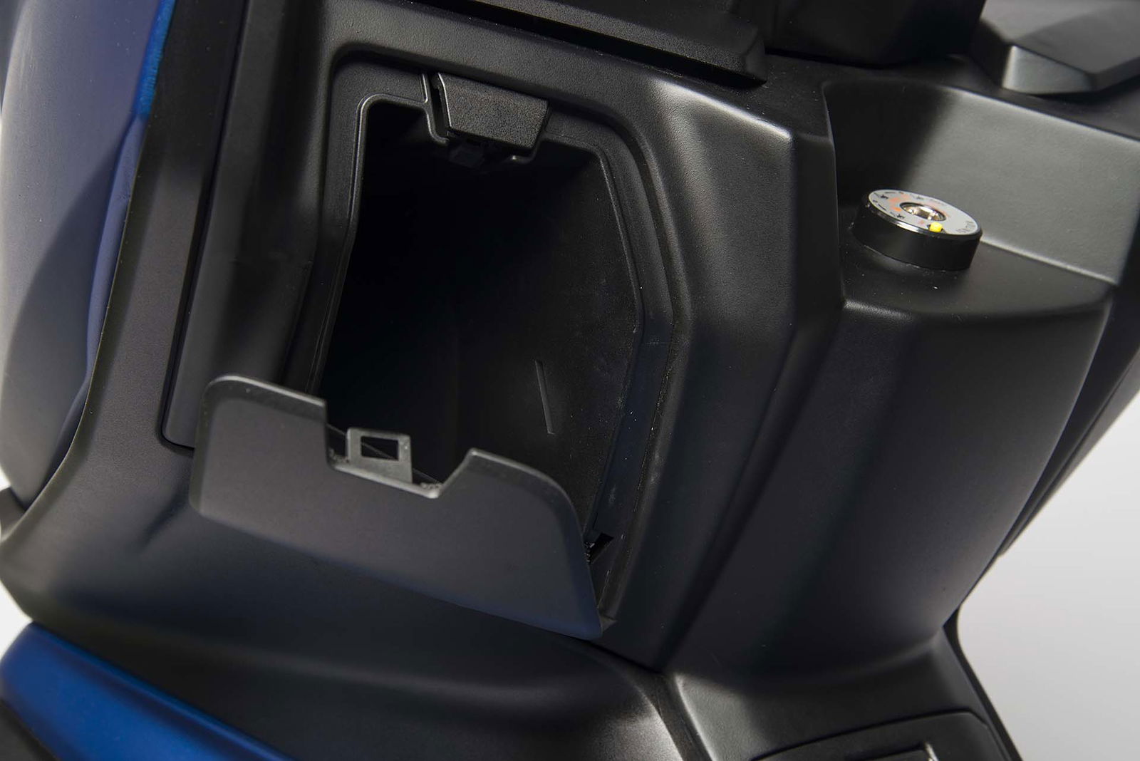 Per il resto, il Kymco Xciting 400 S ha un parabrezza regolabile senza attrezzi su 5 posizioni, un manubrio ora con disegno a V, un ampio sottosella con sistema di apertura elettrico buono per un casco integrale e poco altro (presente la luce di cortesia), due vani nel retroscudo con chiusura di sicurezza (la serratura entra con il bloccasterzo) e presa USB. È disponibile in due sole colorazioni, entrambe opache: blu o nero. DRIVE