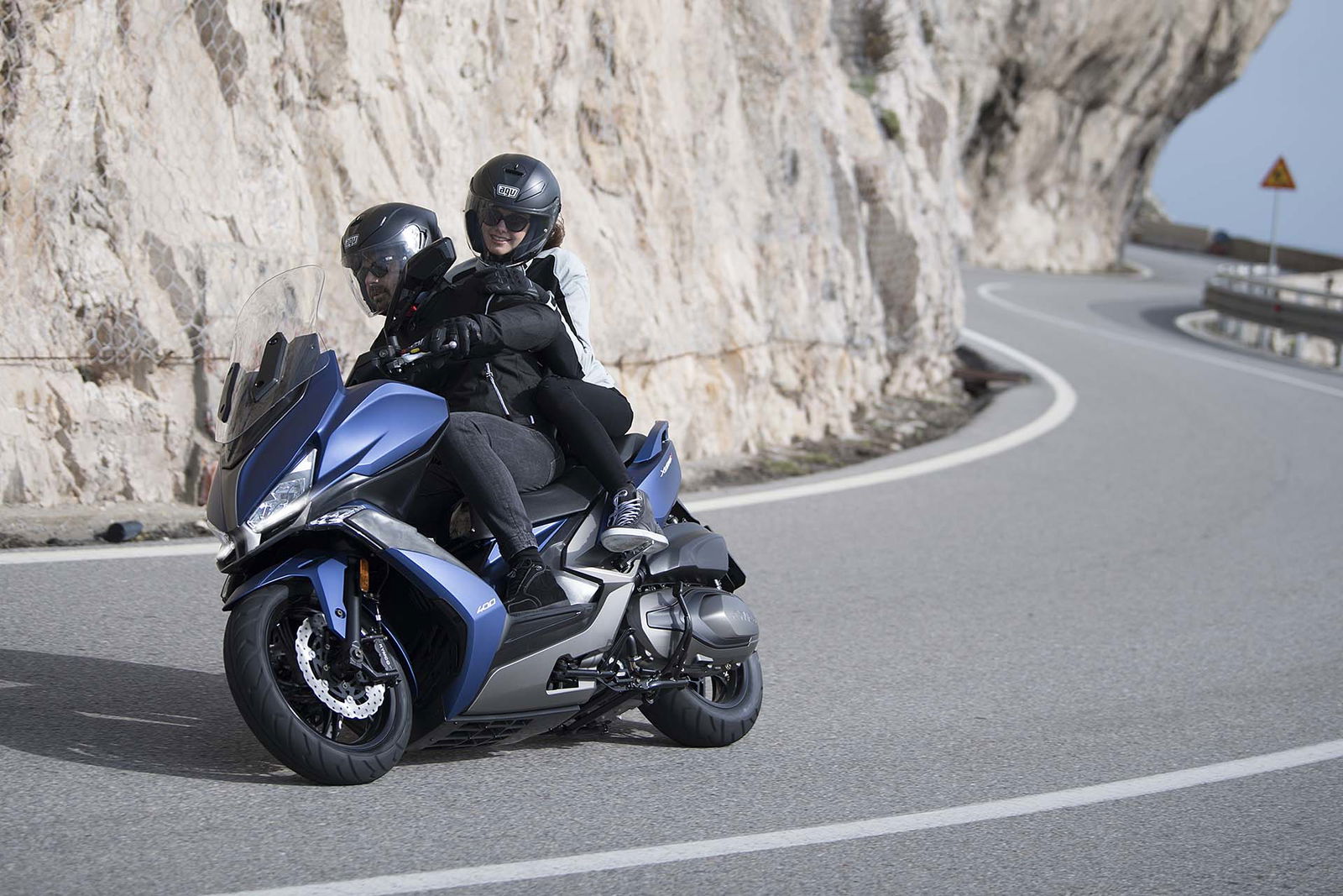 Da un po’ di tempo a questa parte, Kymco ha cambiato rotta. L’anno scorso provai l’AK 550, maxi-scooter dalle eccellenti qualità dinamiche, e questo nuovo Kymco Xciting 400 S non sembra essere da meno, anzi: il livello di finiture è anche superiore. La sfida con i concorrenti diretti, Yamaha in primis, è aperta e soprattutto ora Kymco gioca ad armi pari. Non c’è una sbavatura, un cavo fuori posto una plastica posticcia: l’estetica del nuovo Xciting 400 S è esente da critiche. Bravi!Più spazio, grazieIl Kymco Xciting 400 S accoglie pilota e passeggero con una sella non così morbida ma ben imbottita e molto spaziosa. Il parabrezza si regola con relativa facilità ma non in movimento. Bene anche le leve regolabili e i due vani nel retroscudo, mentre il sottosella paga qualcosa in termini di capacità e dimensioni del vano di carico (si alza solo una parte della sella) rispetto ai rivali, Burgman e X-MAX in primis. Il sistema Noodoe è semplice e piacevole da utilizzare, ma richiede un po’ di pazienza la prima volta che si associa lo smartphone allo scooter.Vita facileMuoversi con il nuovo Kymco Xciting 400 S è facile e divertente. Merito della sua agilità intrinseca (le ruote da 15-14” aiutano), della sella non alta (805 mm) e della risposta del motore estremamente fluida. È proprio il monocilindrico il piatto forte dell’Xciting: potente, mai ruvido ed esente da vibrazioni fastidiose, è anche silenzioso e permette sorpassi fulminei, a qualunque andatura. Parte del merito va al variatore, che attacca immediato ma non eccessivamente brusco.
