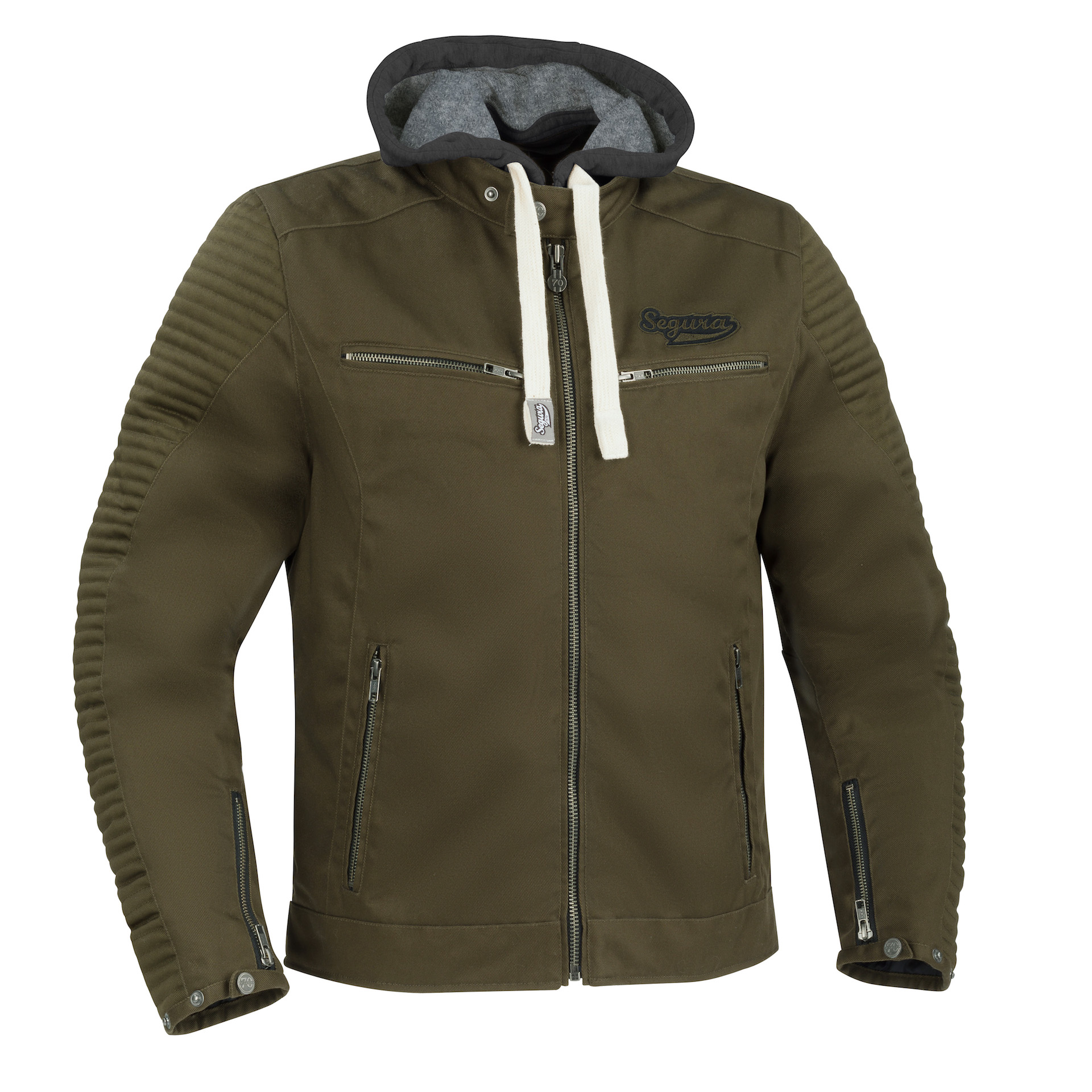 Per confezionare la sua Miguel la francese Segura ha scelto di combinare un look casual e di tendenza a un tessuto tecnico resistente derivato dal cotone. Dotata di protezioni Alpha certificate CE per gomiti e spalle la giacca è altamente traspirante e provvista di membrana impermeabile e fodera termica rimovibile.