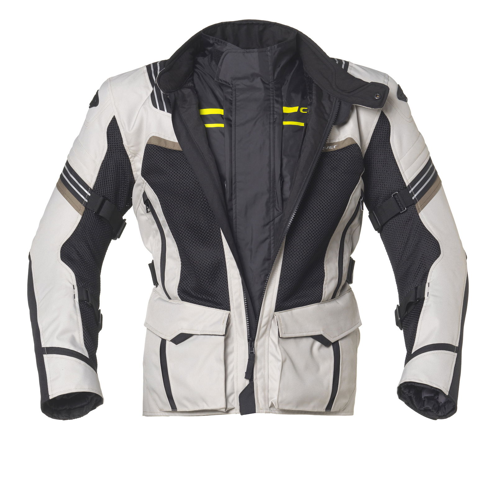 Lo strato interno, ricco di inserti ad alta visibilità, può essere sovrapposto a quello esterno, così da potersi riparare da un improvviso acquazzone e nel caso si volesse aumentare il potere termico di questa giacca. Due le tasche impermeabili a soffietto poste nella parte inferiore della giacca mentre altre due, dotate di zip, sono state ricavate nella parte centrale del torace. La Ventouring 3, disponibile per uomo e per donna, propone di serie su spalle e gomiti protettori interni CE di Livello 2 “Made in Italy” e ventilati. L’indumento è certificato CE Classe “A” ed è predisposto per il paraschiena e l’airbag. 279,99 euro il suo prezzo.