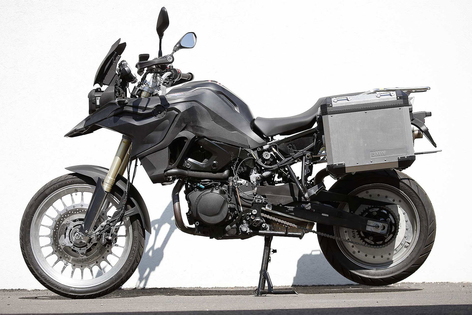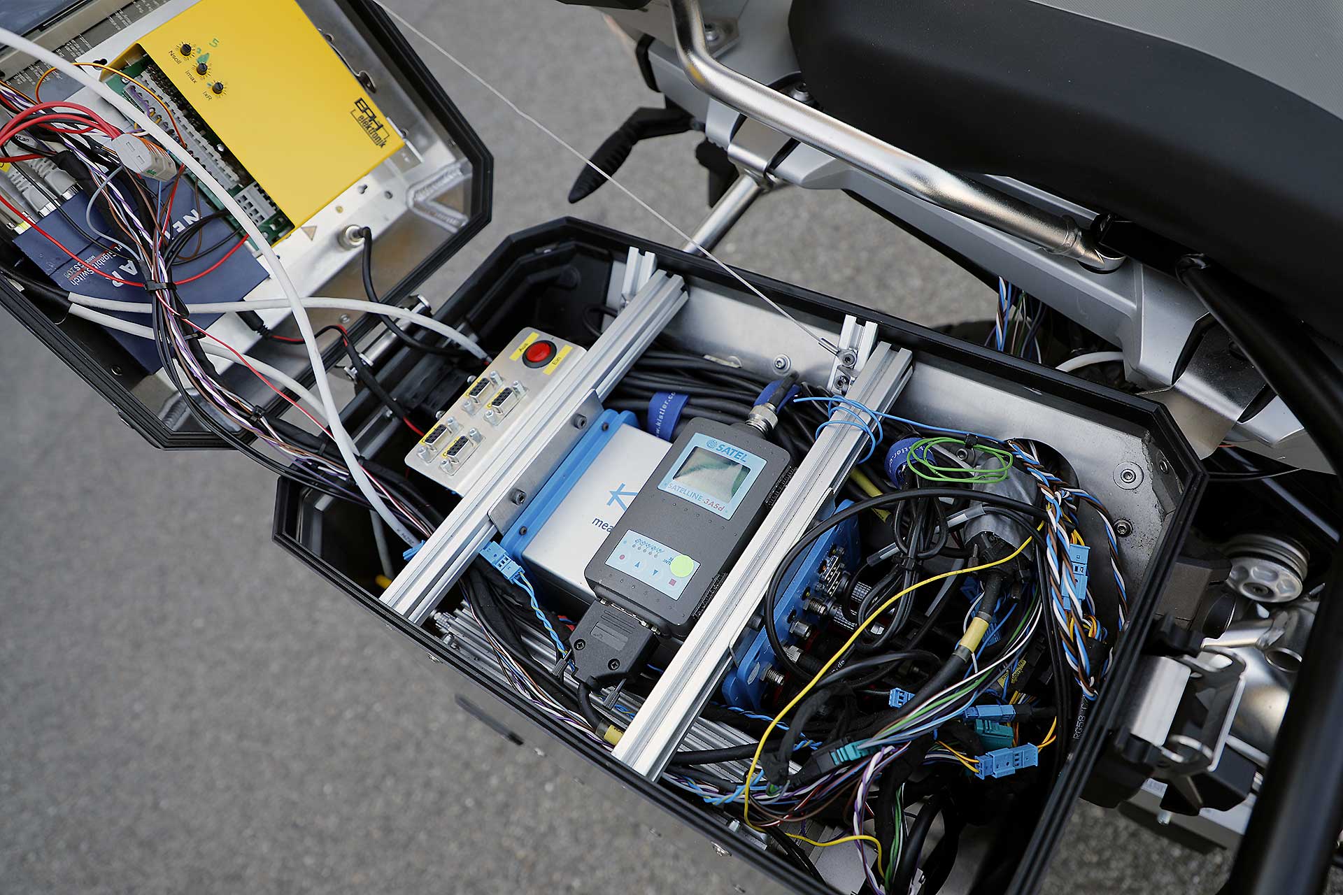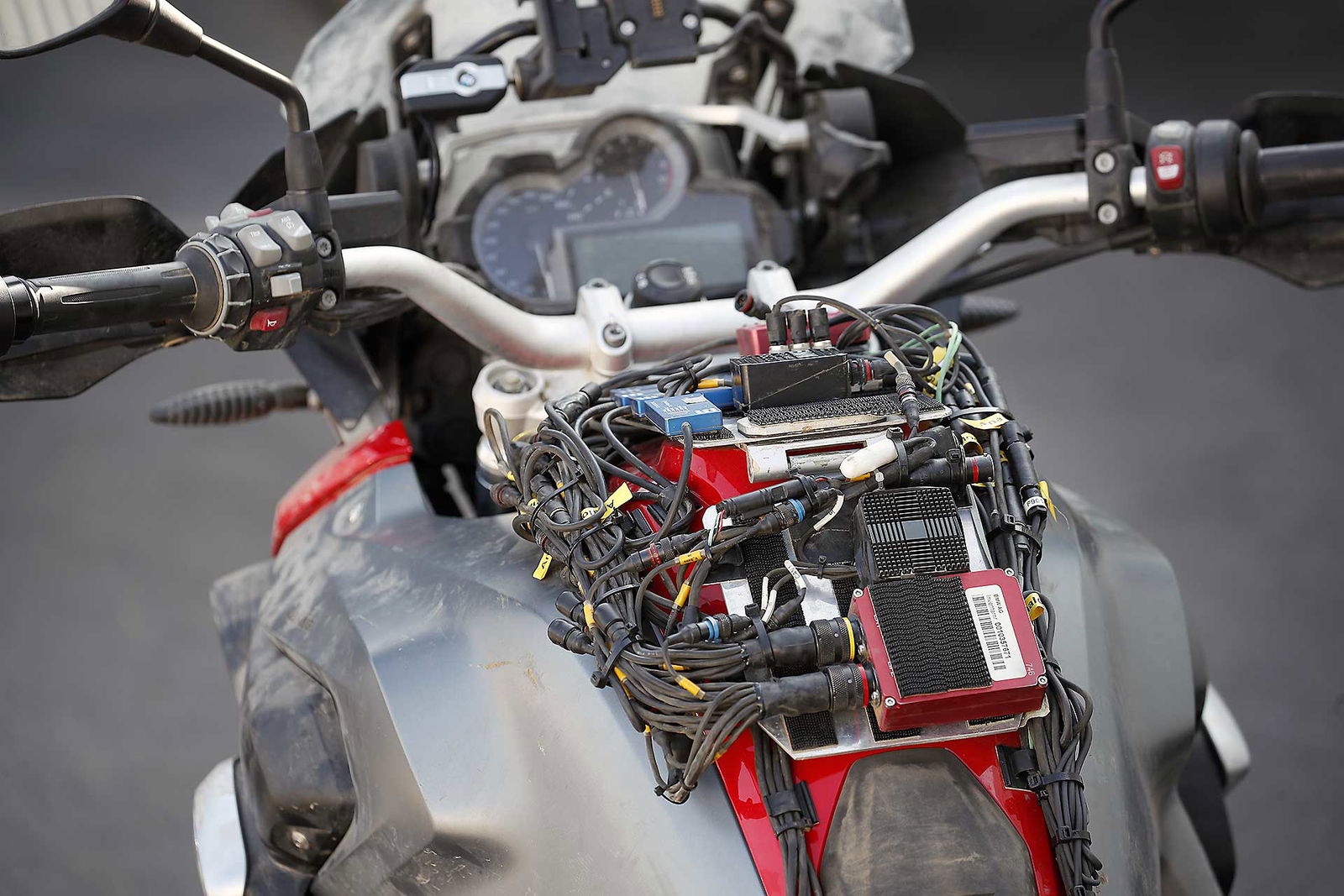 Terminato il programma ludico, si è passati all’officina. Per vedere come sono attrezzate le moto da sottoporre alle prove più severe, che non possono più essere affidate alla sola sensibilità dei collaudatori. Ogni modello è equipaggiato con 107 sensori che rilevano 8 giga di dati ogni giorno, qui ma anche sulle strade di Mongolia, Brasile, Stati Uniti, India e Sudafrica. Nulla è lasciato al caso, per esempio ogni anno sono effettuati almeno 150 test di “missuse”, vale a dire di uso improprio del veicolo. Dai burnout alle impennate, fino a pesanti sovraccarichi, per valutare la capacità di resistenza delle varie parti.
