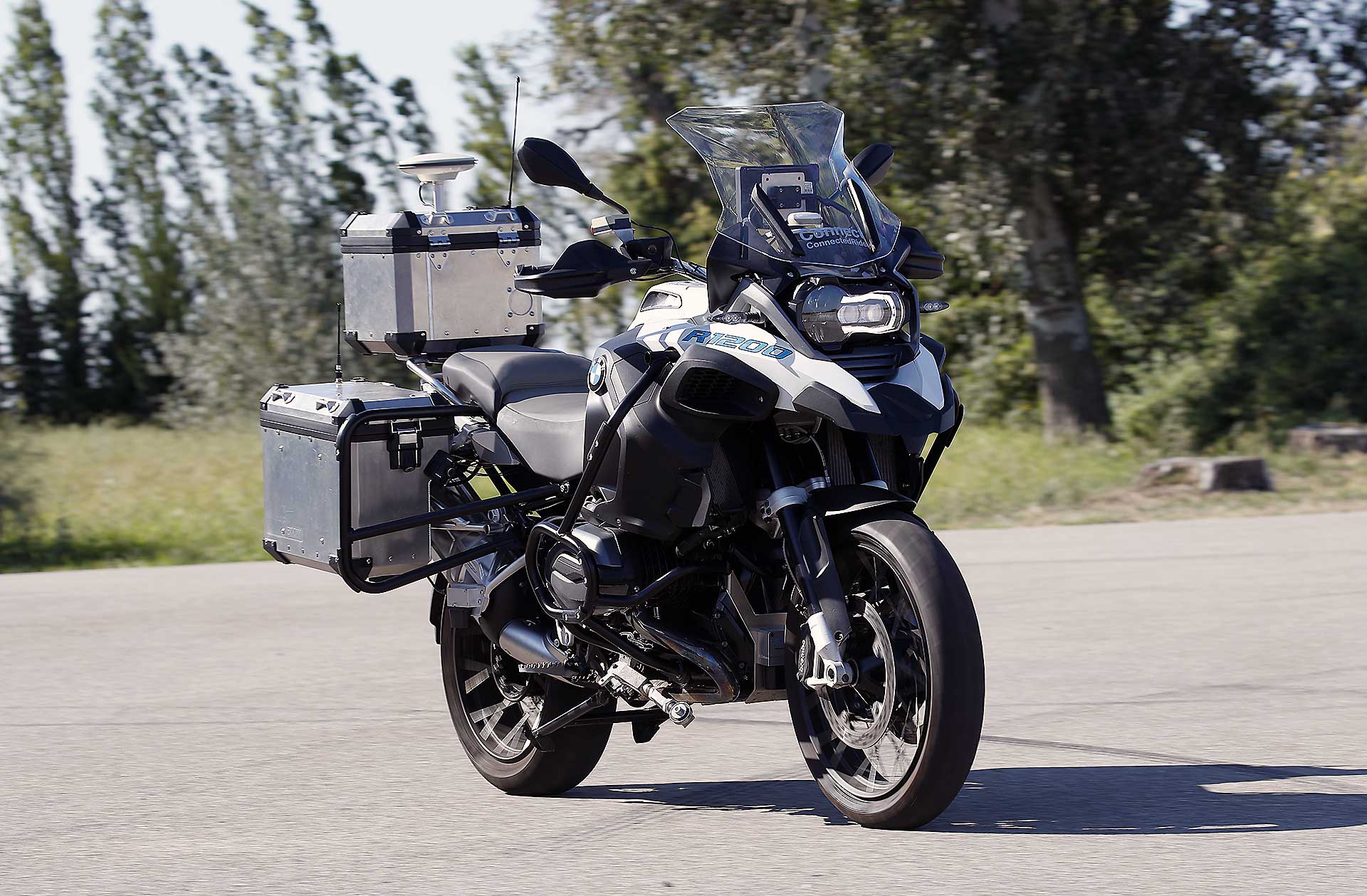 Sulla stessa linea dell’ottimizzazione dei costi procede lo sviluppo dell’impiego delle stampanti 3D, che ormai non hanno più limiti di dimensioni dei pezzi da realizzare e tantomeno dei materiali da impiegare. Le applicazioni sono le più varie: dai prototipi di piccole parti in materiale plastico, alla riproduzione di pezzi di modelli classici in vari metalli, ai componenti in alluminio, alle personalizzazione estetiche (soprattutto per gli interni delle Rolls-Royce) in argento o in oro. Però i tecnici mostrano anche con orgoglio un leggerissimo e particolare telaio sportivo per il motore a quattro cilindri ottenuto in soli cinque giorni di sovrapposizione, micron dopo micron, di polvere di alluminio. Le aree tematiche di questo grande luna park sembrano non finire mai, c’è il reparto specializzato in luci a led, che qui stanno sviluppando insieme alle tecnologie laser per offrire fasci luminosi sempre più uniformi ed efficaci, non solo in rettilineo, ma anche in piega. Naturalmente non si può trascurare l’elettrico e la conferma arriva vedendo un oggetto che a prima vista sembra una K100 degli anni Ottanta, ma pochi istanti dopo entra in monoruota in pista e ricompare qualche secondo più tardi sfrecciando a oltre 200 km/h accompagnata soltanto da un sibilo e dal rumore di rotolamento dei battistrada.Eppur si muove. Senza nessuno in sellaTutto però sembra passare in secondo piano quando gli ingegneri sono pronti per giocare la briscola che hanno preparato. Si parla tanto di guida autonoma e un’auto che si muove da sola ormai non sorprende più di tanto, ma nessuno è ancora pronto per vedere dal vivo una moto in azione senza pilota. Perché c’è la fisica che rema contro, e perché in fondo non avrebbe molto senso: un’auto che si sposta in autonomia può offrire protezione e spazi per riposare o per lavorare durante un viaggio, ma su due ruote è tutta un’altra cosa. Eppure si muove, è lì da vedere. Una forzatura per dimostrare che il primo passo è fatto, vincere l’equilibrio instabile per sviluppare tecnologie future per la sicurezza. BMW non è la sola a lavorare su queste tecnologie (altri esempi arrivano da Honda e Yamaha), l’obiettivo, sia chiaro, non è quello di toglierci il controllo del mezzo che tanto amiamo, è quello di ridurre il rischio di incidenti con la capacità di avvertire in anticipo la presenza di un ostacolo e attivare tutte le procedure per evitarlo, ma anche analizzare tutte le informazioni possibili sulle condizioni della strada in modo da suggerire l’andatura più adeguata, senza escludere l’opportunità di mantenere un ritmo sostenuto, adeguato al momento. La strada da fare è ancora molta, una GS che ripete un percorso impostato sul GPS è solo l’inizio. In ogni caso prima della guida autonoma ci sono altre tecnologie in più avanzato stato di evoluzione sul tema della sicurezza in moto. Sono quelle del consorzio CMC al quale BMW ha aderito con altri costruttori mondiali, che lavora per una maggiore integrazione della moto nel mondo della mobilità.Integrare la moto in un mondo di autoBisogna infatti ricordare che nei protocolli dei sistemi di frenata di emergenza per evitare collisioni e investimenti di pedoni, non è garantito il riconoscimento dei veicoli a due ruote. Allo stato attuale, sono già pronte le soluzioni che segnalano all’auto l’arrivo di una moto a un incrocio, oppure la sua presenza davanti a un veicolo pesante che impedisce di vederlo, e la loro applicazione sarà disponibile già con il passaggio dal 4G al 5G per la trasmissione dei dati. Al termine di una giornata a Miramas quel che resta è la sensazione di avere sognato tutto. Per avere la certezza che non sia solo il frutto dell’immaginazione non resta che attendere l’arrivo nelle concessionarie di uno di quei progetti.