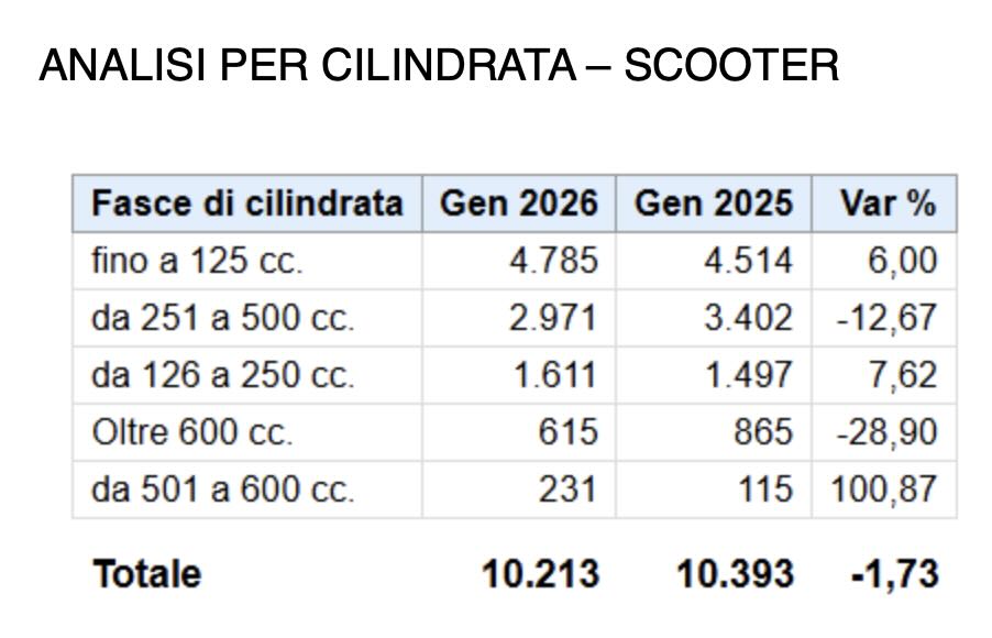 Il segno “più” con cui si apre l’anno assume tuttavia un valore simbolico, soprattutto considerando il contesto di partenza. Il 2026 prende infatti il testimone da un 2025 complesso, segnato dalla forte avanzata degli scooter, dal rallentamento del comparto moto e dagli effetti distorsivi legati all’entrata in vigore dello standard Euro 5+, che avevano influenzato dinamiche di acquisto e immatricolazioni.