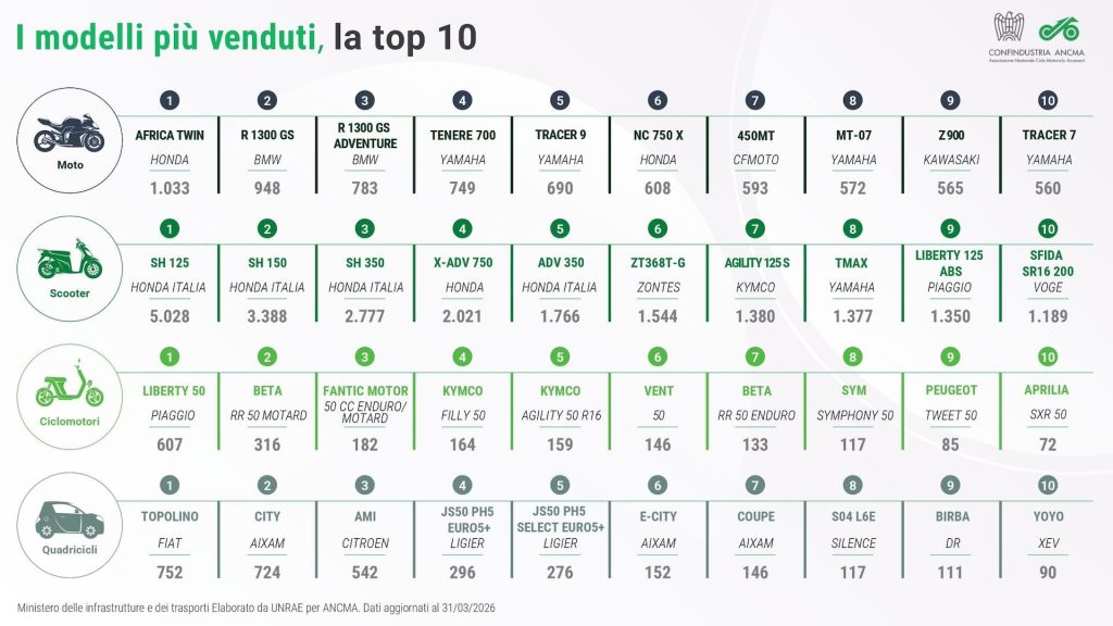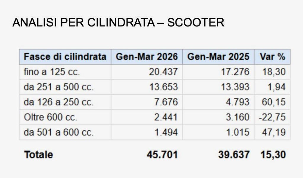 Il mercato delle due ruote a motore chiude il primo trimestre del 2026 con un bilancio positivo, trainato in particolare dagli scooter, contribuendo a consolidare un contesto complessivamente favorevole per il settore.