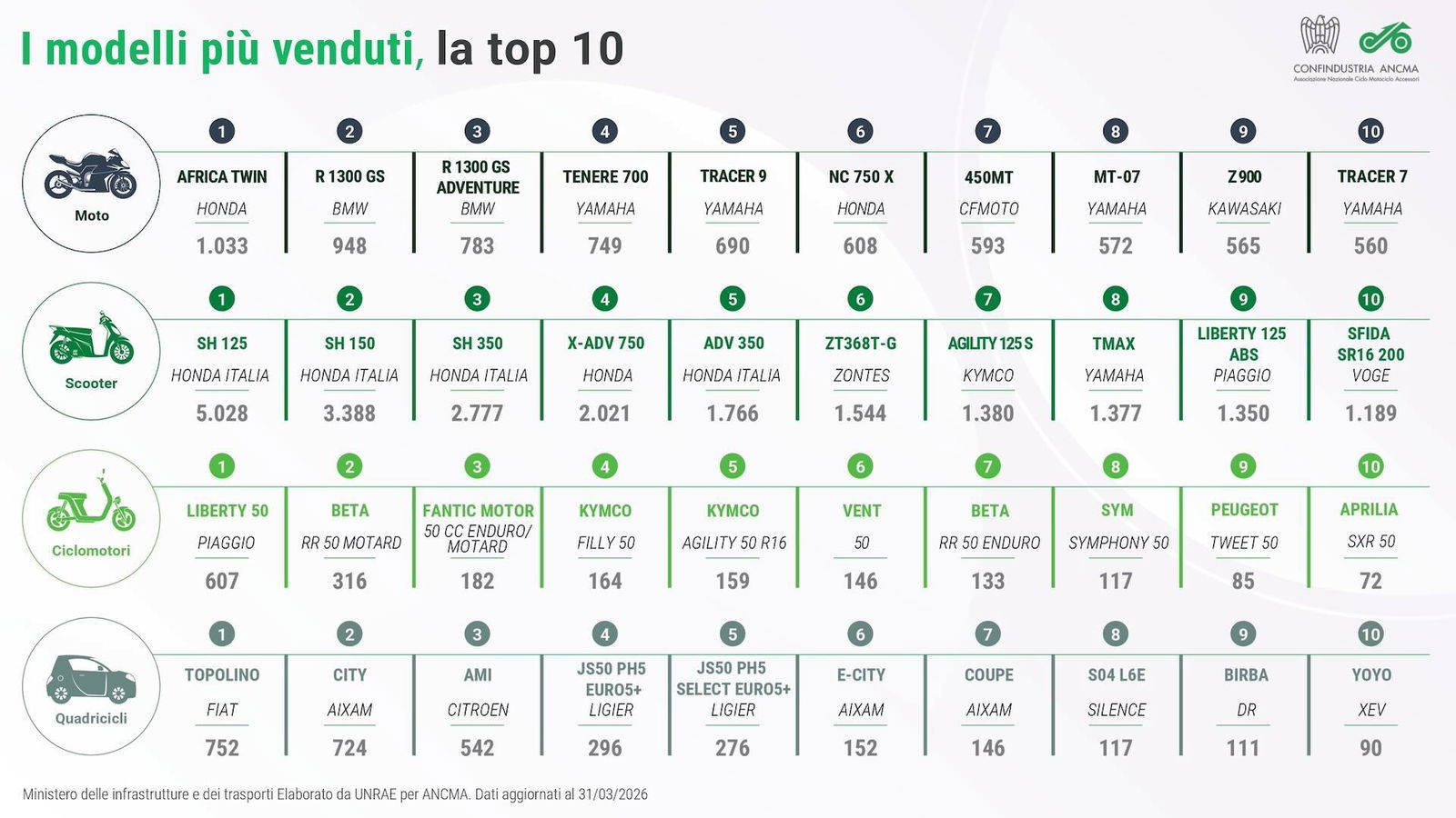 Il mercato delle due ruote a motore chiude il primo trimestre del 2026 con un bilancio positivo, trainato in particolare dagli scooter, contribuendo a consolidare un contesto complessivamente favorevole per il settore.