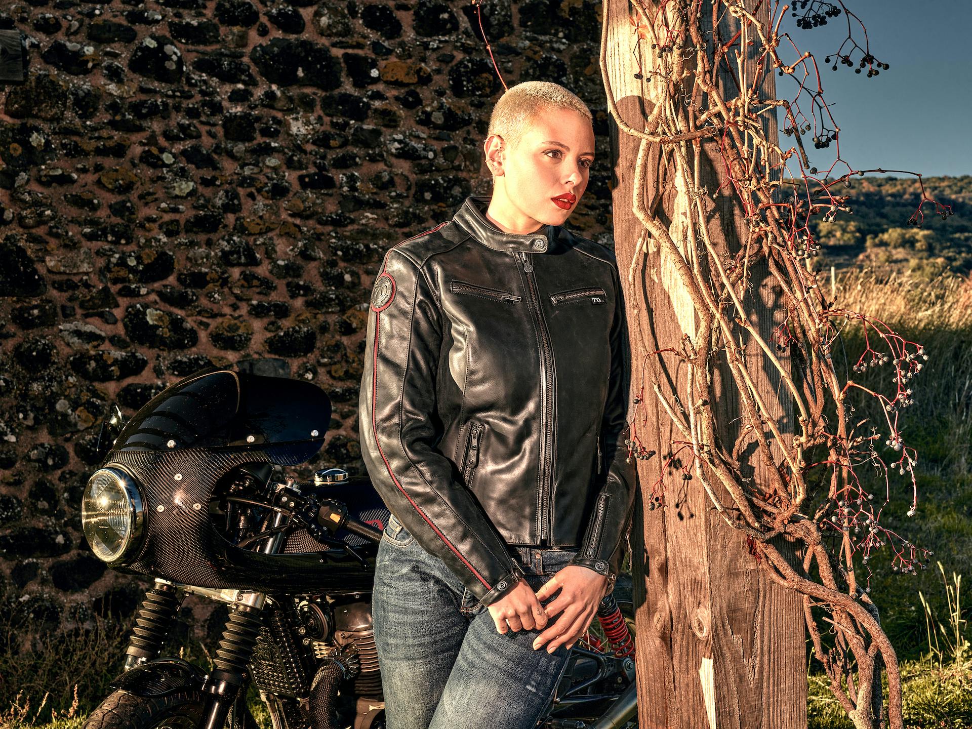 Non mancano: protezioni regolabili sui gomiti e protezioni per le spalle CE Omega, tasca dorsale CE, patta di chiusura e zip sul polsino, collo in neoprene, quattro tasche esterne e tasca sull’avambraccio. Due i colori tra cui scegliere, nero e marrone, con taglie che vanno dalla T0 alla T6.