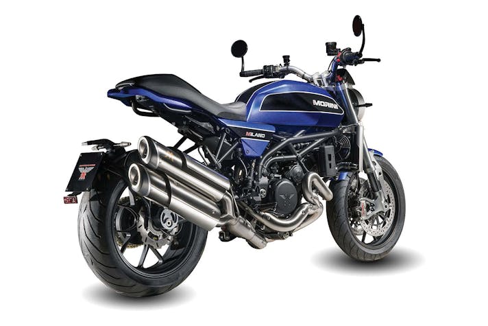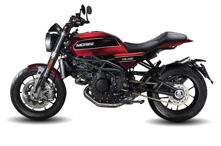 La ciclistica è pregiata: la Moto Morini Milano ha una forcella a steli rovesciati da 46 mm regolabile in ogni parametro e un monoammortizzatore regolabile nel precarico, estensione e interasse. Optional il trattamento DLC (Diamond Like Carbon) per gli steli della forcella. L’impianto frenante (con ABS a due canali disinseribile) utilizza due dischi anteriori di 320 mm di diametro con pinze radiali a 4 pistoncini firmate Brembo. Sarà disponibile in due colorazioni (rosso e blu) a partire da aprile 2019, a 15.000 euro.