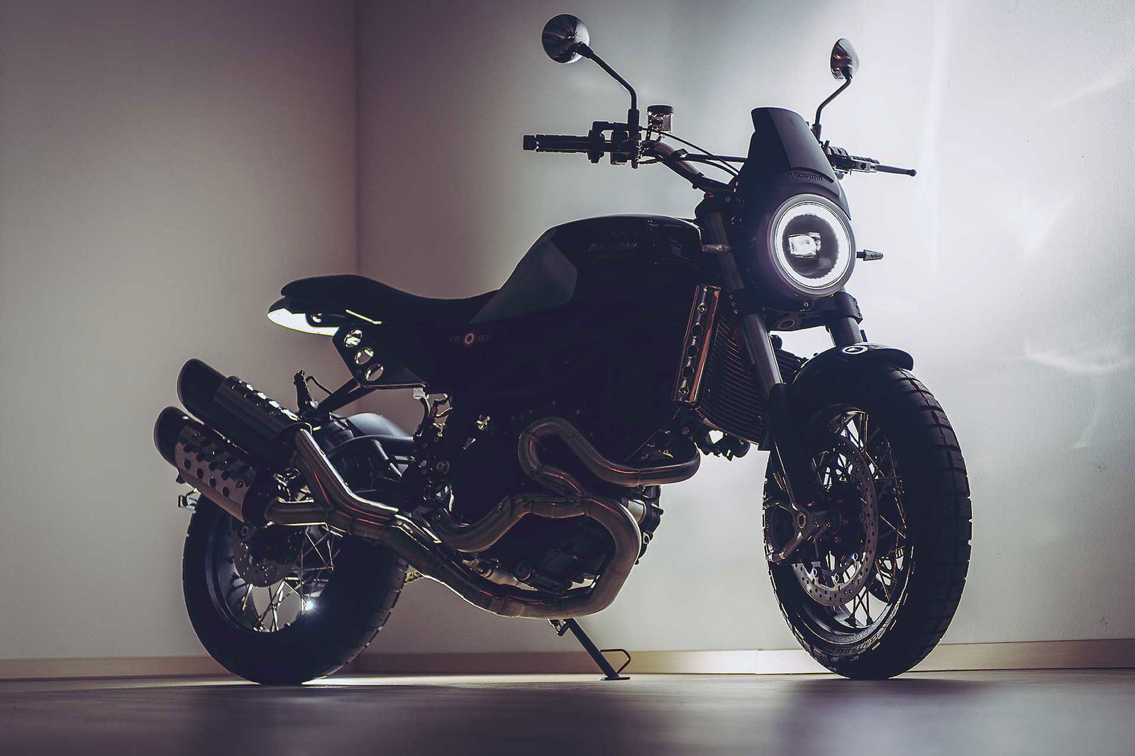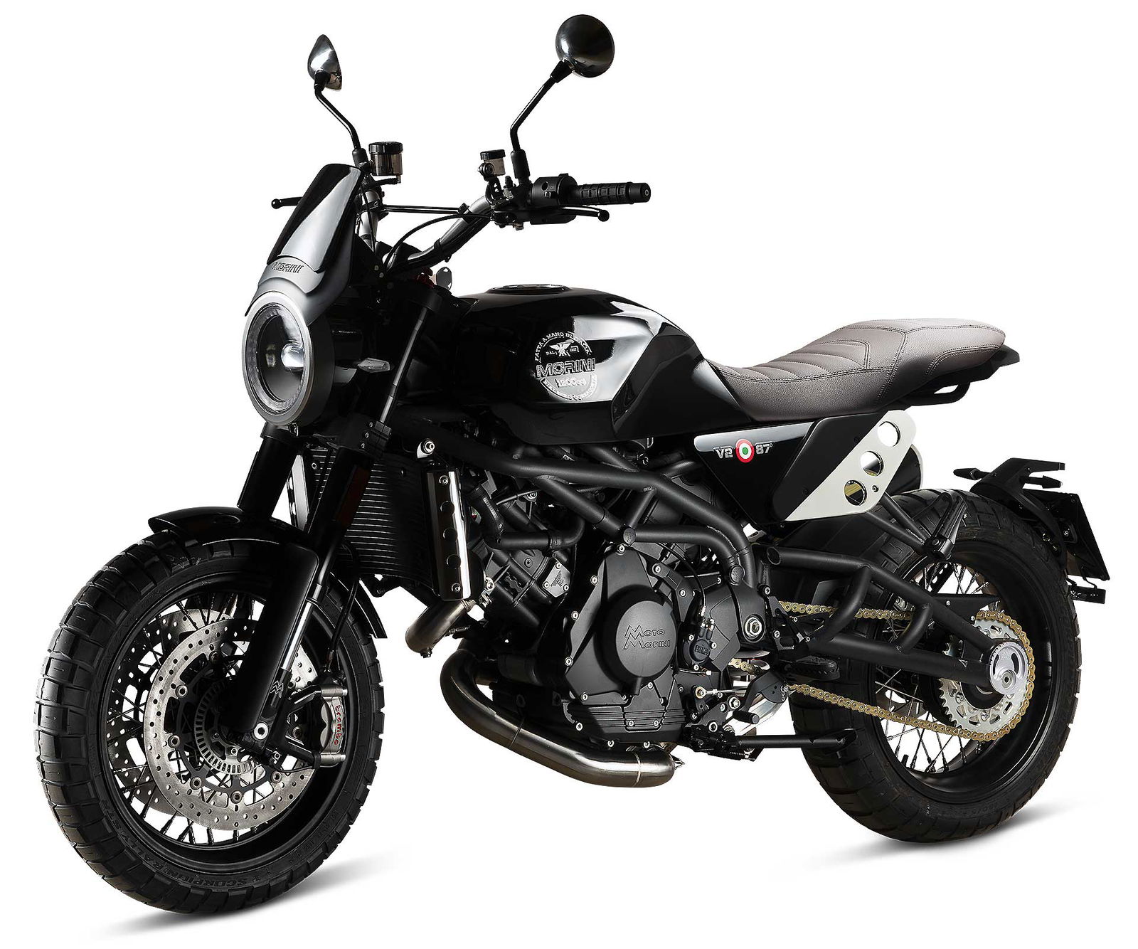 Sulla Super Scrambler i dettagli sono fondamentali. Realizzata interamente in Italia, ogni suo aspetto è curato in modo artigianale per farne la compagna di uno stile di vita fuori dagli schemi. Particolare attenzione è stata dedicata ad aspetti come comfort e stabilità. L’impostazione è quella tipica da off-road, ma coniugata con un impiego più votato all’asfalto grazie alle sospensioni con quote stradali e agli pneumatici Pirelli Scorpion Rally STR.Eclettica, confortevole e totalmente analogica, pura ed essenziale nel pieno rispetto della filosofia Moto Morini. Nella sua essenzialità, esalta l’abilità del pilota sulla potenza della macchina. E non è un caso che l’ispirazione grafica prenda spunto dai caccia della Seconda Guerra Mondiale.