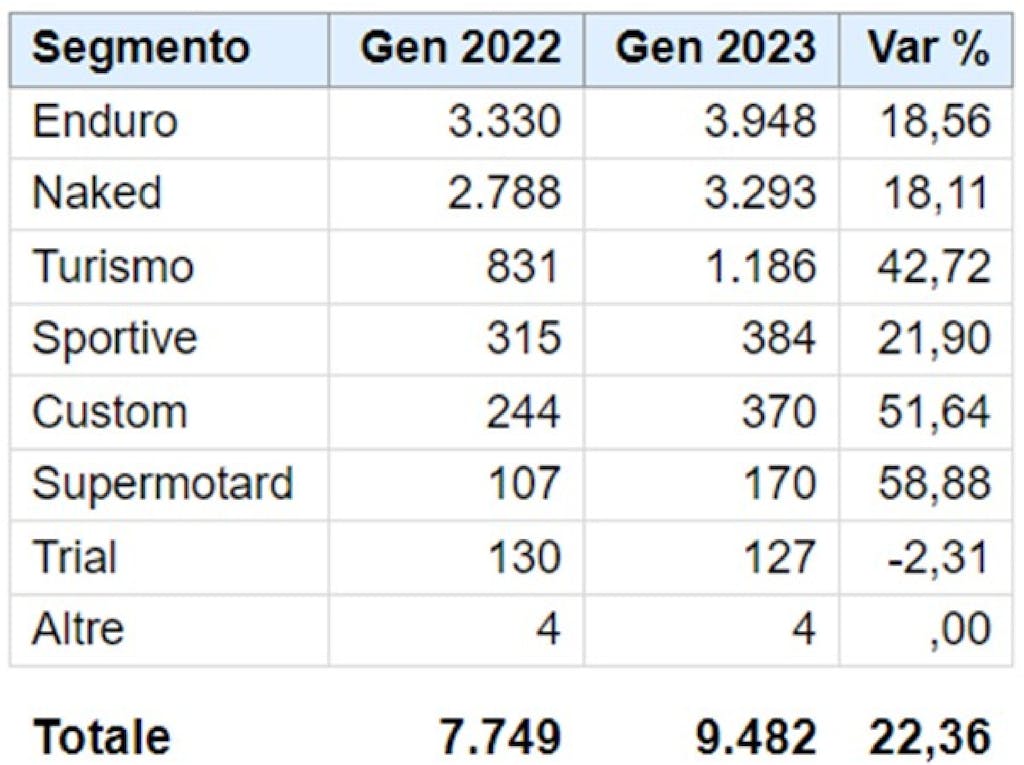 Il 2023 delle due ruote a motore apre sotto i migliori auspici. I dati delle immatricolazioni di moto, scooter e ciclomotori di gennaio, diffusi in serata da Confindustria ANCMA (Associazione Nazionale Ciclo Motociclo Accessori), descrivono infatti un solido +37,7% sullo stesso mese dell’anno scorso. Il presidente dei costruttori e distributori italiani, Paolo Magri, ha sottolineato come “l’andamento del mercato sia in continuità con i numeri registrati negli ultimi due anni, che vedono il nostro Paese leader in Europa per numero di immatricolazioni e anche nella produzione. L’Italia si dimostra nuovamente epicentro della passione per le due ruote e i motocicli rilanciano anche il proprio ruolo decisivo nella mobilità individuale e urbana, dimostrata anche dalla volontà degli utenti di rinnovare il parco circolante: elementi che evidenziano ancora una volta il valore e la rilevanza del nostro comparto”.