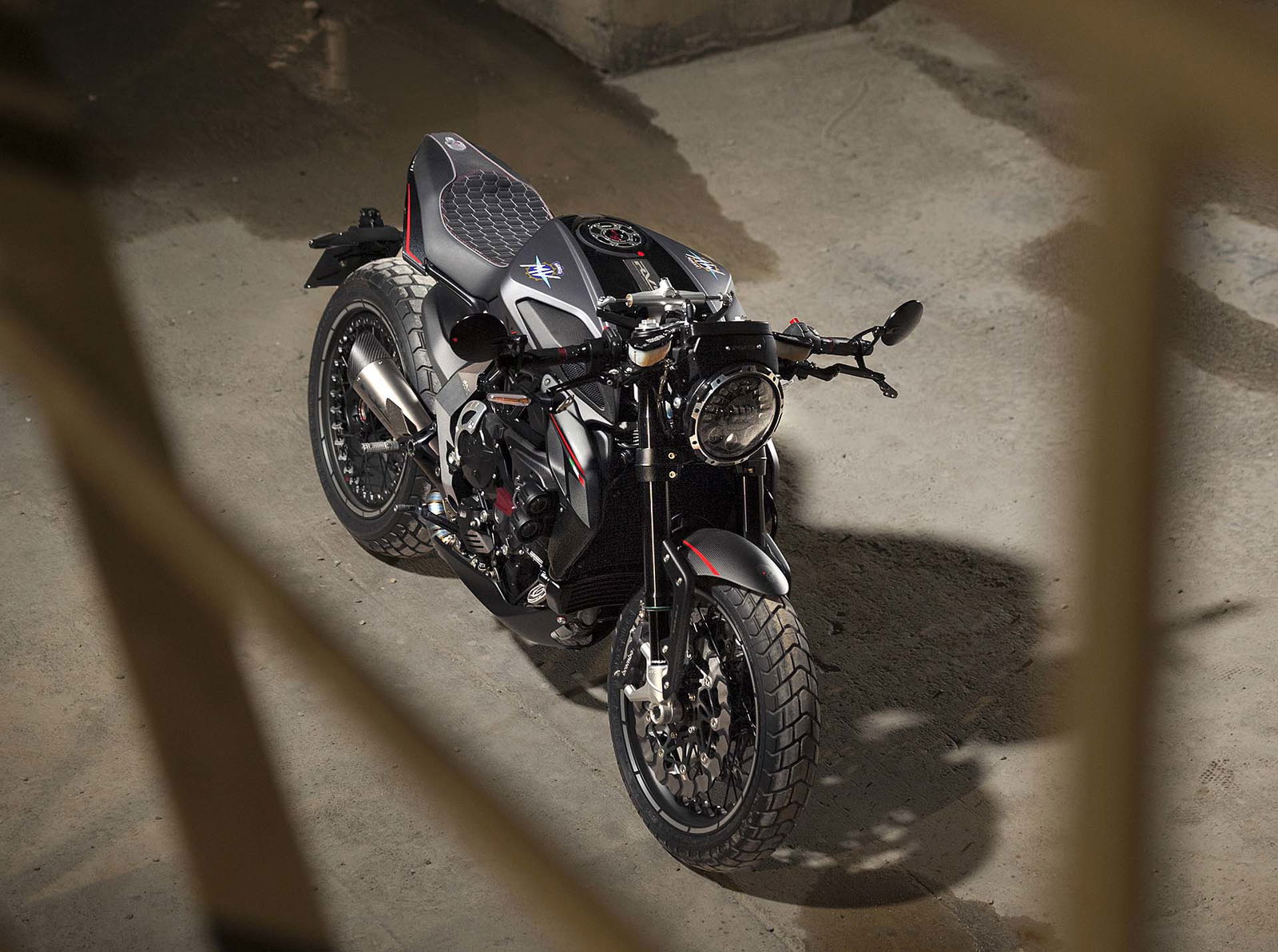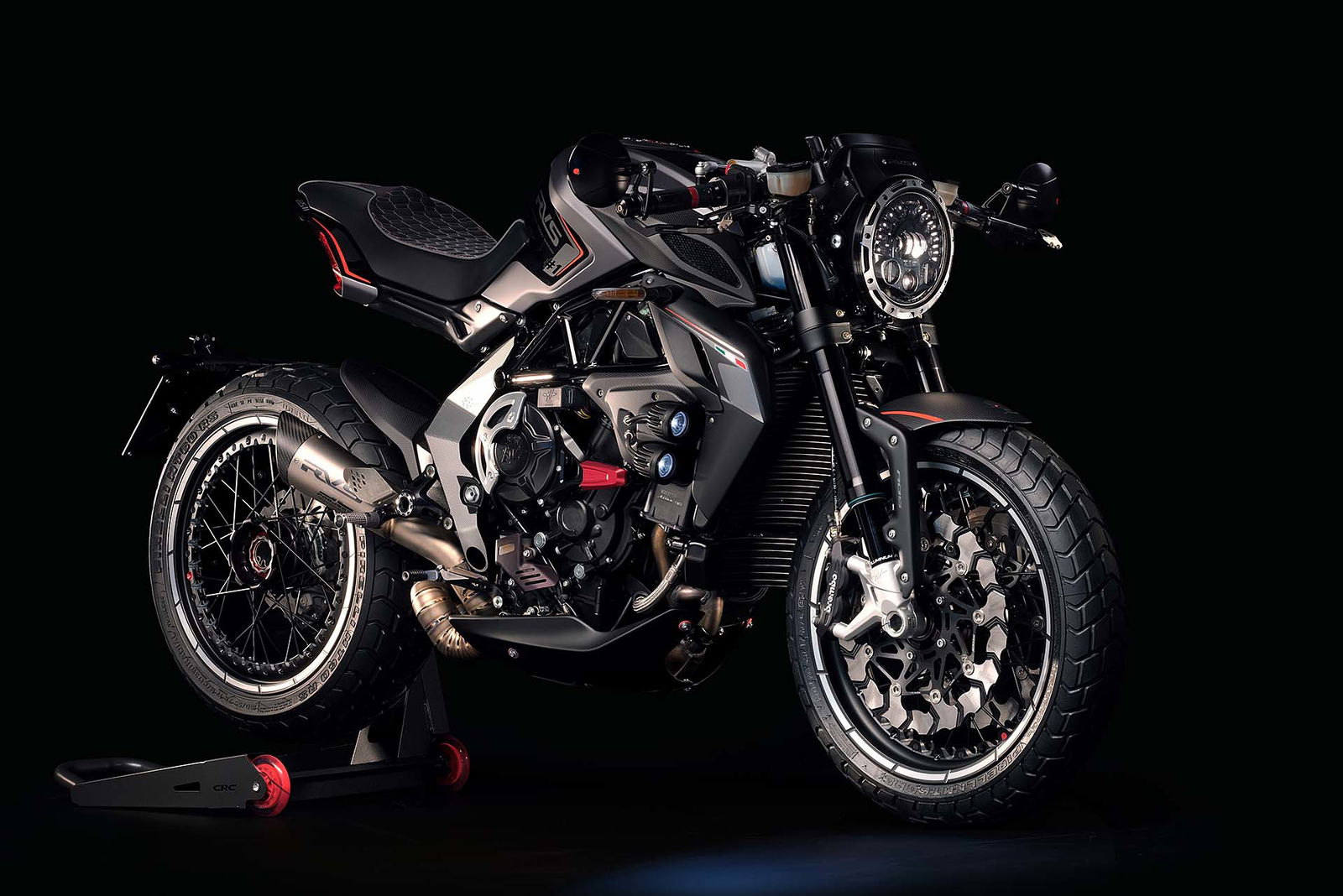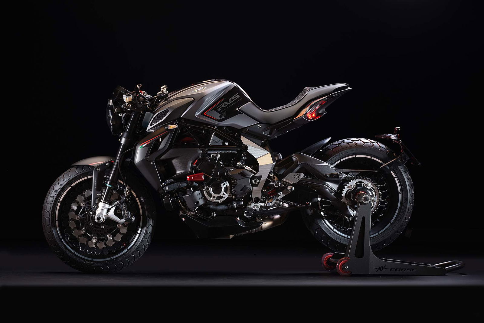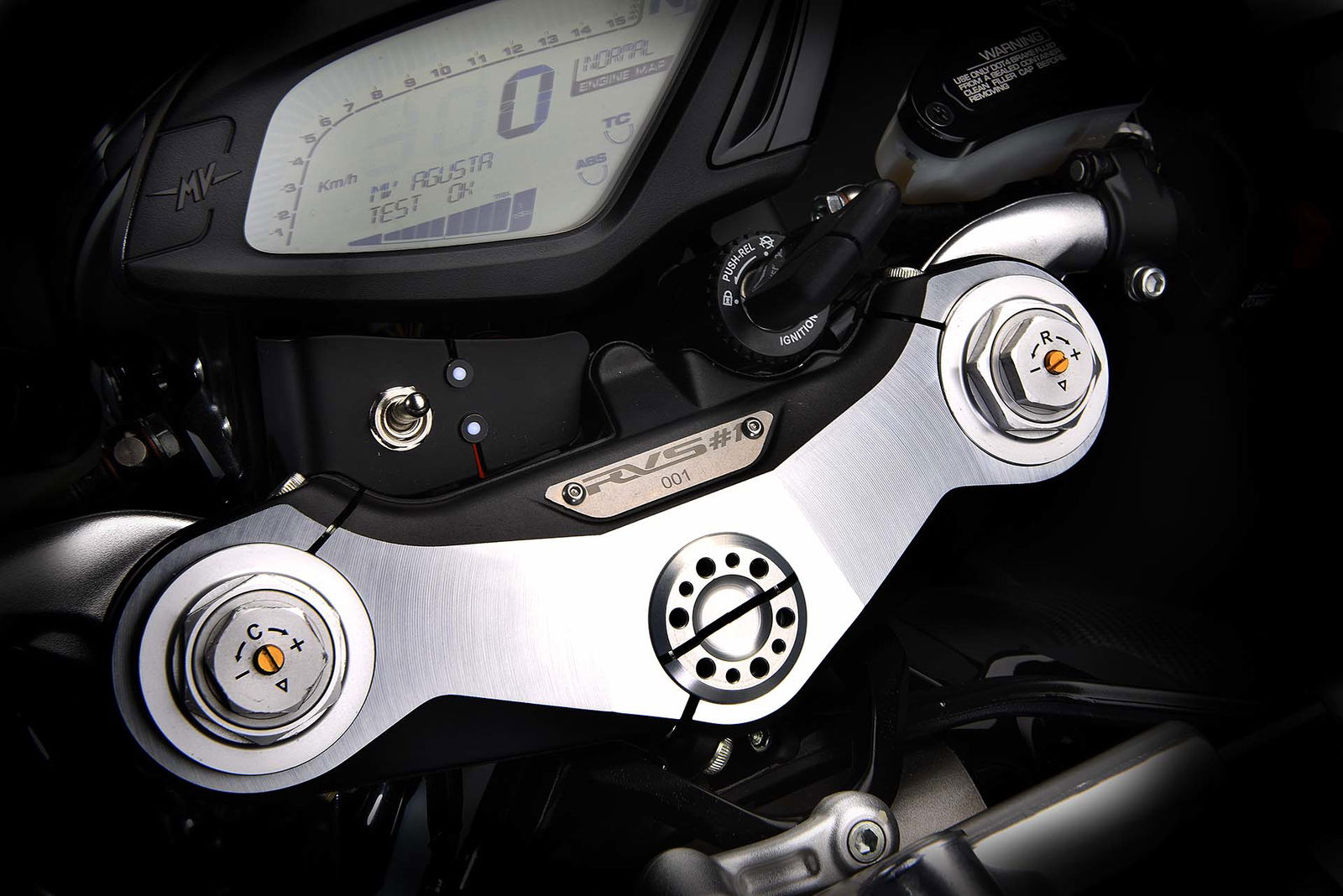 NUOVI ORIZZONTIRidurre la produzione e aumentare il pregio: pare sia questa la strada scelta da Giovanni Castiglioni per condurre MV Agusta verso la salvezza dopo il recente periodo travagliato. In questi ultimi anni la Casa di Varese ha navigato in acque piuttosto torbide, ma questa potrebbe essere la ricetta azzeccata per uscirne. Il tempo giudicherà la bontà o meno dell’idea, (peraltro già sfruttata da MV in passato, chi non ricorda le famose serie speciali lanciate da Claudio Castiglioni?) nel frattempo è nato il primo di una lunga (si spera) serie di modelli: si chiama MV Agusta RVS #1, dove RVS sta per Reparto Veicoli Speciali. Si tratta di una vera e propria costola dell’azienda che ha l’obiettivo di sfornare moto estremamente esclusive, realizzate in gran parte a mano e con materiali pregiati. La MV Agusta RVS #1 sfrutta la base meccanica della Dragster RR, dalla quale però si differenzia non poco.I DETTAGLI CONTANOLunga e colorita la lista di parti speciali. La più evidente è il faro anteriore, una corona di Led adattivi che, grazie al collegamento con la piattaforma inerziale, illumina la strada seguendo l’inclinazione della moto. Ci sono poi una piastra in titanio sulla testa di sterzo che riporta il numero seriale (stampato anche sulle piastre in alluminio del telaio), due ulteriori faretti a Led appesi a destra del motore, gomme semi-tassellate Pirelli MT 60 RS, sella speciale, serbatoio lavorato e un voluminoso elenco di parti meccaniche in ergal o titanio. Materiali che hanno permesso (assieme al nuovo scarico SC-Project e al kit centralina racing consegnato assieme alla moto) di risparmiare 8 kg. Così, il peso totale della MV Agusta RVS #1 si ferma a 160 kg.Non è tutto: anche a livello di prestazioni si voleva offrire qualcosa di speciale. Per questo, i tecnici hanno messo mano in maniera abbastanza profonda al 3 cilindri da 798 cc della Dragster. Tendicatena, motorino di avviamento, alberi a camme, guide valvole, tutti elementi nuovi e realizzati con materiali più leggeri. Il risultato è che, nella versione racing non omologata, la #1 eroga 150 cv a 12.800 giri (140  cv a 12.500 giri nella versione Euro4). È nuovo anche il software della centralina, mentre a livello di ciclistica si segnalano tubi freno e frizione specifici, dischi anteriori Braking e cerchi a raggi Kineo lavorati a mano. E se ancora non basta, il reparto design ha pensato a un logo parecchio caratteristico: un teschio con tanto di iride rosso fuoco che appare un po’ ovunque sulla moto. Prima di scomodare il direttore di banca, però, aspettate un attimo: la MV Agusta RVS #1 sarà venduta in serie limitata a un prezzo ancora da definire. https://www.youtube.com/watch?v=ESNcPJubrg4
